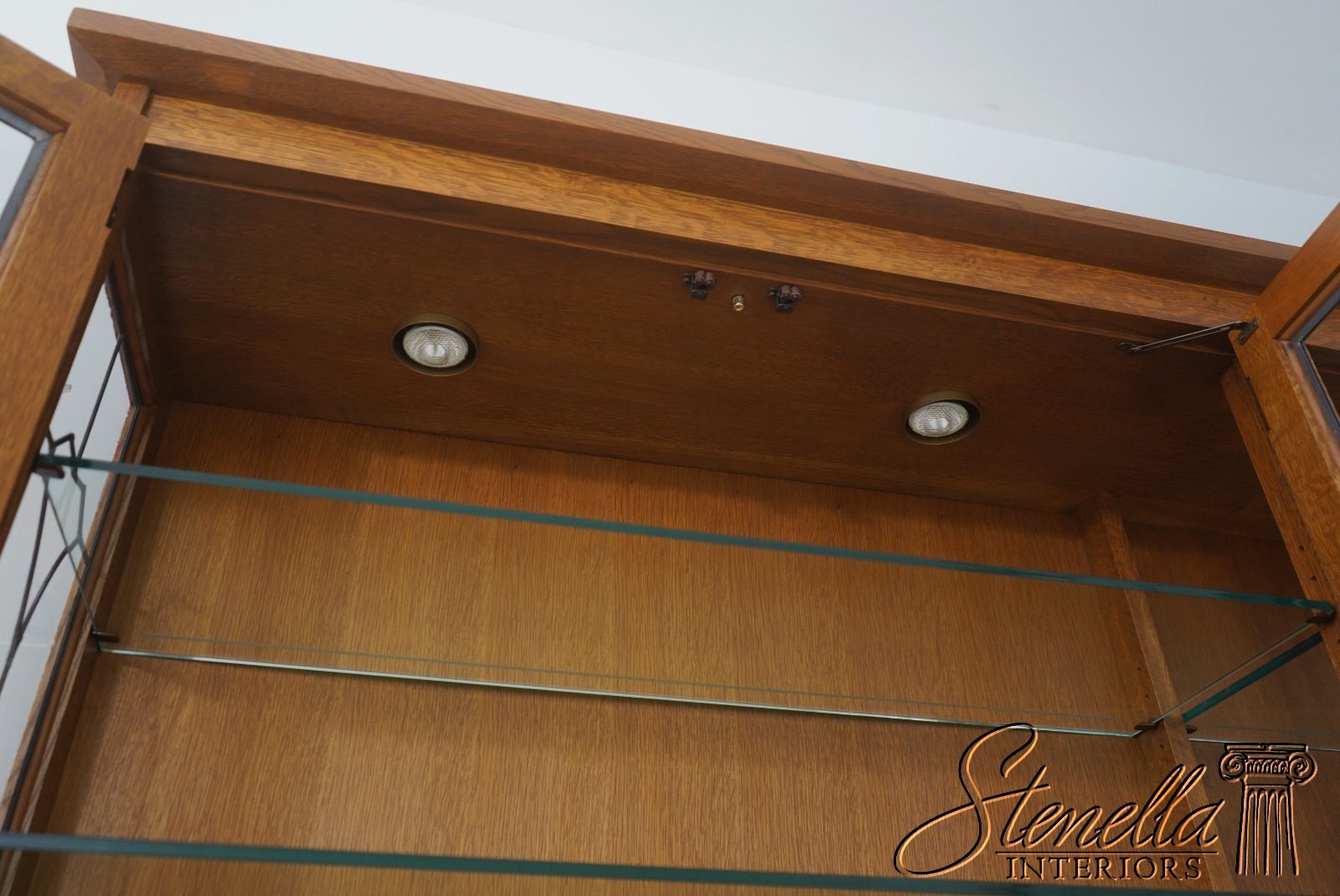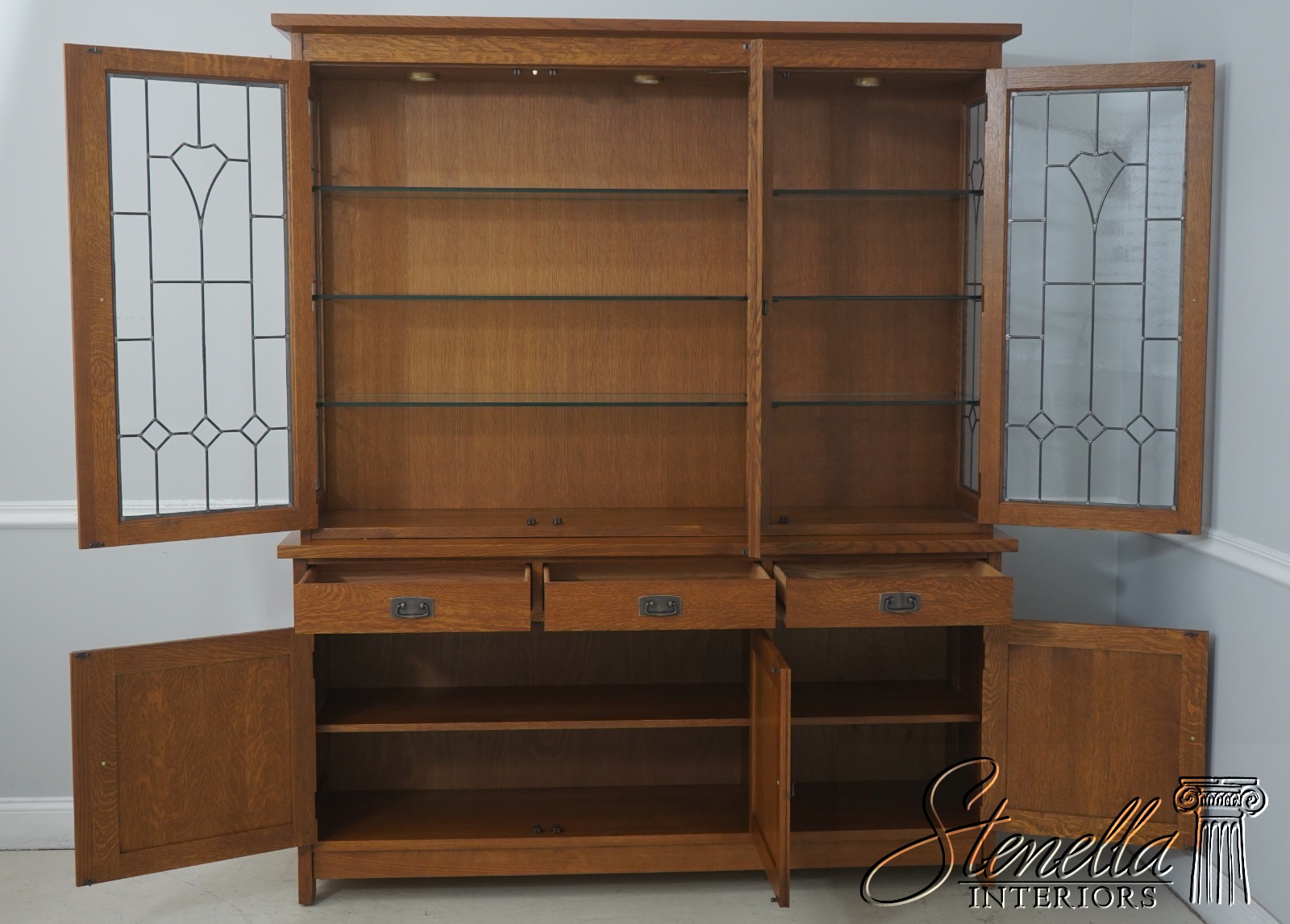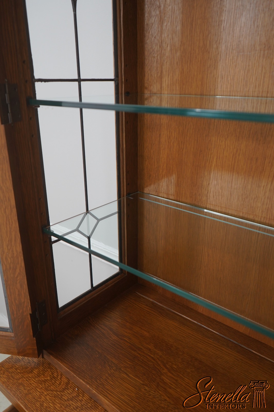 Details: Finish no.35 Crackle Glass Panels Glass Adjustable Shelves Dovetailed Drawer Construction High Quality Construction Lighted Interior 2 Piece Construction Arts & Crafts Style Offered @ Fraction Original Retail Cost