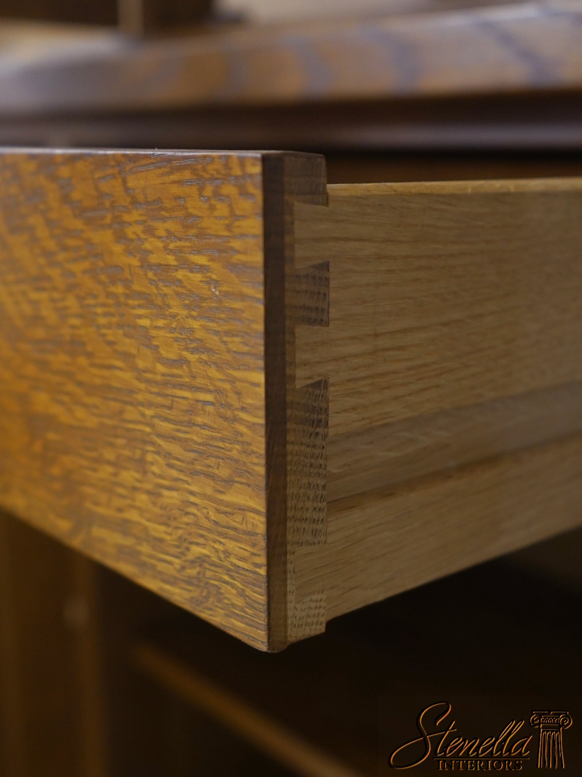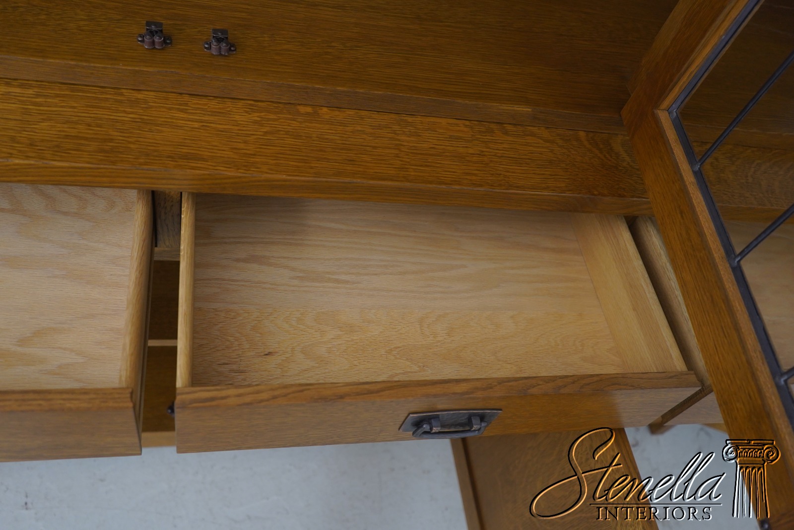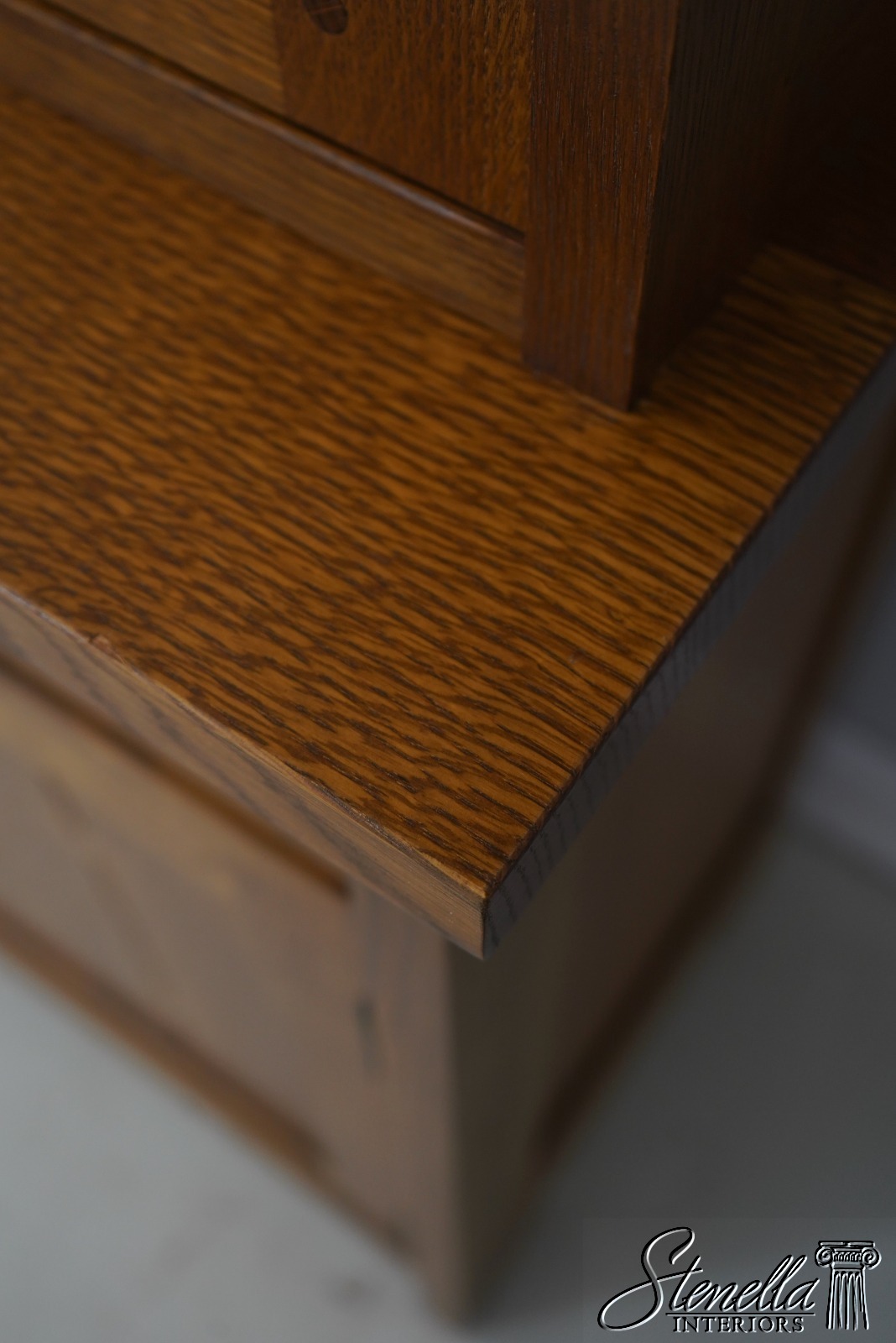 Details: Finish no.35 Crackle Glass Panels Glass Adjustable Shelves Dovetailed Drawer Construction High Quality Construction Lighted Interior 2 Piece Construction Arts & Crafts Style Offered @ Fraction Original Retail Cost
