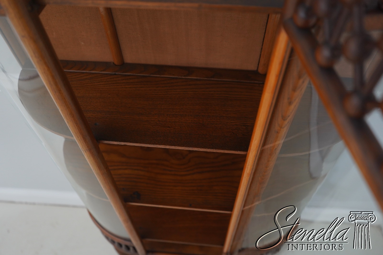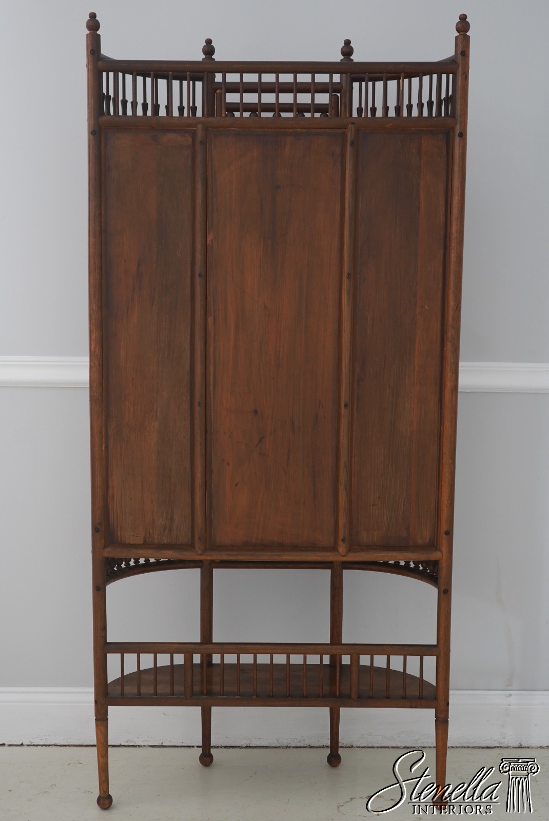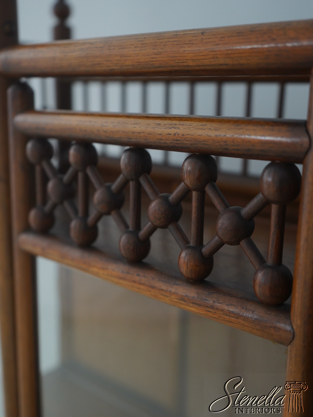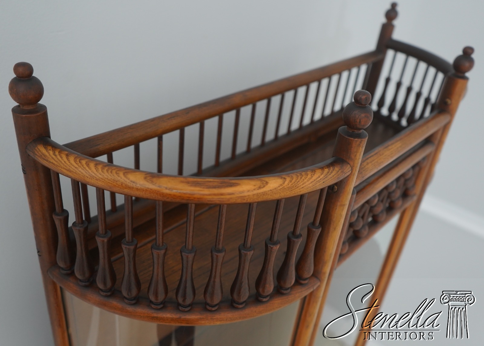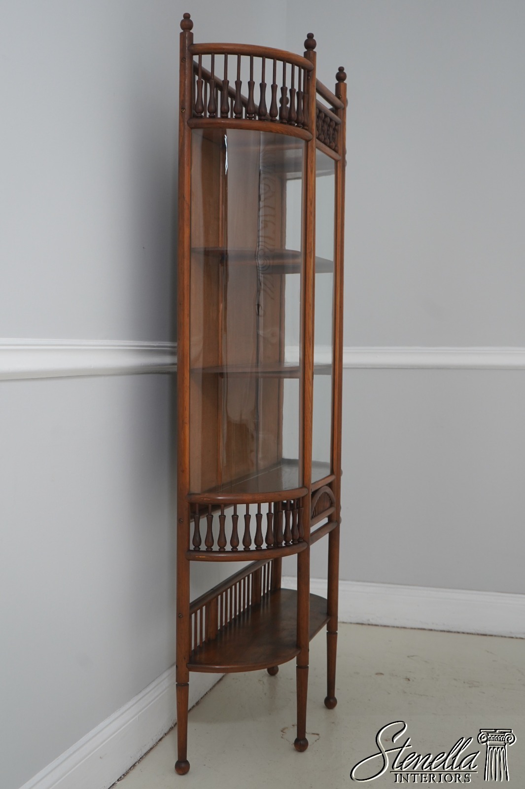71760: Antique Victorian Stick & Ball Oak Curio Cabinet