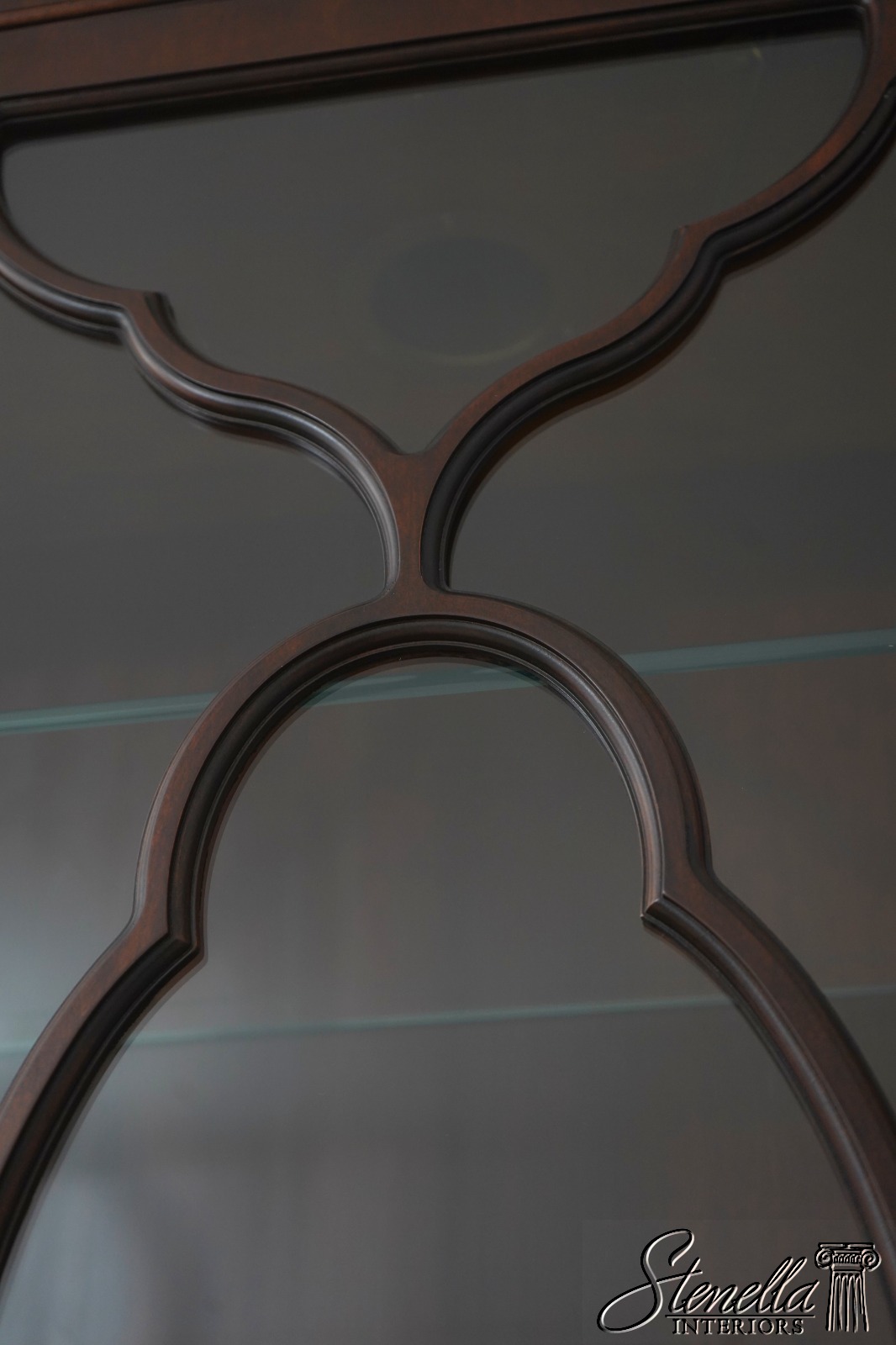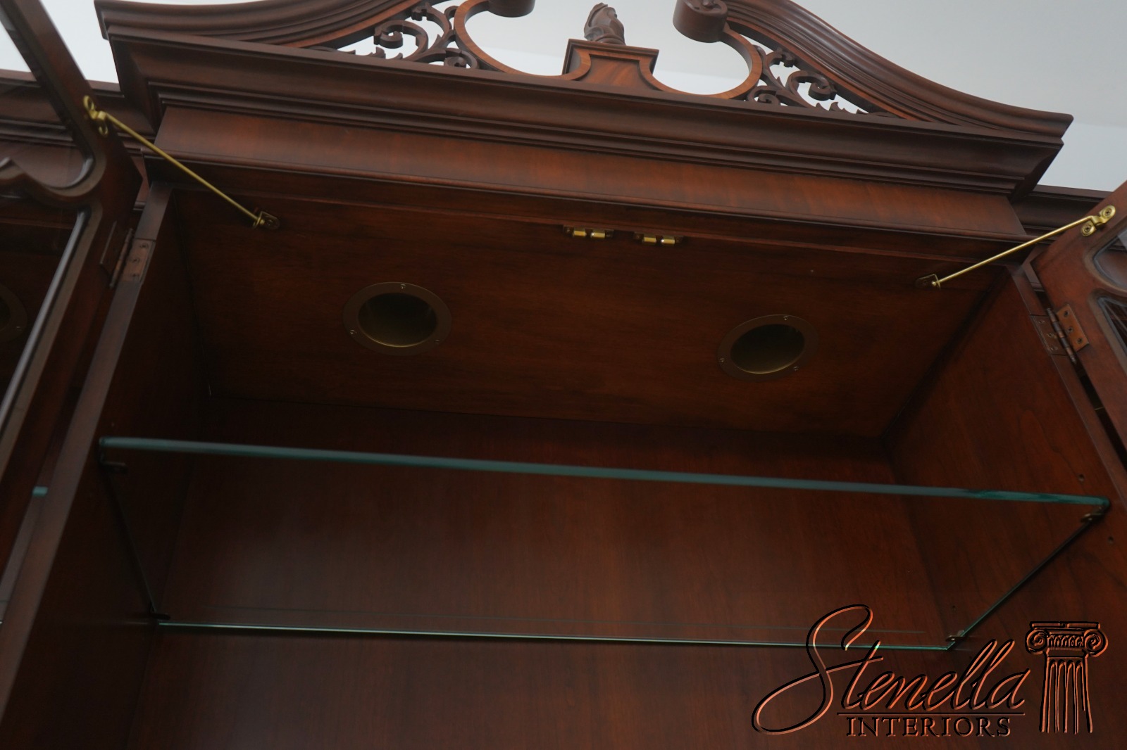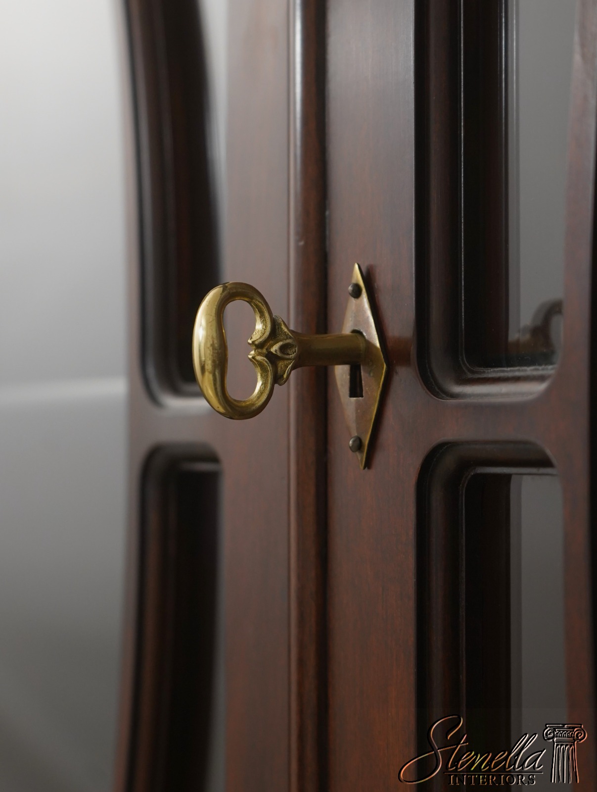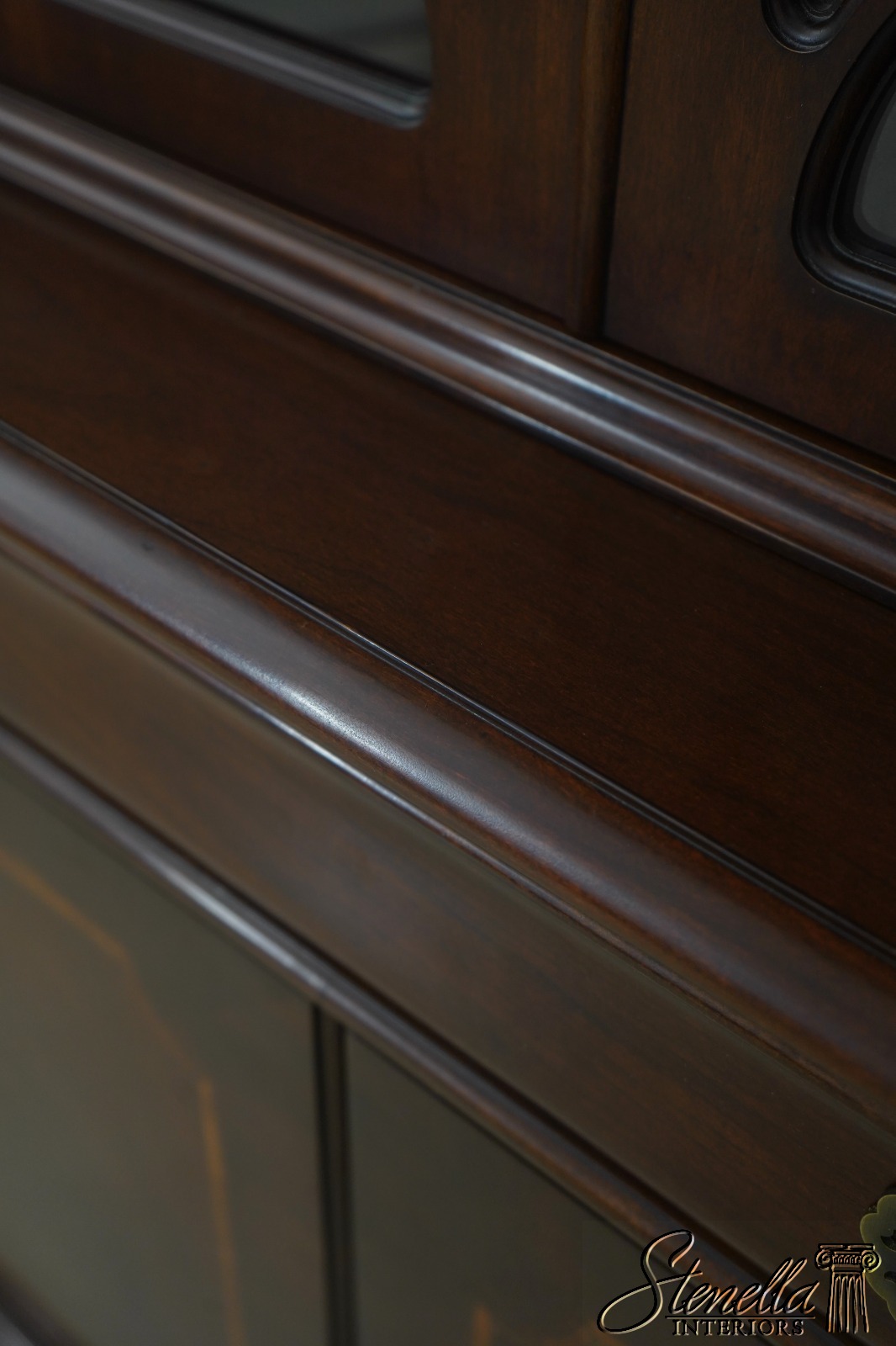 Details: Glass Adjustable Shelves High Quality Construction Flame Twist Finial 2 Piece Construction Nice Inlay Work Pediment Top w. Finial Individual Pane Glass Doors Traditional Style Solid Brass Hardware Pierced Pediment Top Pull Out Drawer w. Tooled Leather Writing Surface Felt Lined Silverware Inserts Offered @ Fraction Original Retail Cost - Over $35,000 NEW!
