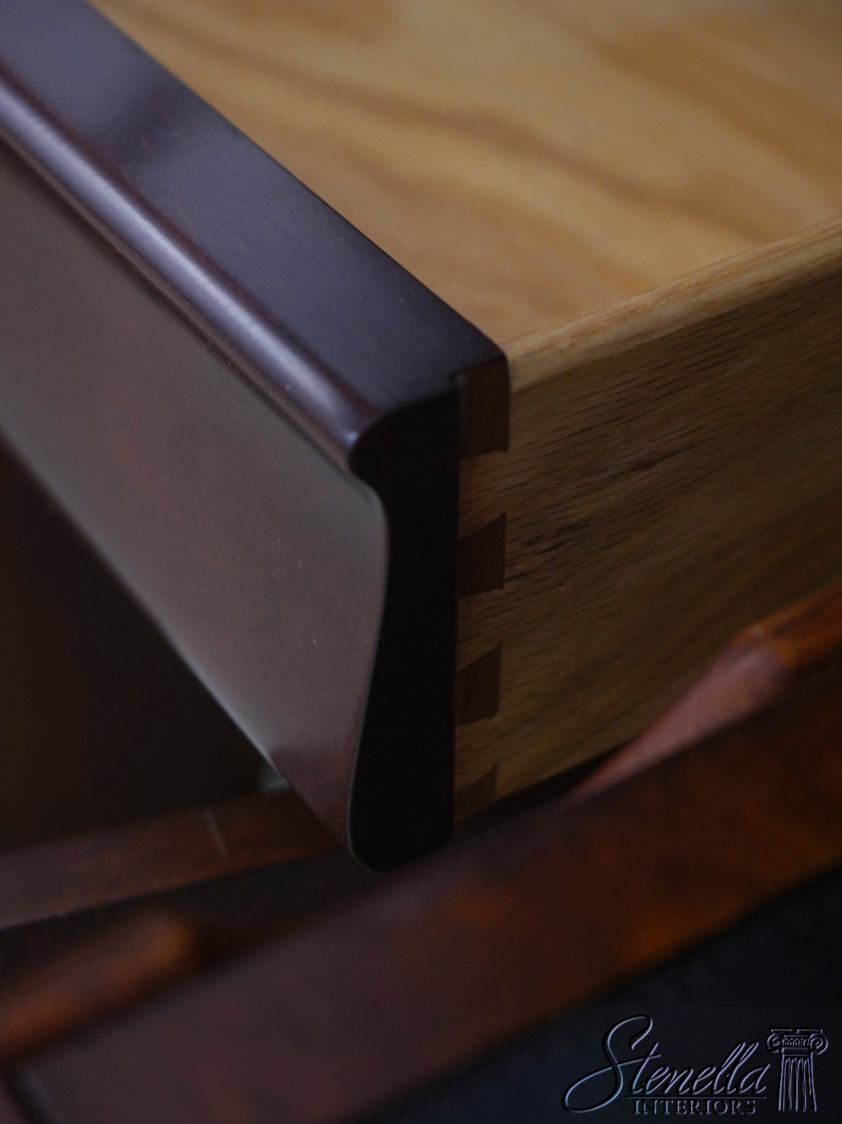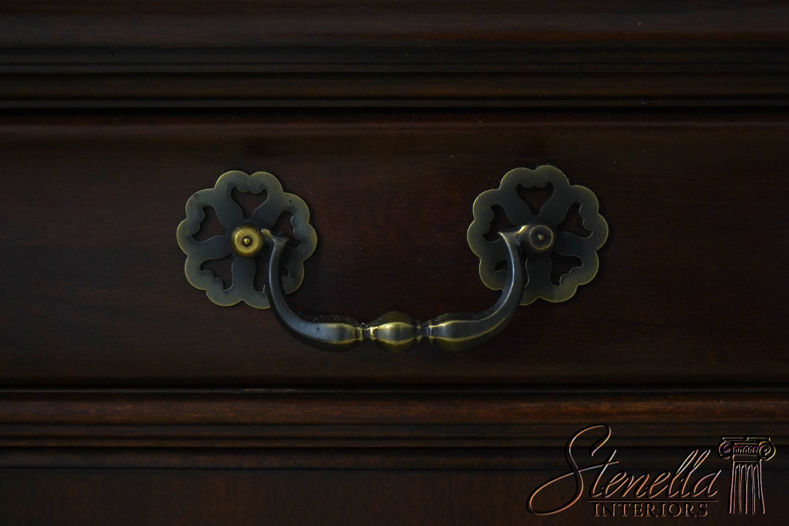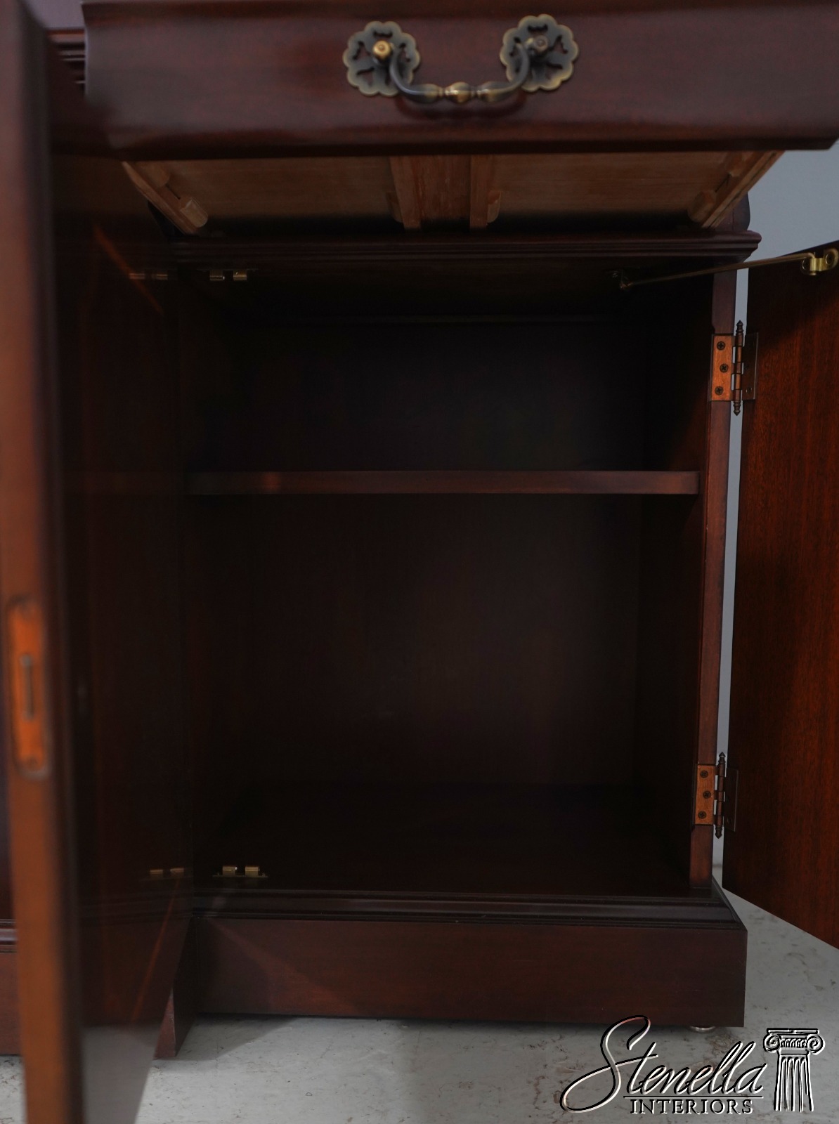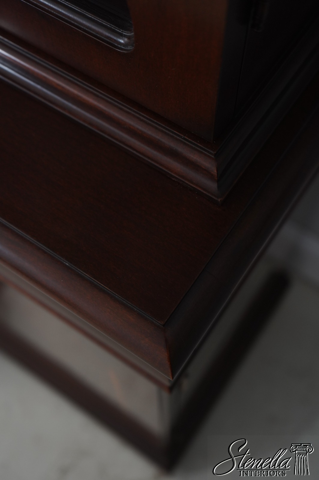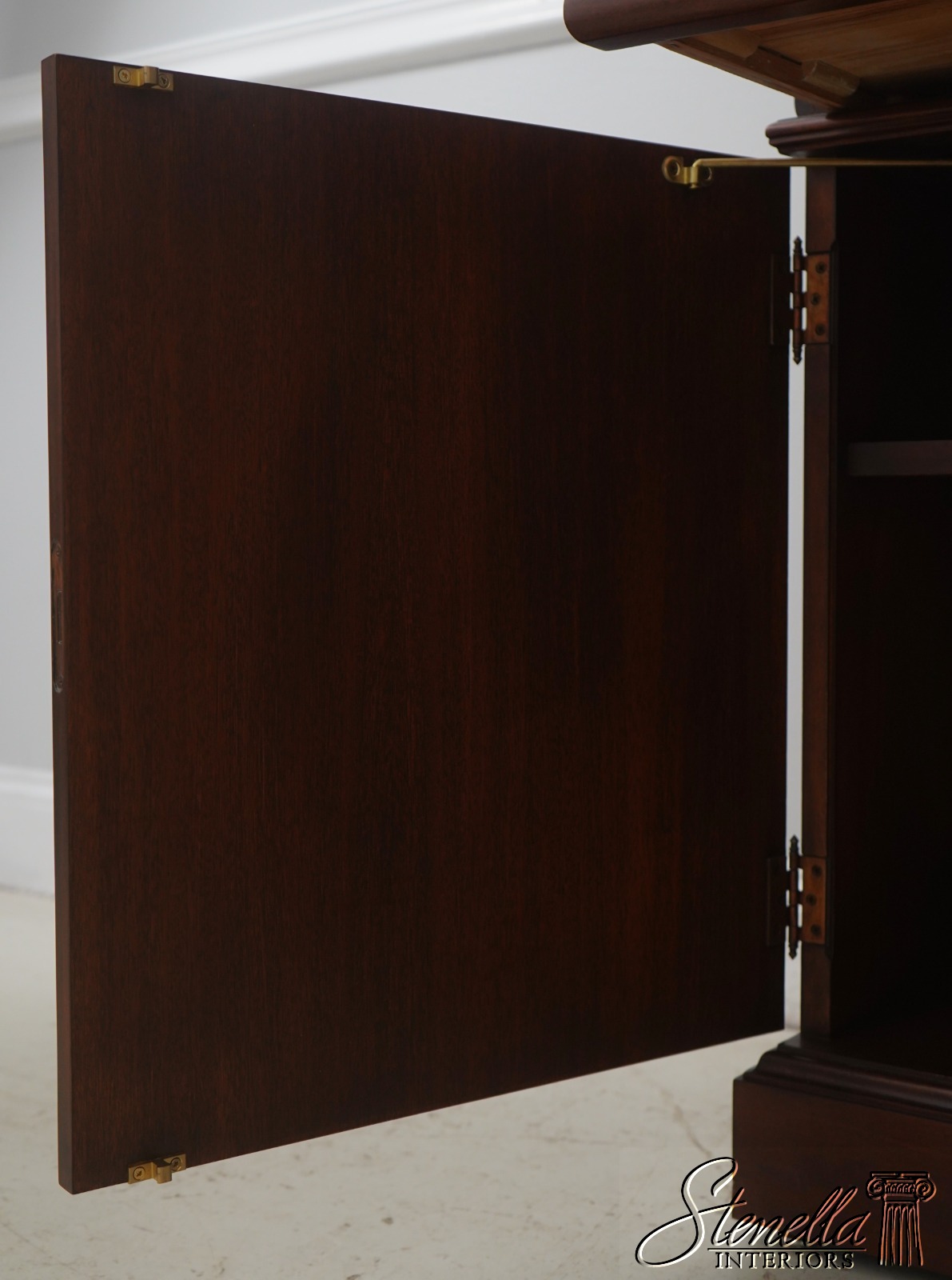 Details: Glass Adjustable Shelves High Quality Construction Flame Twist Finial 2 Piece Construction Nice Inlay Work Pediment Top w. Finial Individual Pane Glass Doors Traditional Style Solid Brass Hardware Pierced Pediment Top Pull Out Drawer w. Tooled Leather Writing Surface Felt Lined Silverware Inserts Offered @ Fraction Original Retail Cost - Over $35,000 NEW!