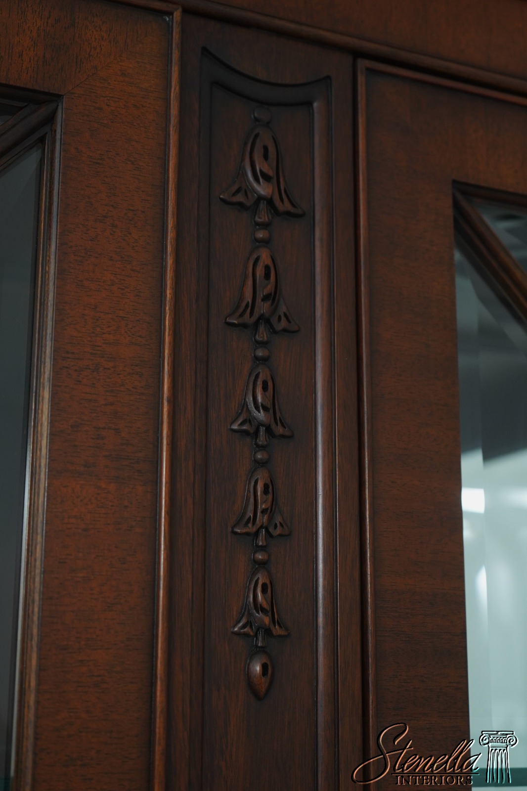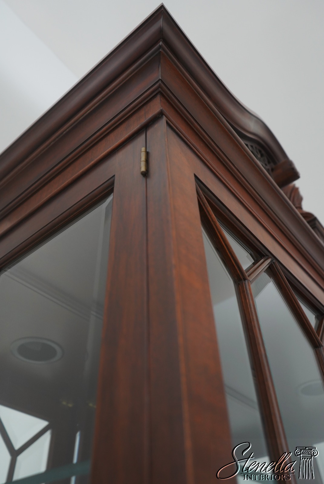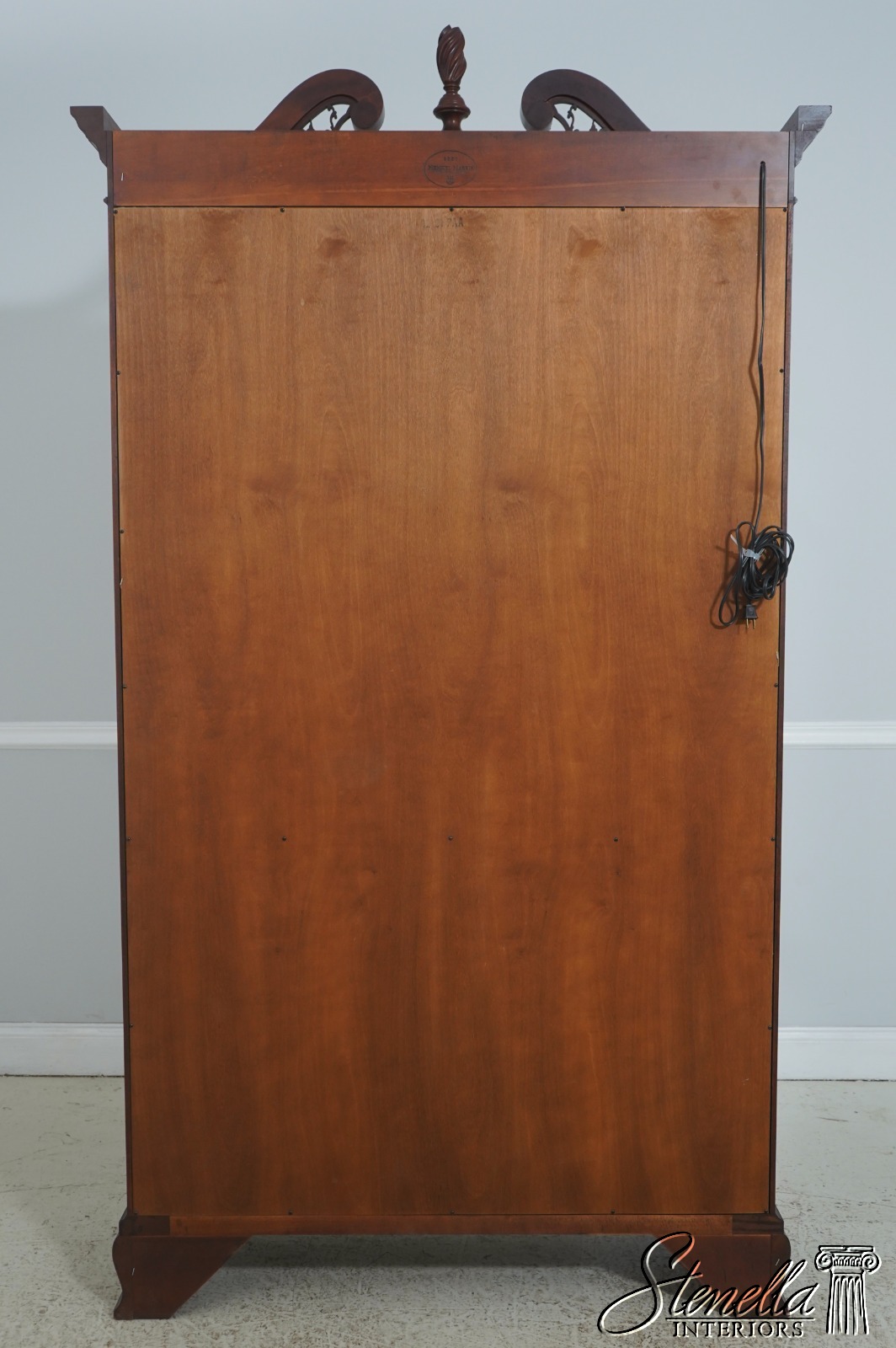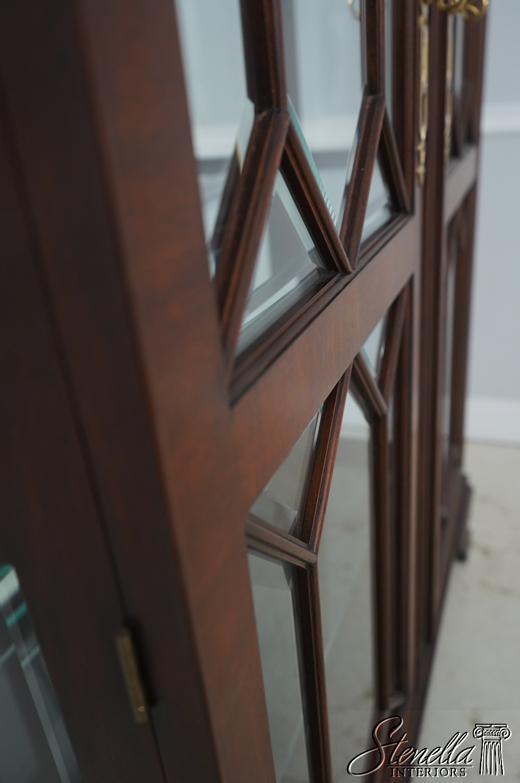 Details: Finish no 29 Model 2348 Glass Adjustable Shelves Beveled Glass Fine Carved Details High Quality Construction Lighted Interior Mirrored Back Pediment Top w. Finial 18 C. Design Chippendale Style Traditional Style Solid Brass Hardware Well Cared For Ready For Your Home Offered @ Fraction Original Retail Cost