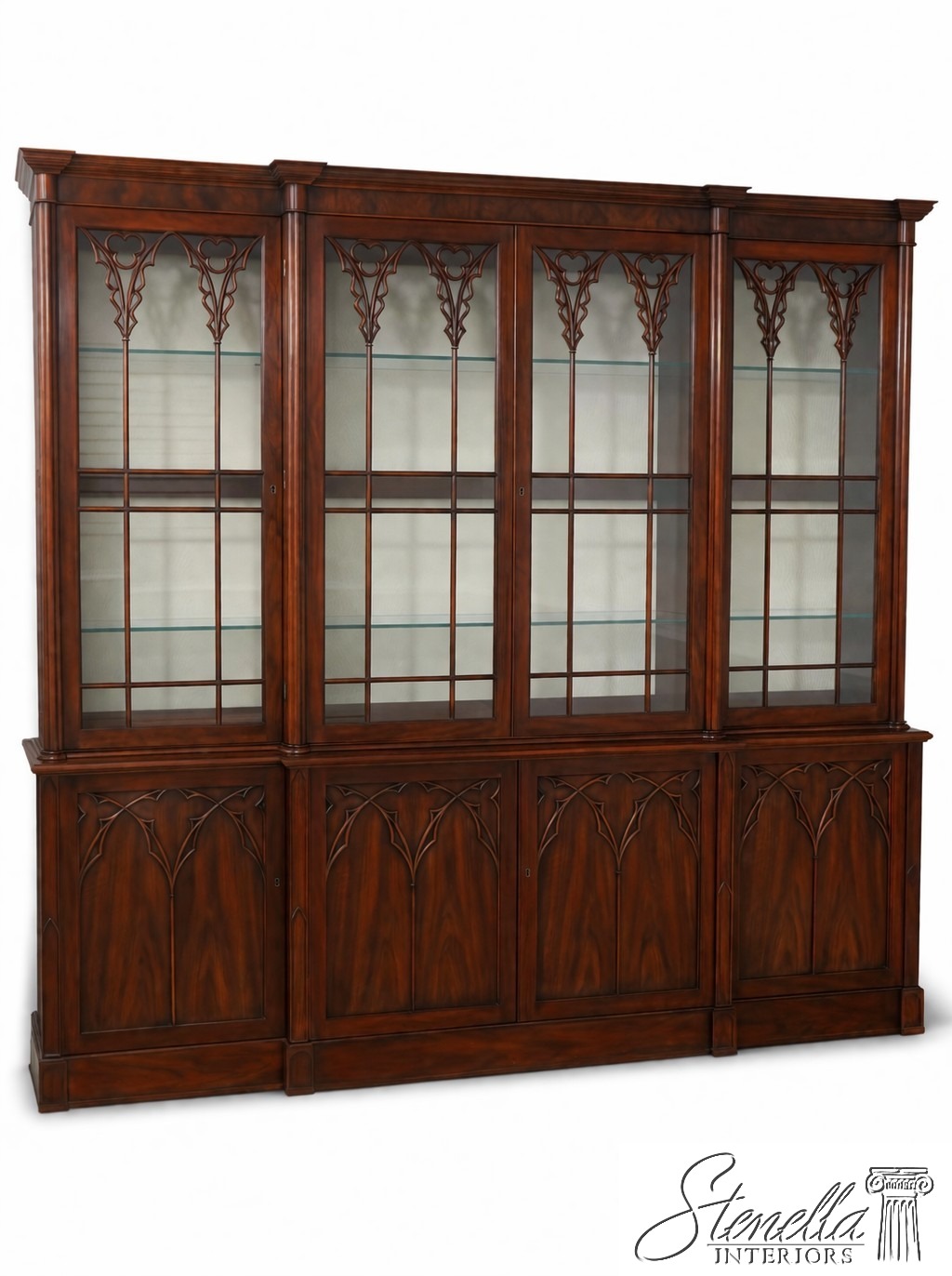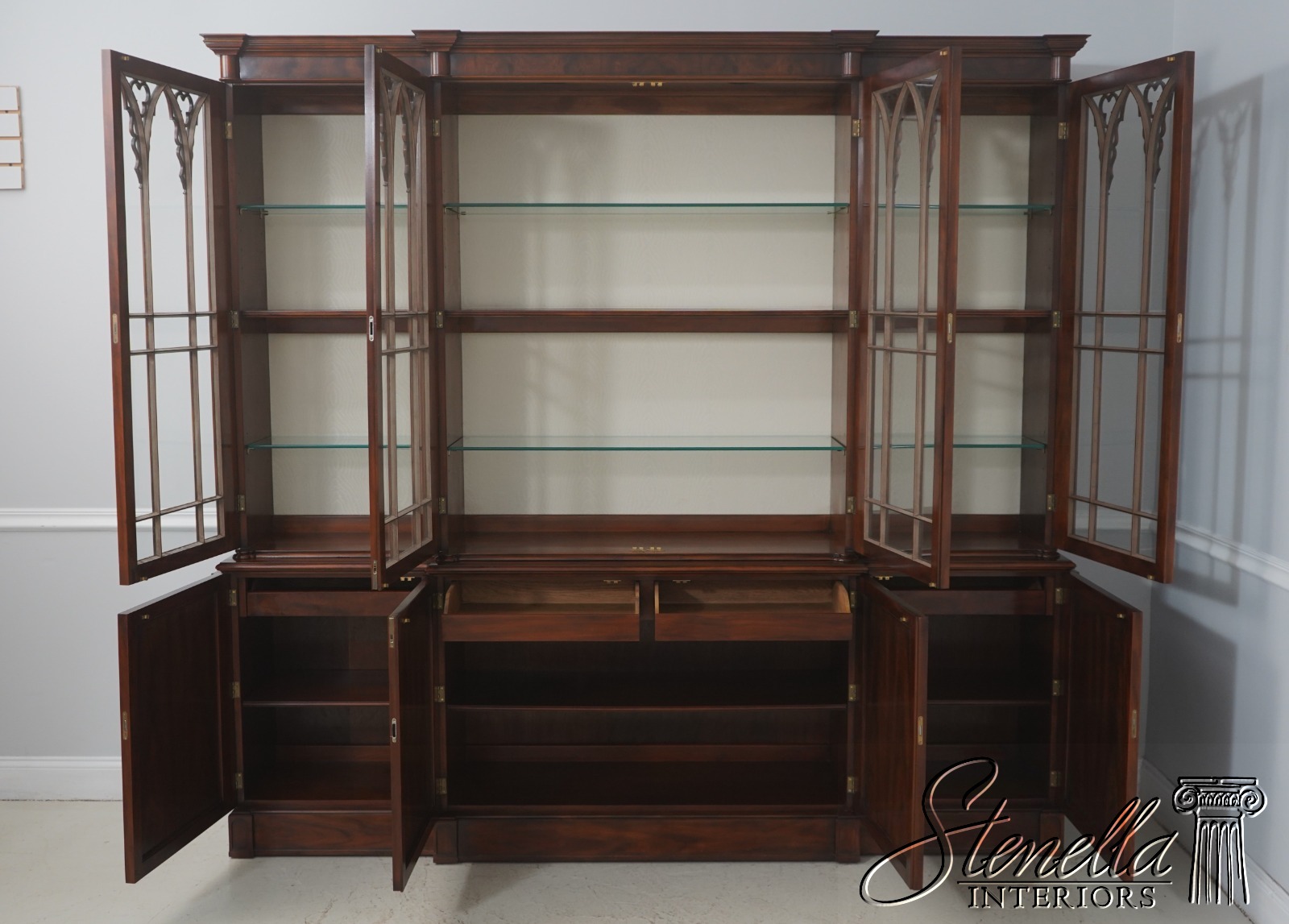 72383: JOHN WIDDICOMB Vintage Large Walnut Gothic Design Breakfront Display Bookcase