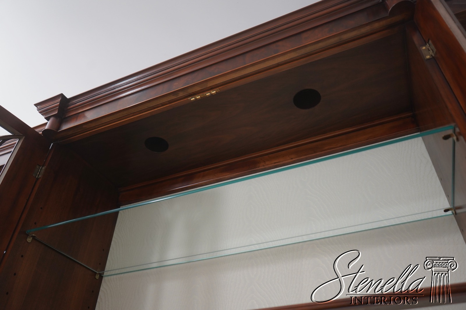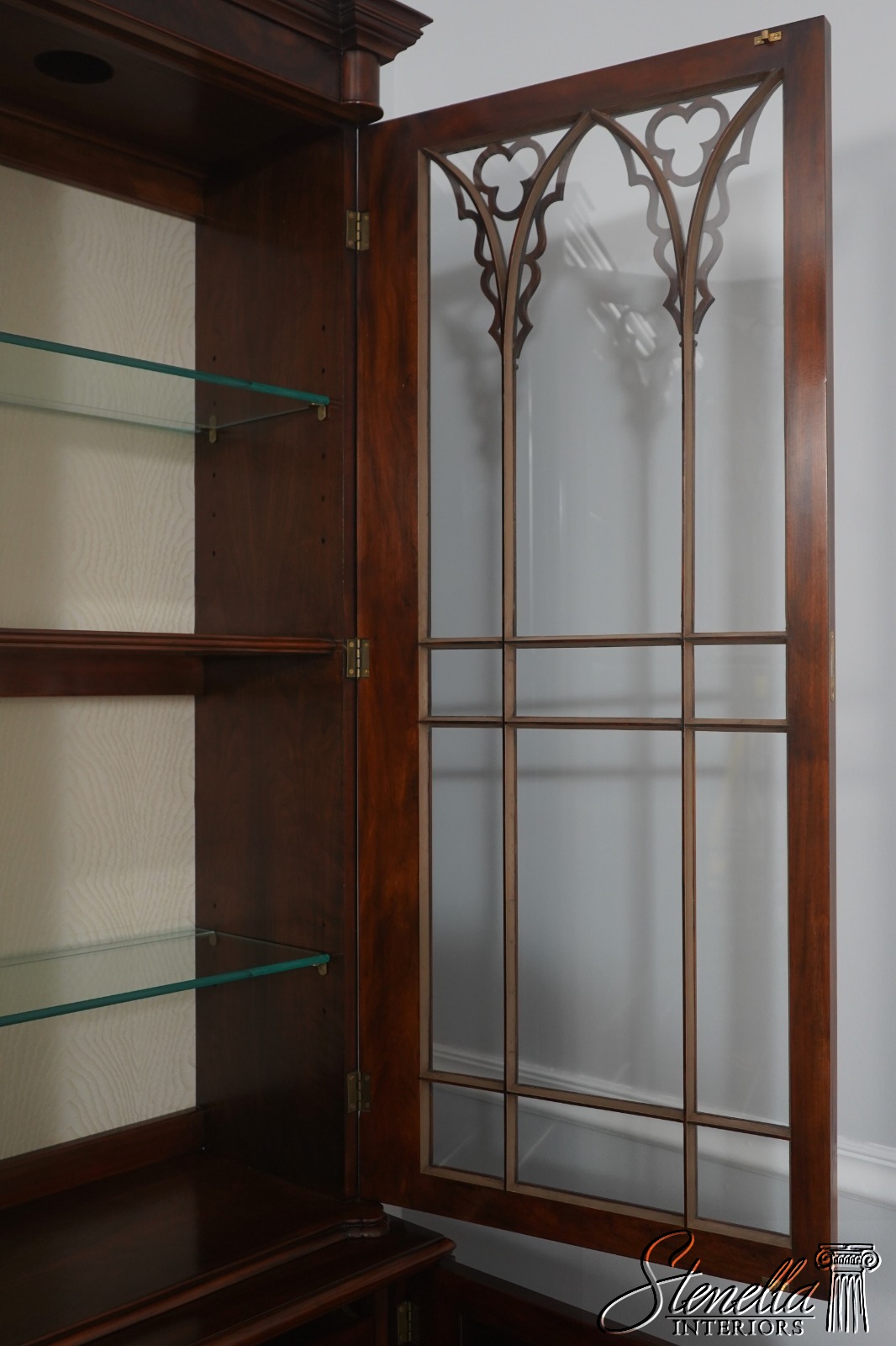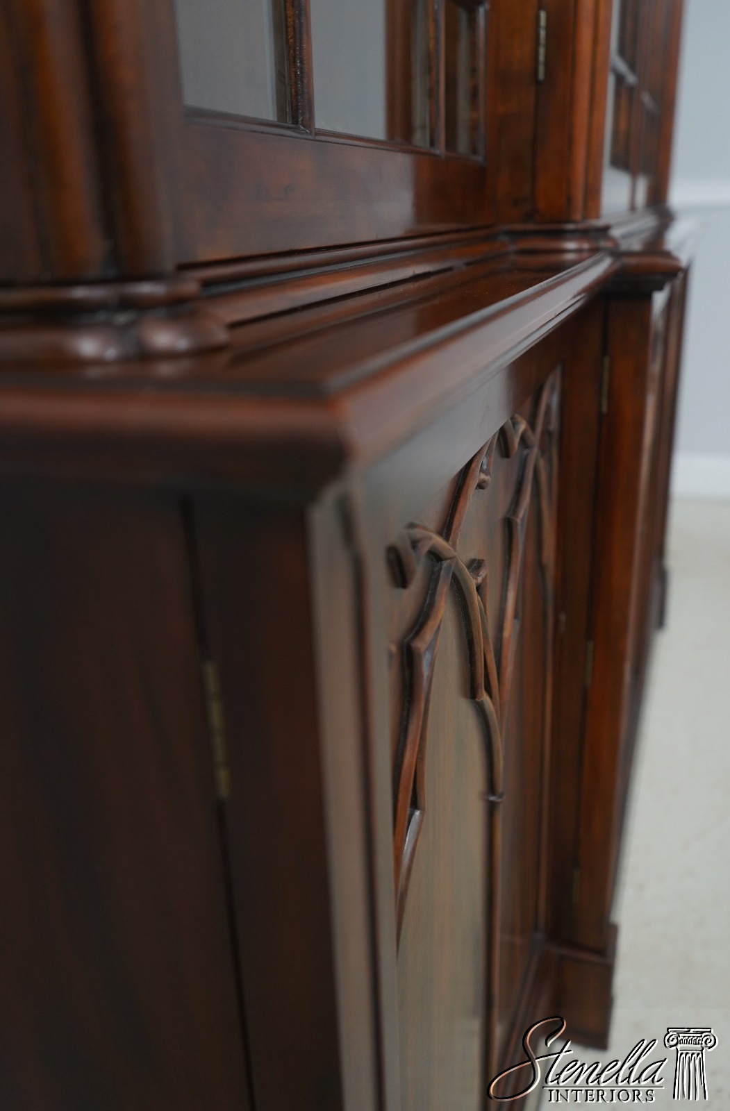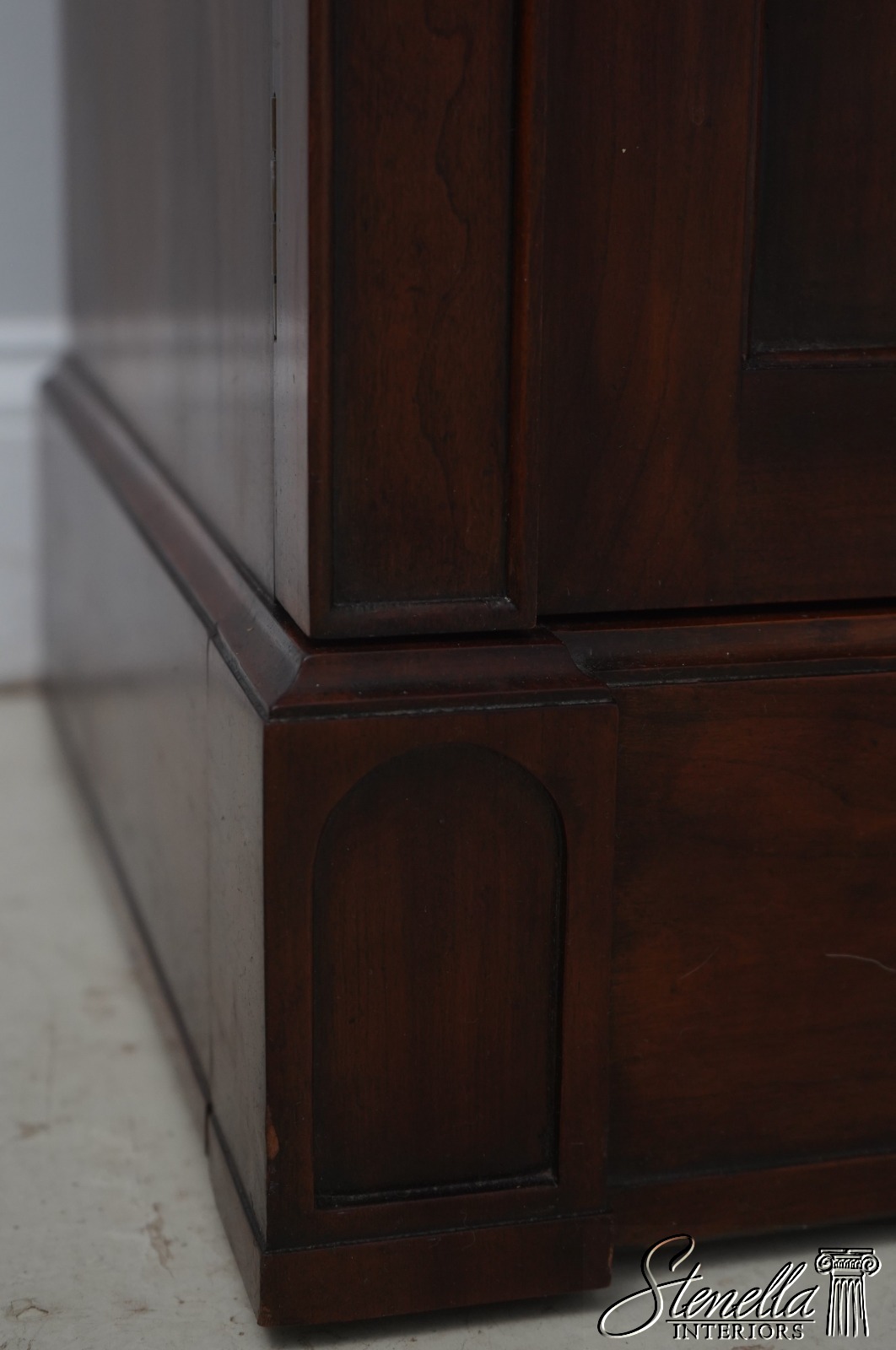 Details: Regency Style Adjustable Shelves Dovetailed Drawer Construction High Quality Construction Large Impressive Cabinet Quarter Column Sides Walnut Individual Pane Glass Doors Traditional Style 2 Pieces Key Locking w. Key 2 Interior Drawers Offered @ Fraction Original Retail Cost