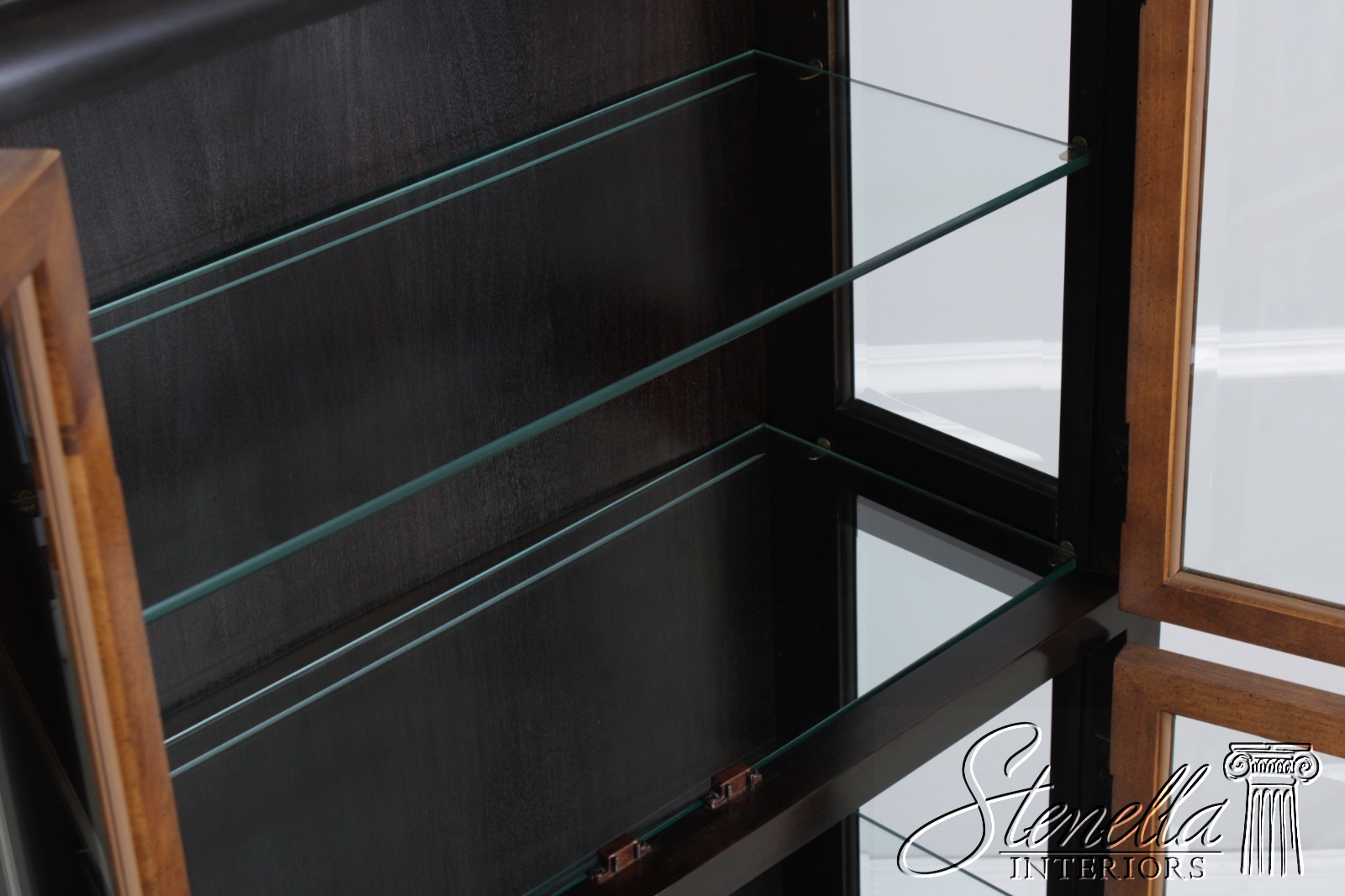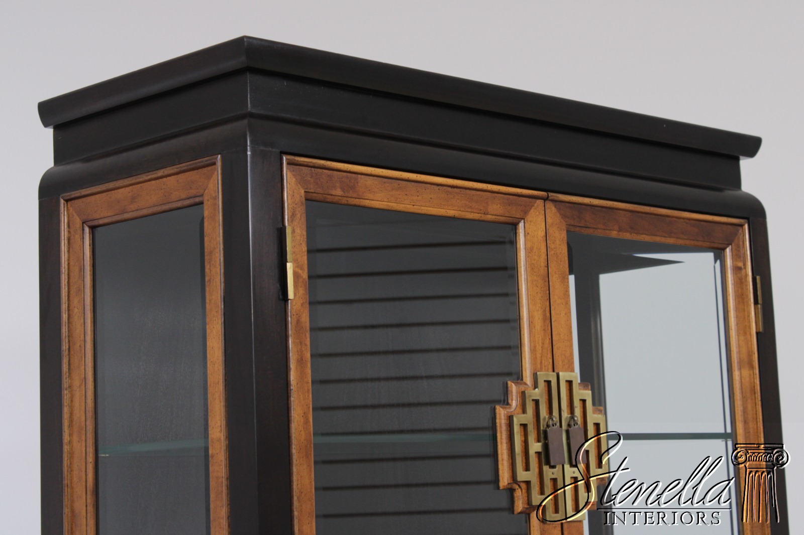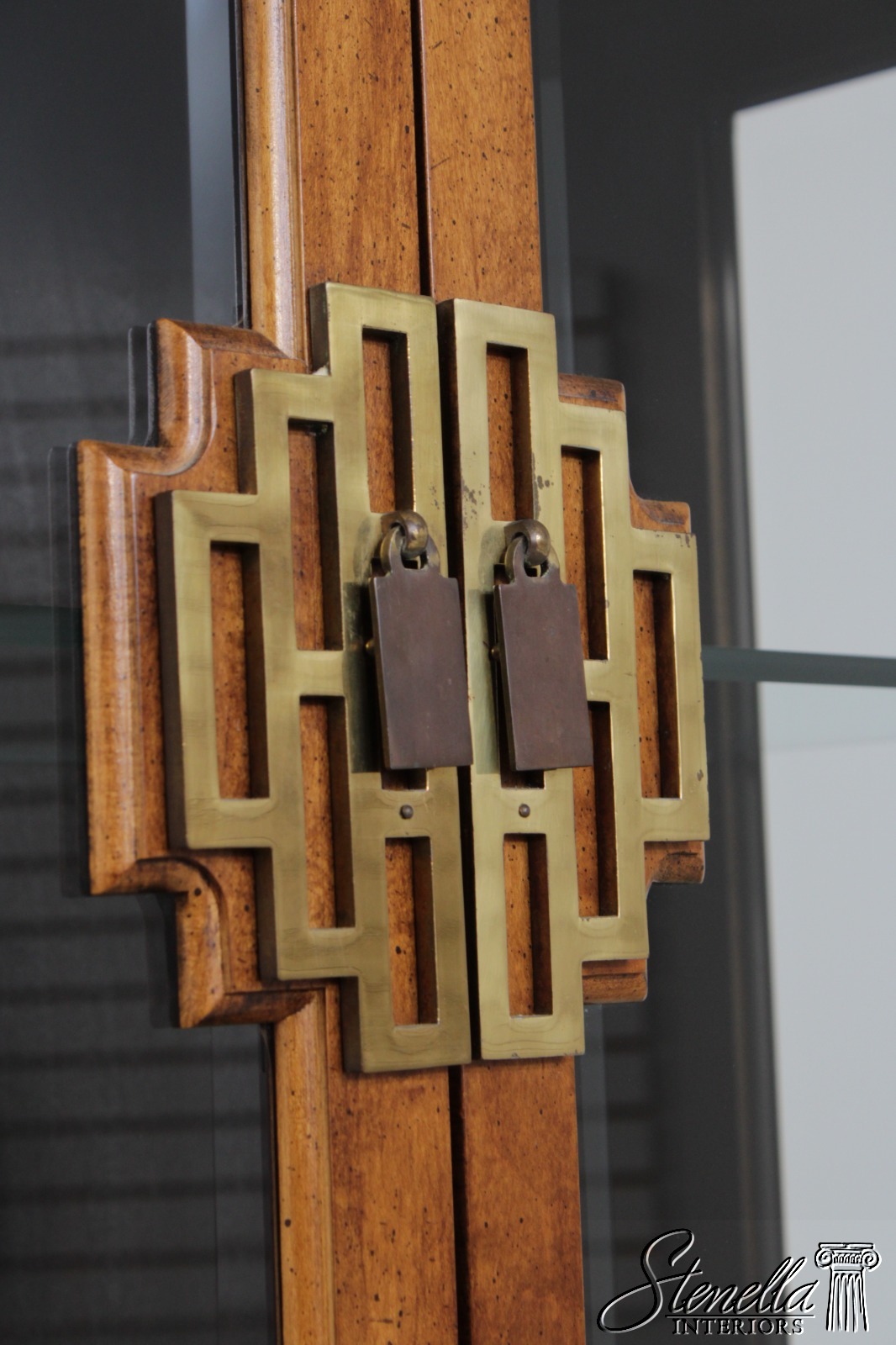 Details: Design By Raymond Sobota Mahogany Beveled Glass Dovetailed Drawer Construction Quality Construction Large Impressive Cabinet Lighted Interior Individual Pane Glass Doors Solid Brass Hardware Burl/Tortoise Shell Look To Drawers Offered @ Fraction Original Retail Cost