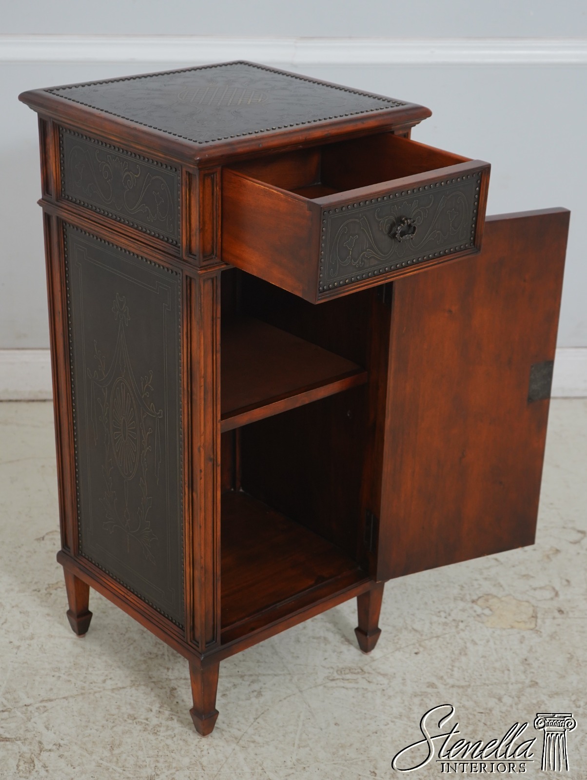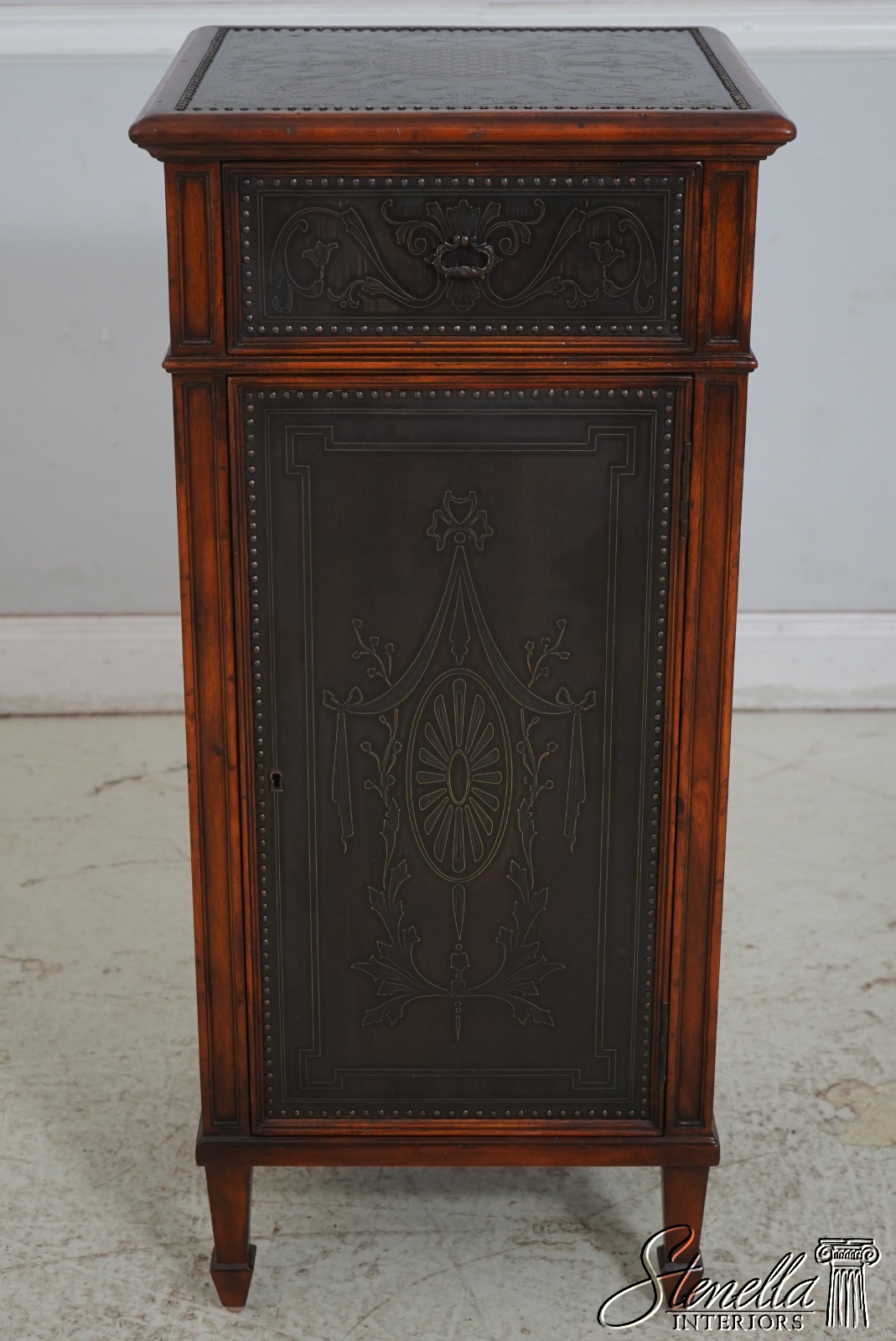 L69701: THEODORE ALEXANDER Embossed Bronze Surface 1 Door Cabinet