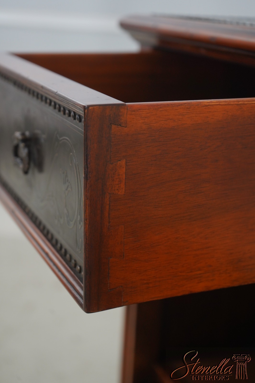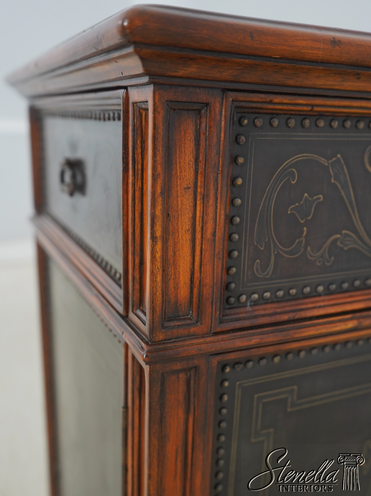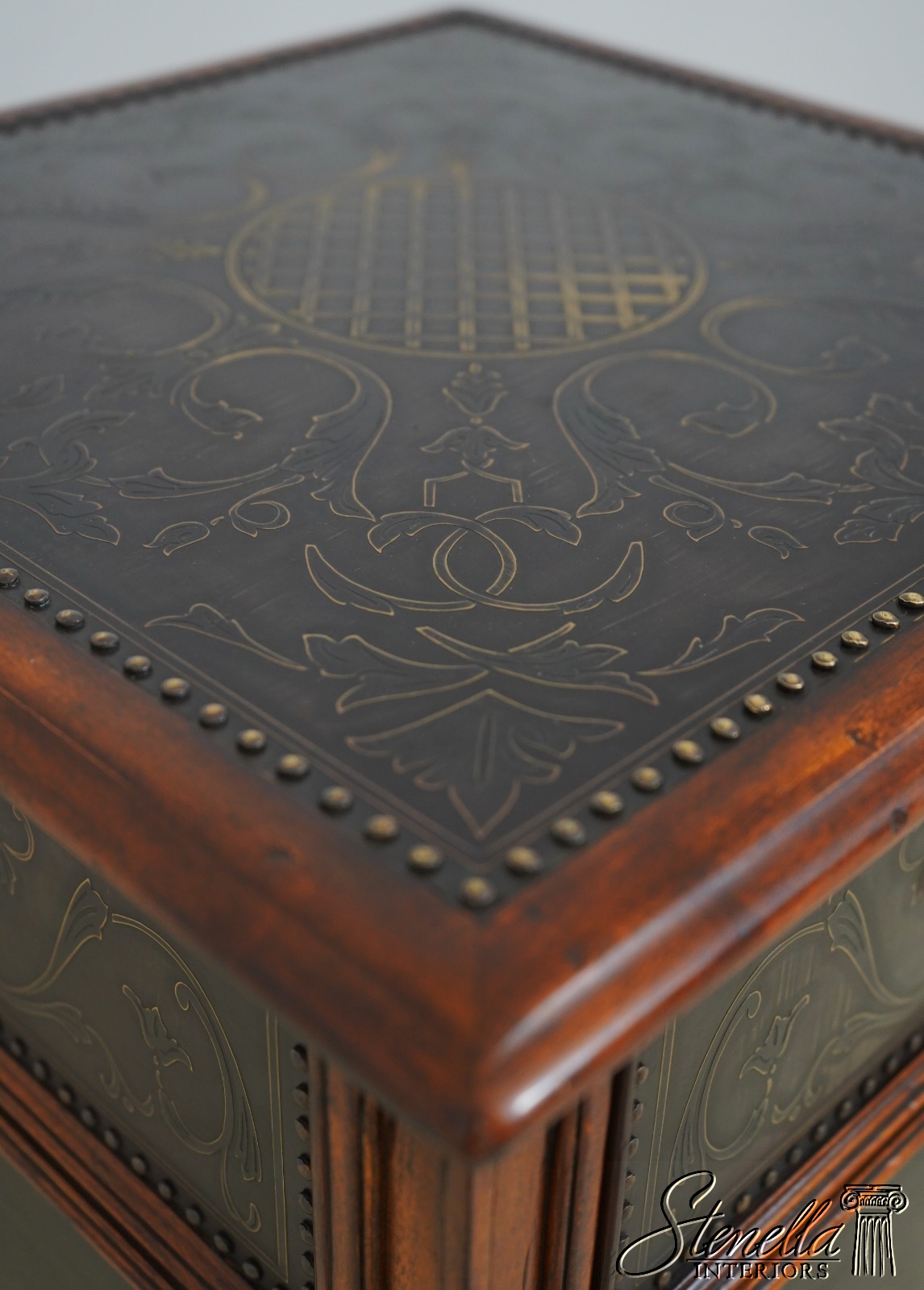 Details: Nicely Finished On All Sides Key Locking Door Dovetailed Drawer Construction High Quality Construction Bronze Finish Embossed Tack Head Trim Surfaces Solid Mahogany Case Un-Marked As To Manufacture Tack Head Trim Offered @ Fraction Original Retail Cost