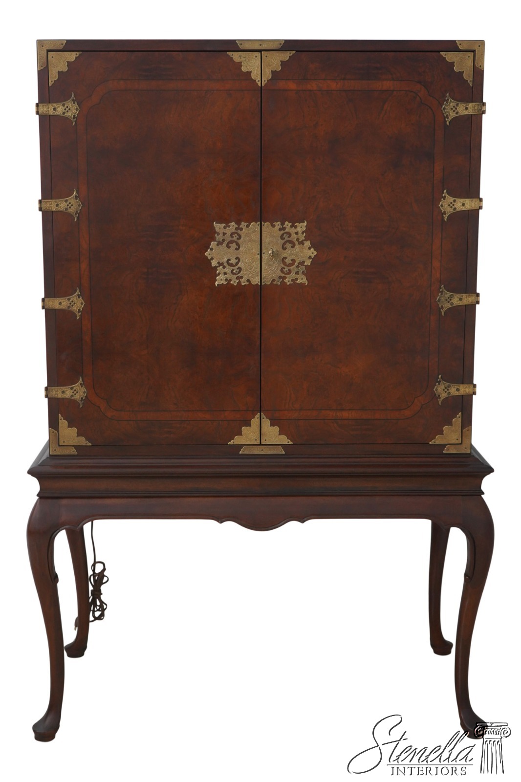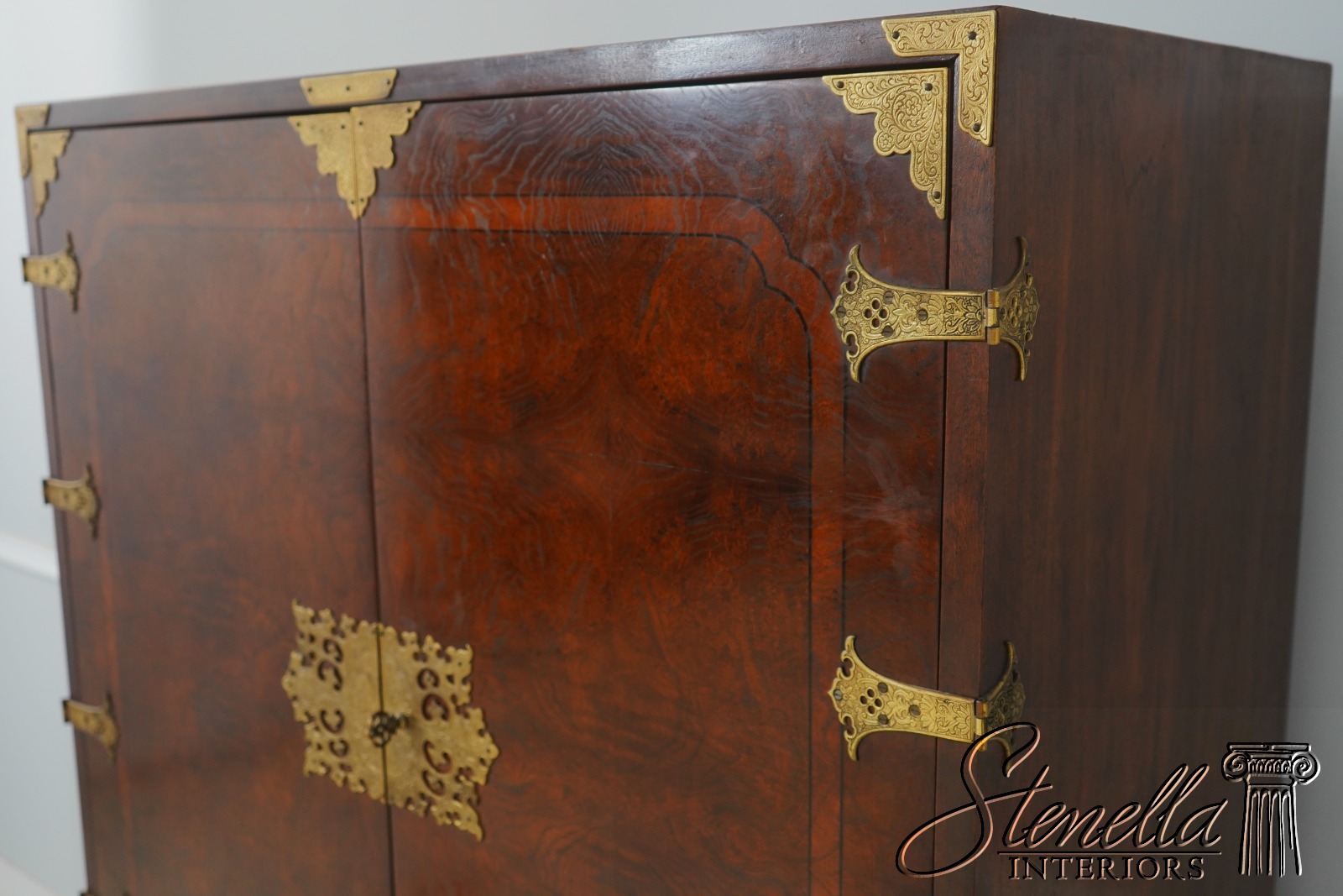 L70001: Burl Walnut Chinoiserie Form TV Media Bar Cabinet