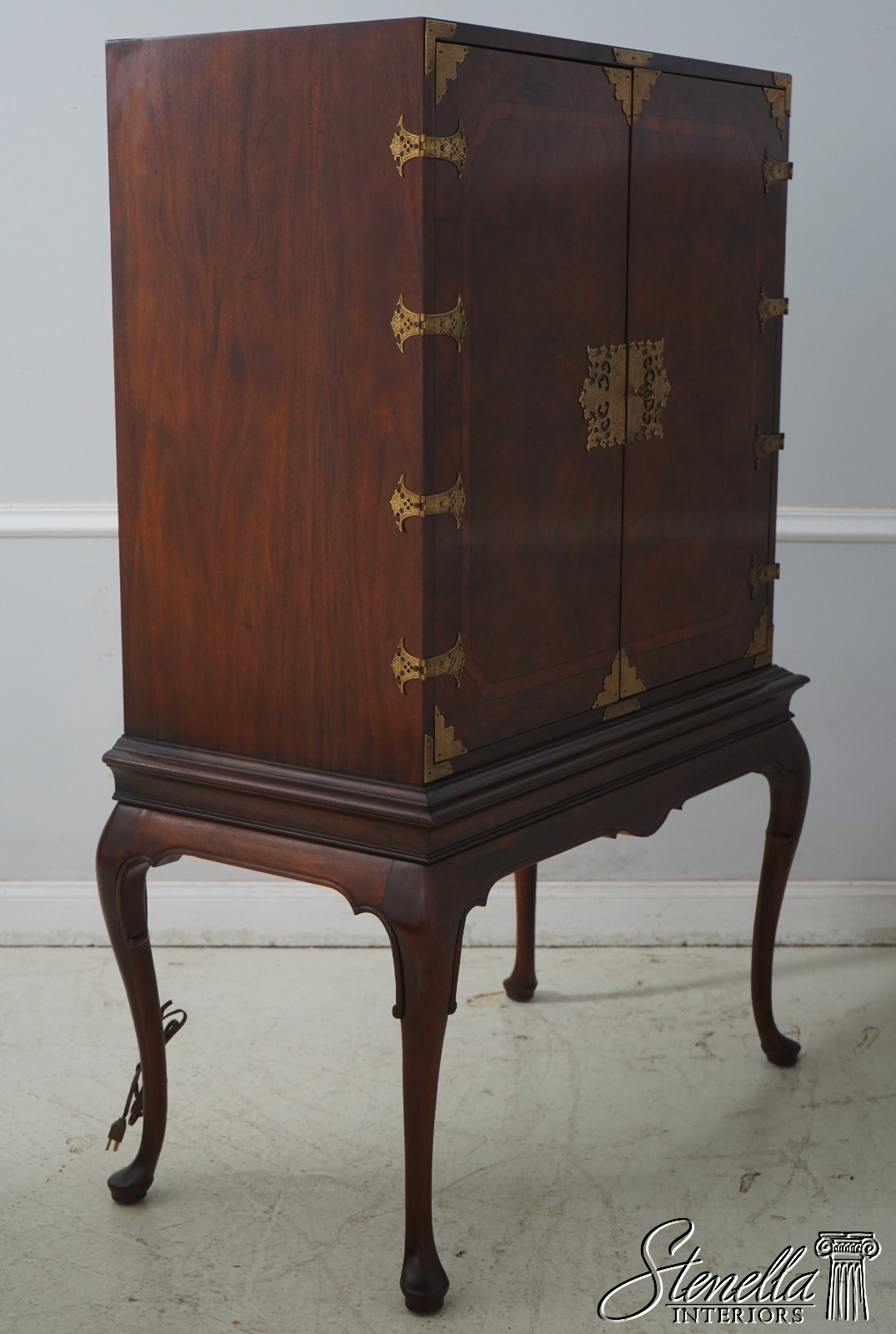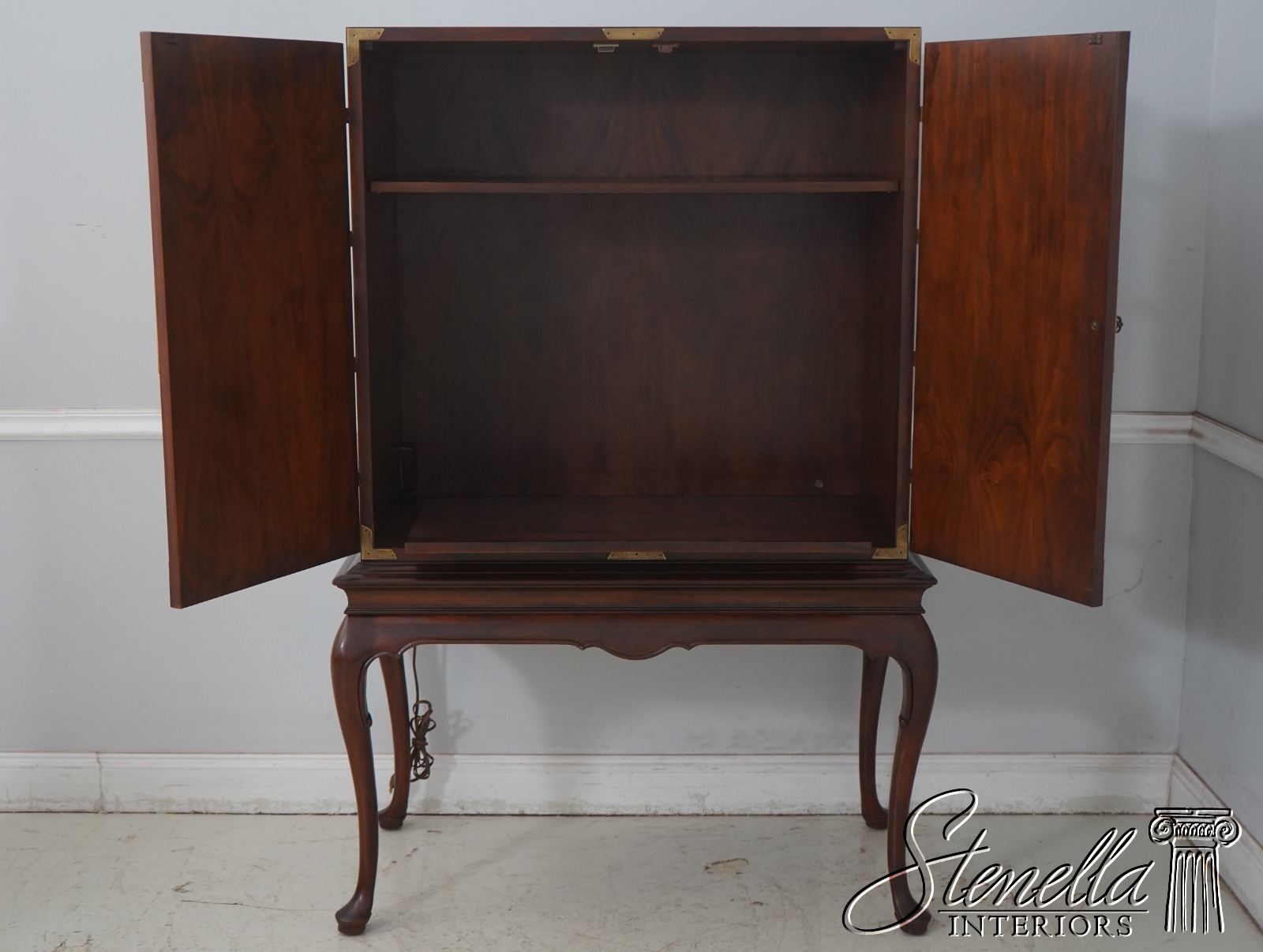 Details: Adjustable Shelves High Quality Construction Queen Anne Legs & Pad Feet Chippendale Style Solid Brass Hardware Attached Extension Outlet Un-Marked As To Manufacture - Possibly By Henredon Or Similar Manufacturer Offered @ Fraction Original Retail Cost