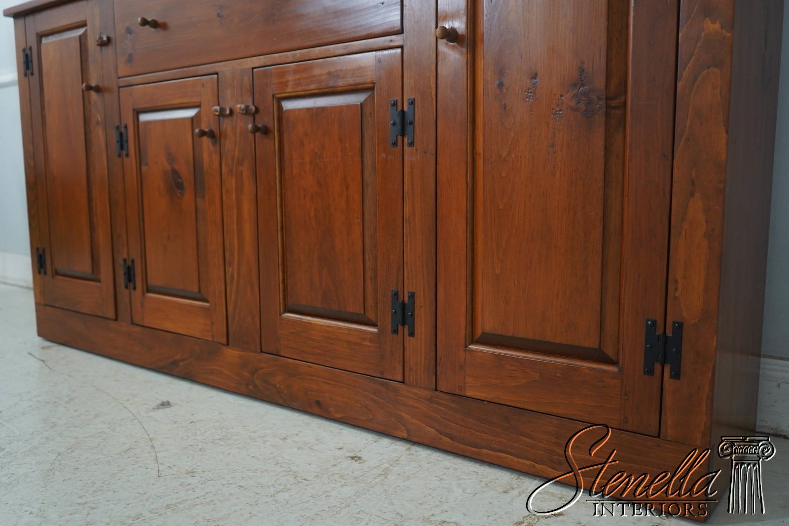 Details: Factory Distressed Solid Pine Raised Panel Doors Open Hutch Cupboard Bench Made Hand Crafted