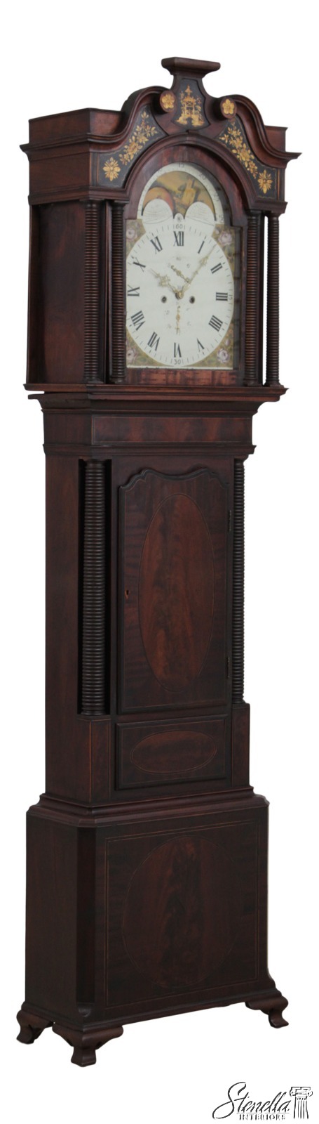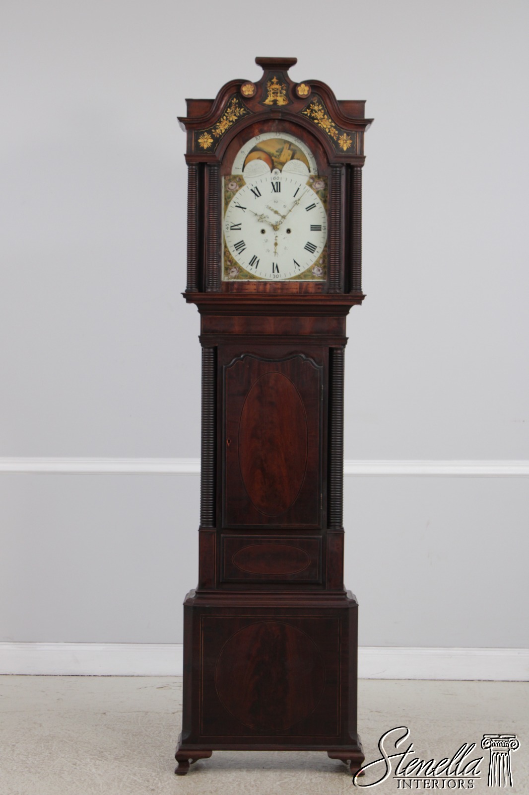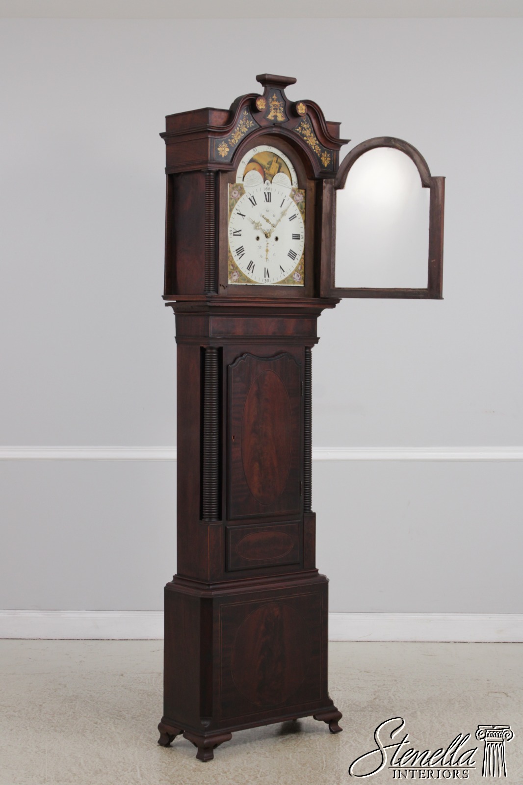 F70546: Antique 18th C. English 8 Day Flame Mahogany Grandfather Clock