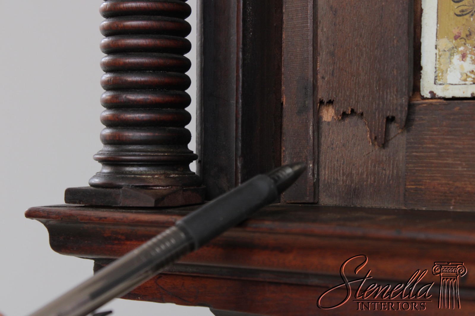 Stenella Antiques always recommends having a clock setup, tuned and adjusted by a professional after being moved. Most clock movement manufacturers recommend having a clock tuned or adjusted every two years or so, and now would be a good time to have that done. We are not clock experts, but feel free to email us any questions and we will gladly try to answer them for you. This clock is setup at our location to ensure it is in working order. We make sure all parts are here and in basic functioning order. We do not inspect or guarantee timing, wear to bushings or moving parts etc. Normal age appropriate wear should be expected. Be sure to view our additional offerings for additional quality furniture items for your home. Feel free to message any questions.