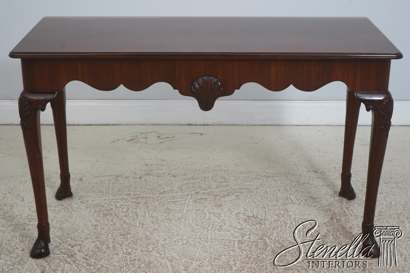 Details: Irish Georgian Collection High Quality Construction Queen Anne Legs And Pad Feet 18th Century Design Traditional Style Rich High Sheen Finish Carved Hoof Feet Scalloped Apron Shell Carvings Offered At A Fraction Of The Original Retail Cost