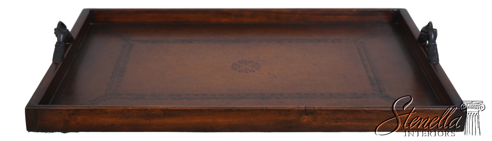 70166: THEODORE ALEXANDER Leather Top Serving Tray w. Bronze Handles