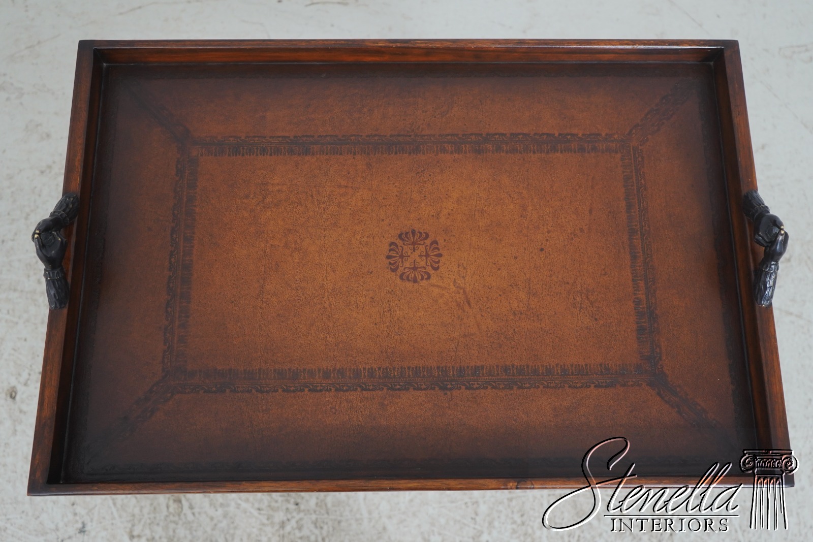 Details: Bronze Thumb Handles Quality Construction Tooled Leather Top Serving Tray Only - Table Under Tray NOT INCLUDED Un-Marked As To Manufacture Offered @ Fraction Original Retail Cost