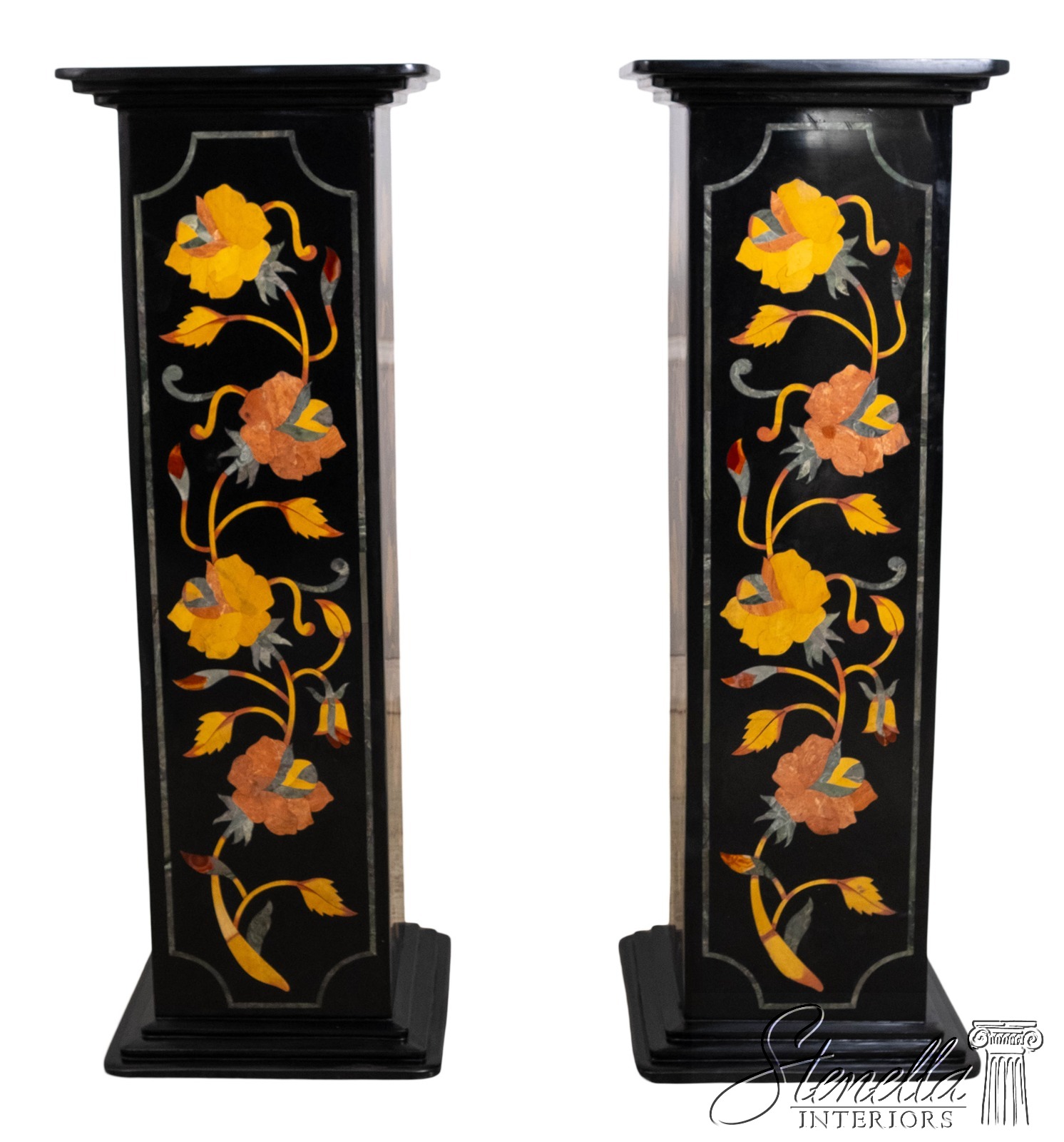 70629: Pair Monumental Pietra Dura Inlaid Marble Pedestals