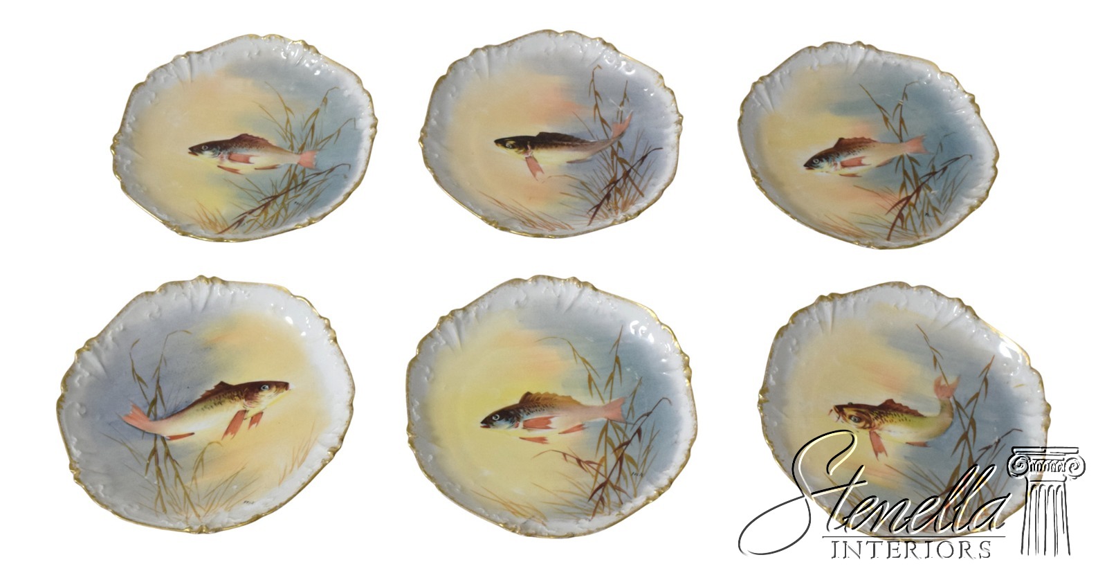 F66990: Set of 6 Antique Limoges Frame Fish Plates