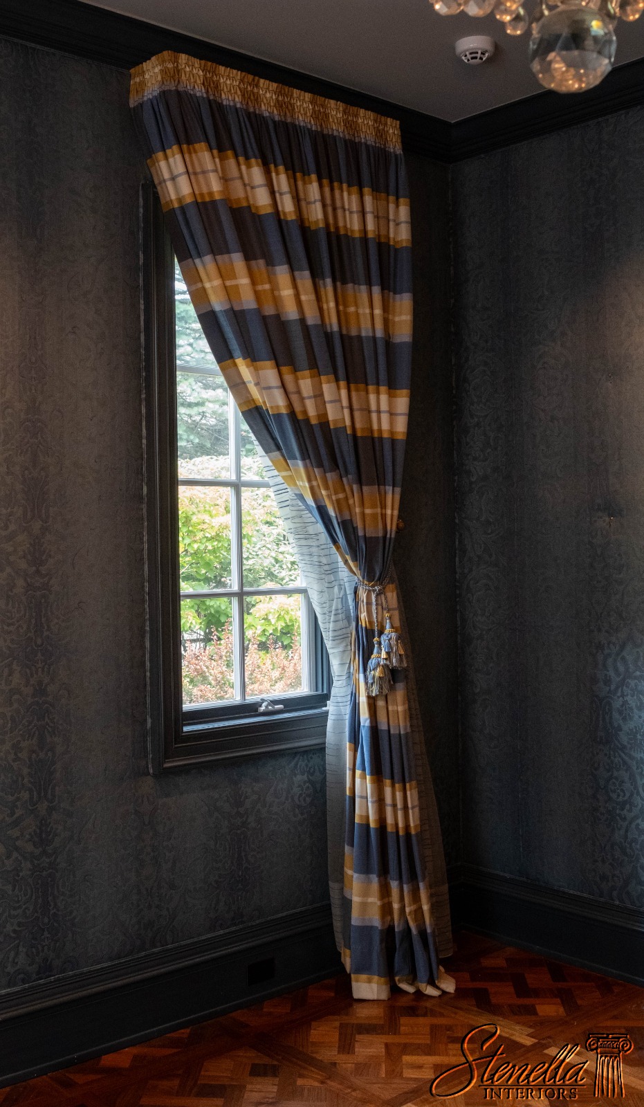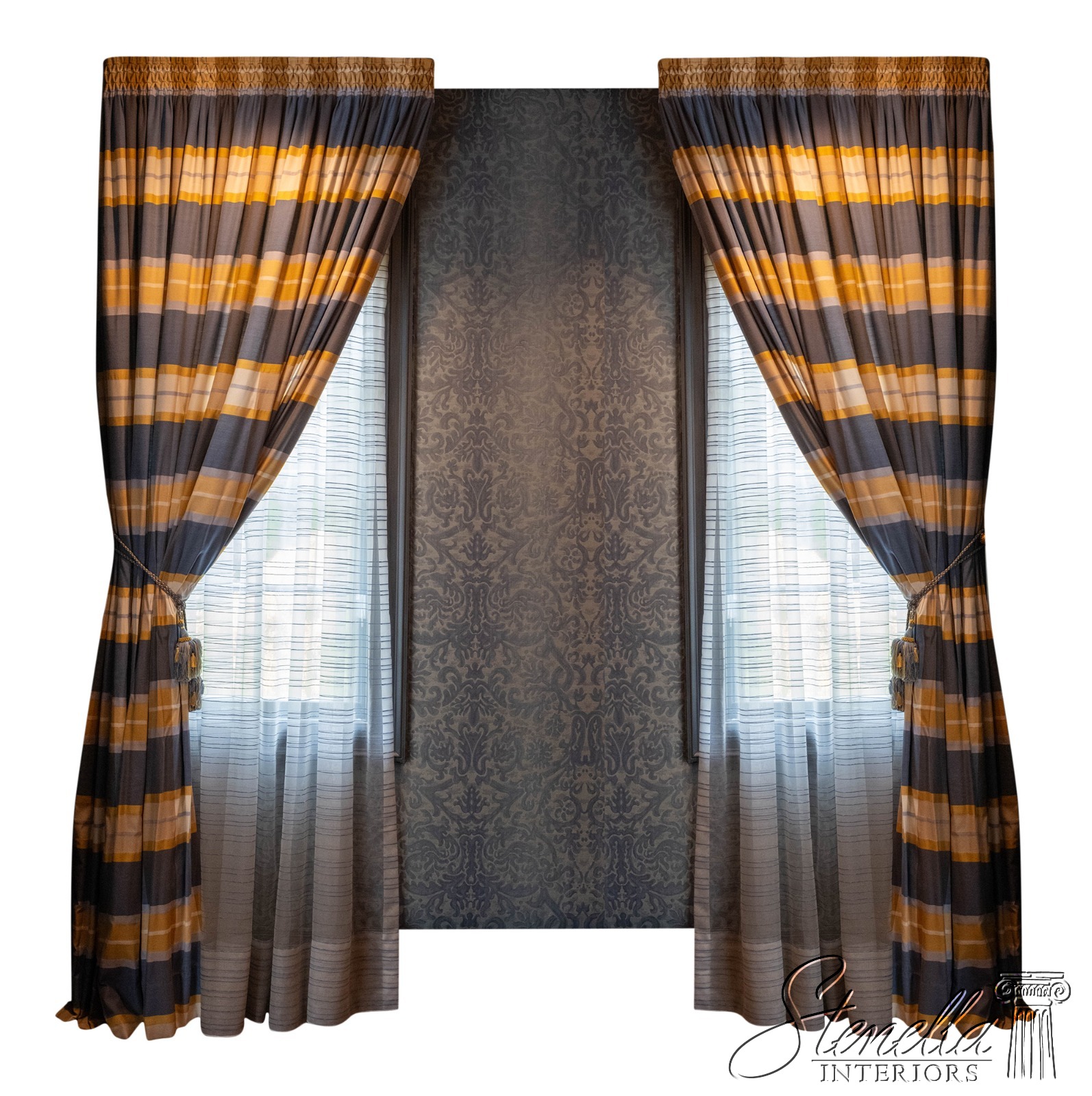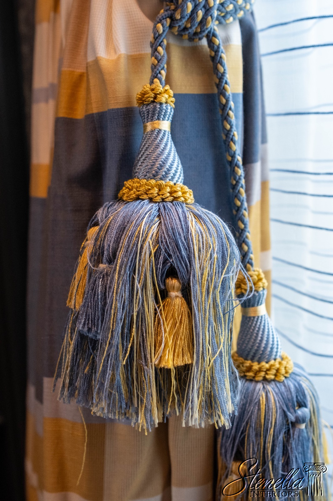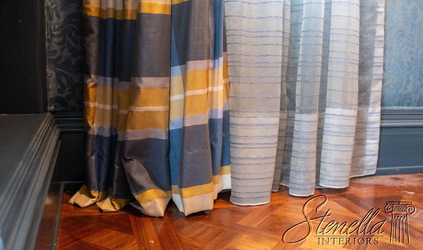 F68913: Custom High Quality Blue & Gold Window Drapes