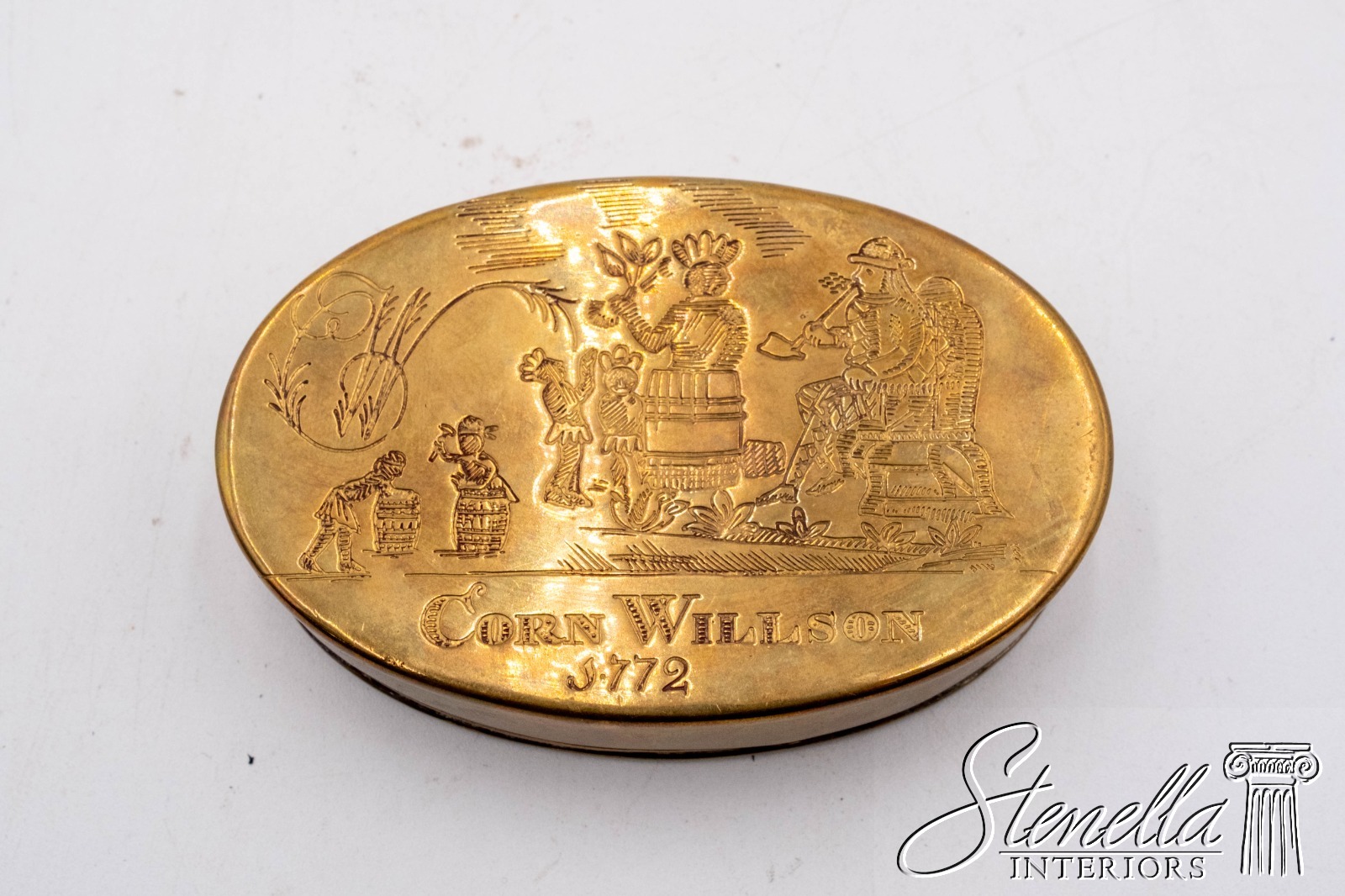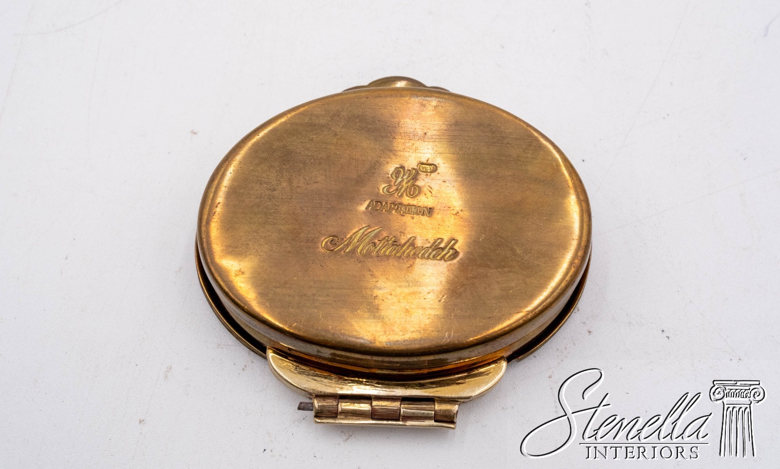 Details: All are items by MOTTAHEDEH Winterthur except the candle snuff scissors (Virginia Metalcrafters Colonial Williamsburg CW16-18). Listed dimensions are for the scissors. Corn Willson snuff box (Oval case): 4 x 2.5 x 1 Compact case (Round): 3.25 x 3.2
