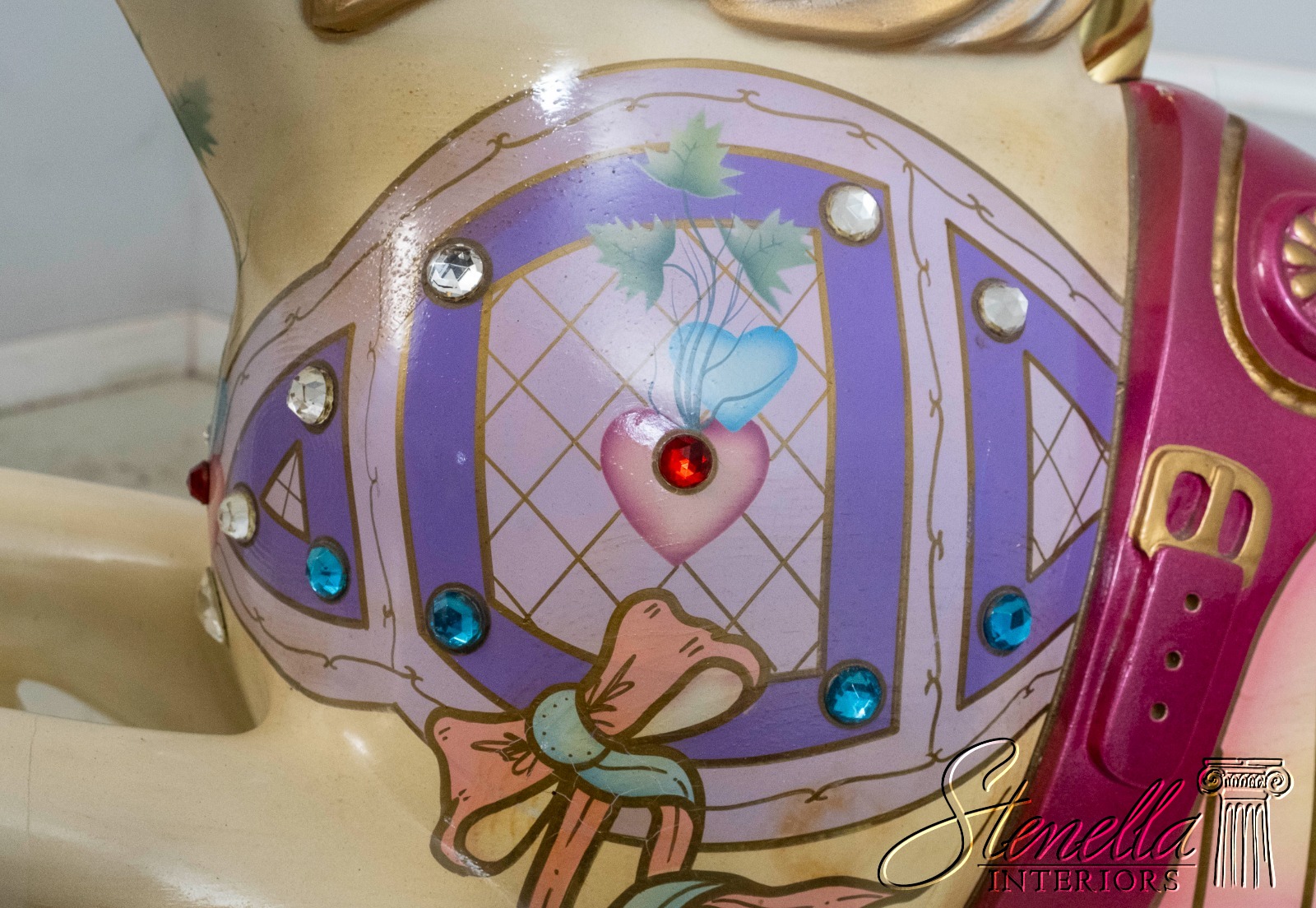 Details: Fine Carved Details High Quality Construction Nice Inlay Work Throughout Traditional Style Solid Brass Hardware Stunning Hand Crafted Rocking Horse Hand Painted, Signed Glass Eyes & Jewels Offered @ Fraction Original Retail Cost