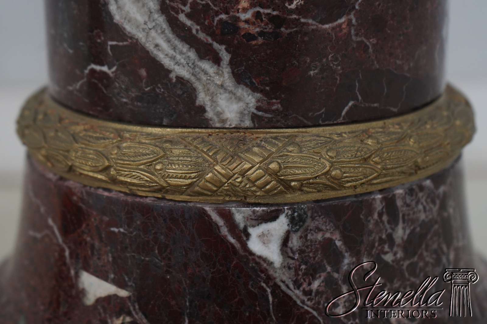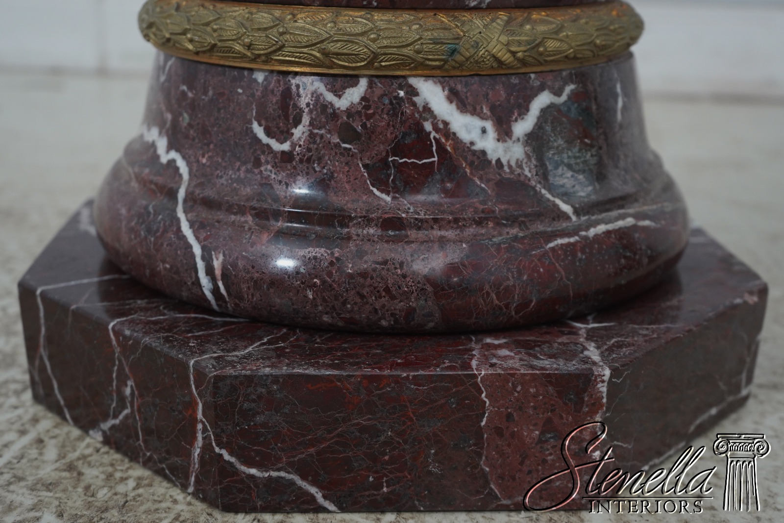 Details: Stunning Reddish Color Marble High Quality Construction Each Pedestal Breaks Down Into 5 Pieces Quality Bronze Trim Pedestals have slightly different heights