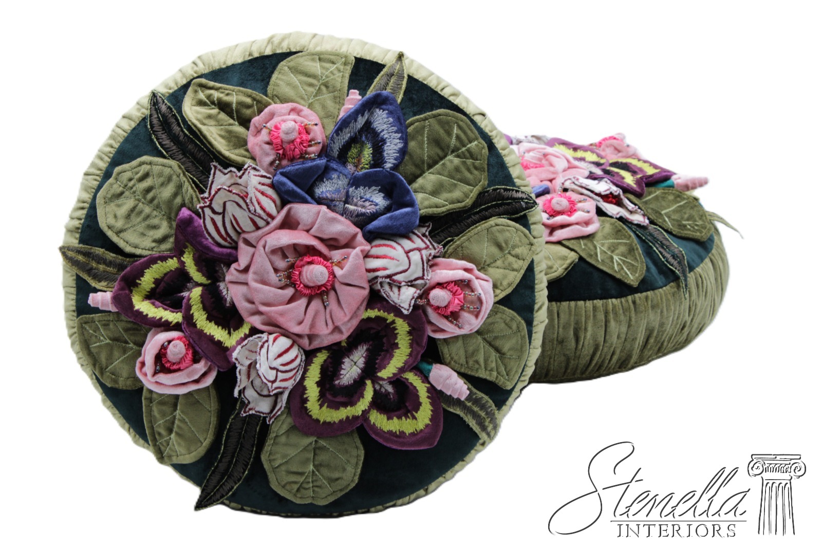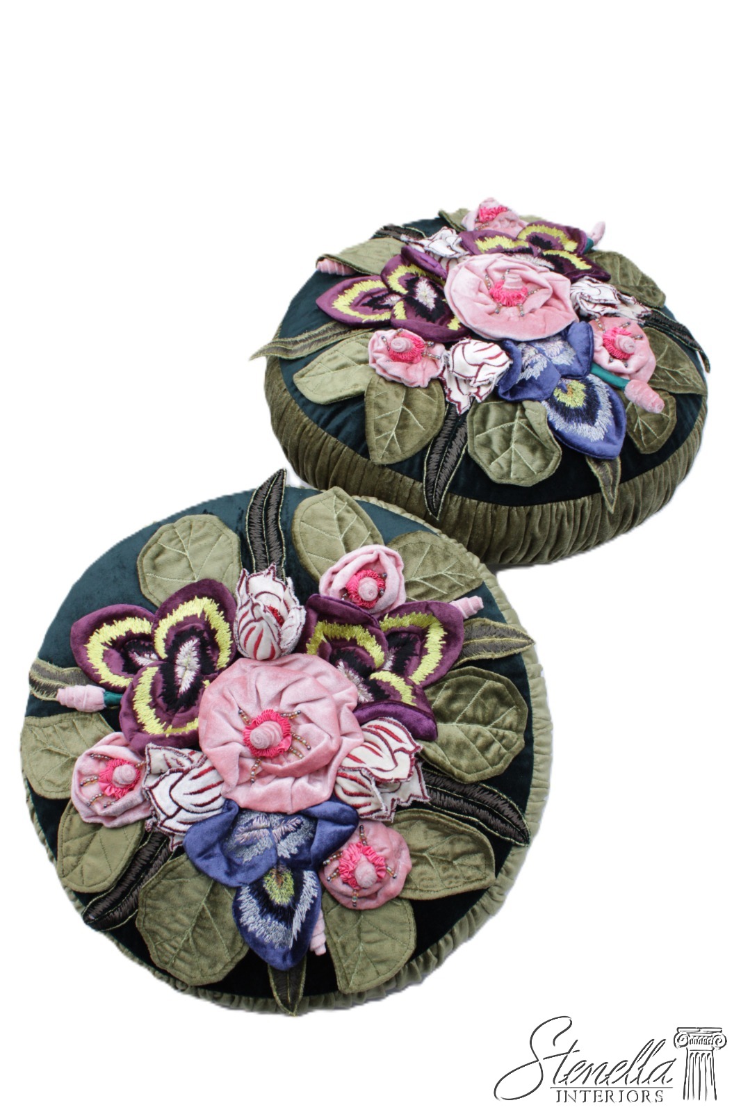 F72379: Pair MACKENZIE CHILDS Round Whimsical Pillows