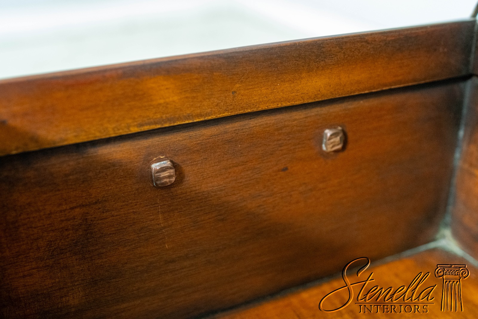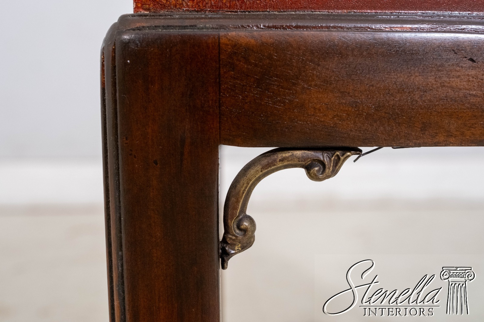 Details: Chinese Chippendale Style Quality Construction Stunning Crackle Leather Wrapped Chinoiserie Decorated Finish Mahogany Legs Solid Brass Hardware Un-Marked As To Manufacture