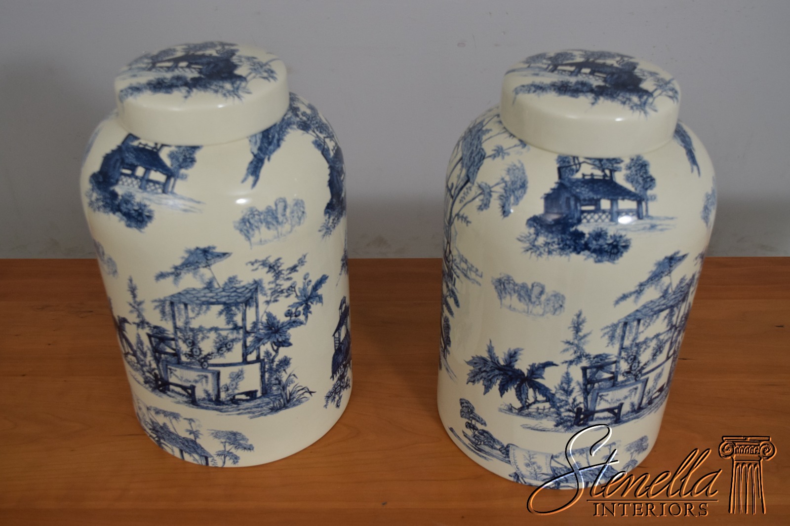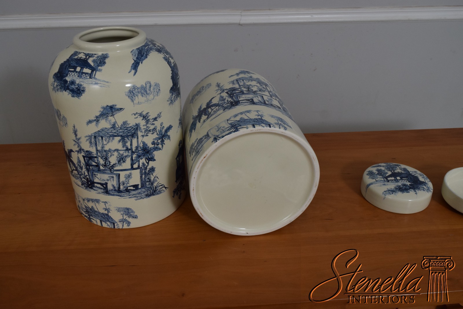 Details: Quality Construction Large Impressive Jars Stunning Decorator Jars White Toile Design Blue & White Porcelain