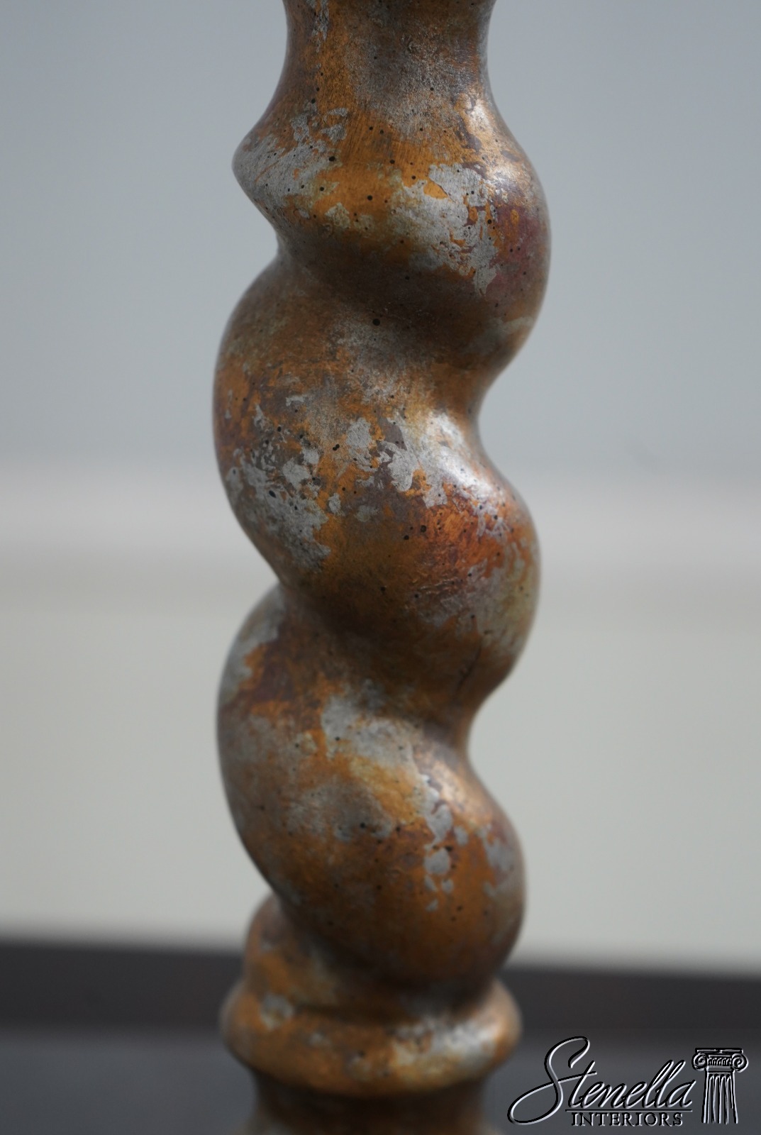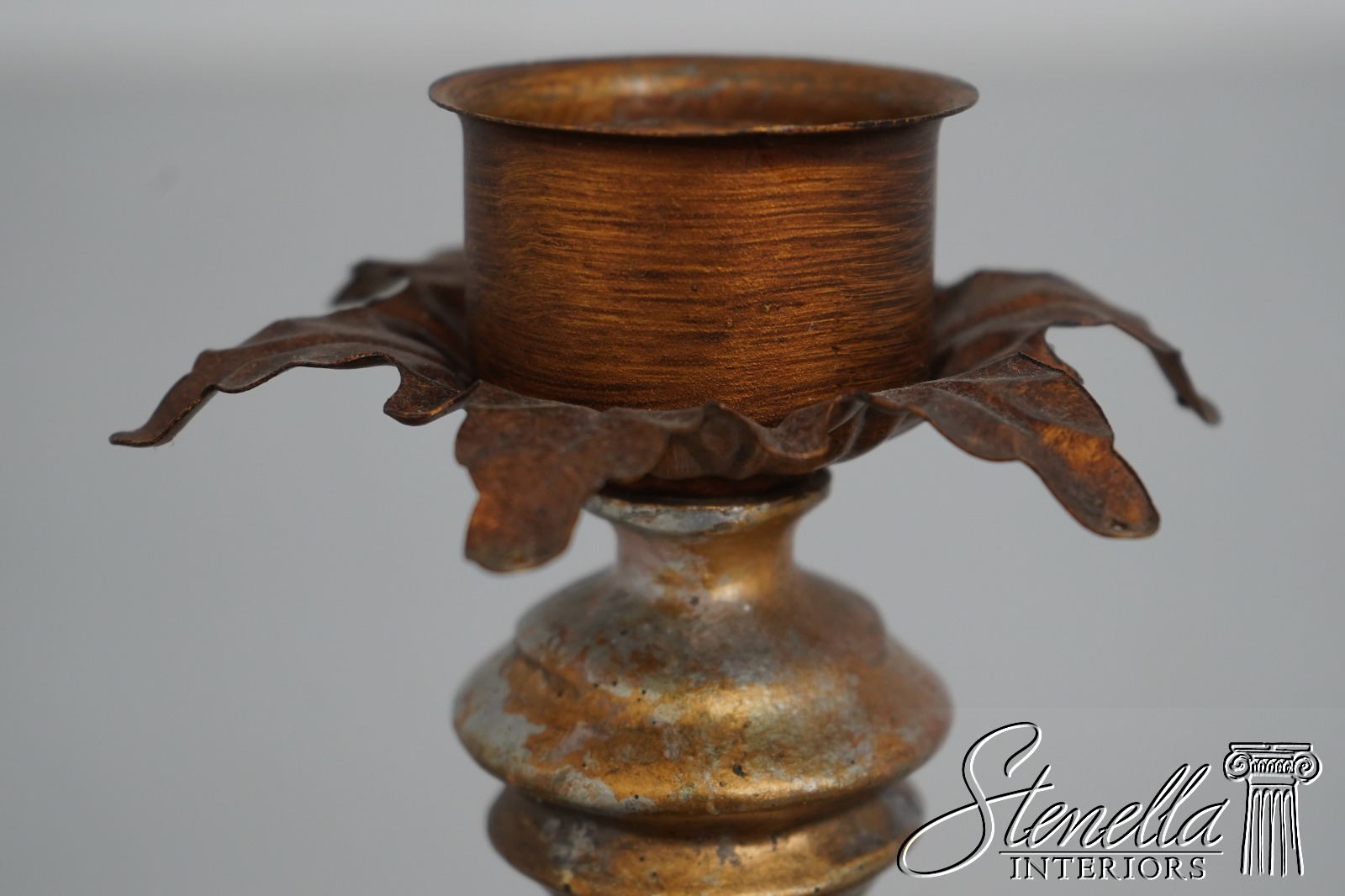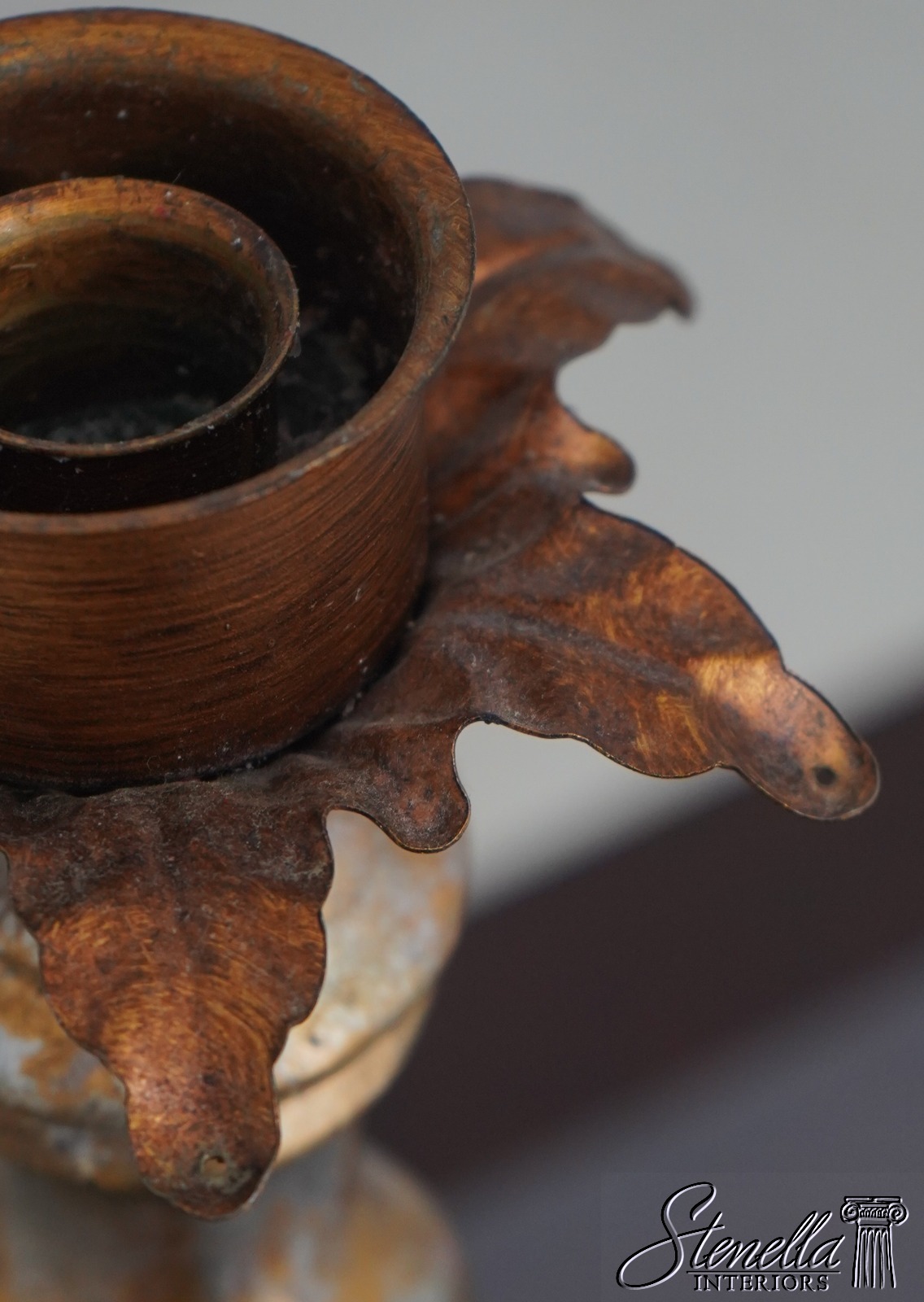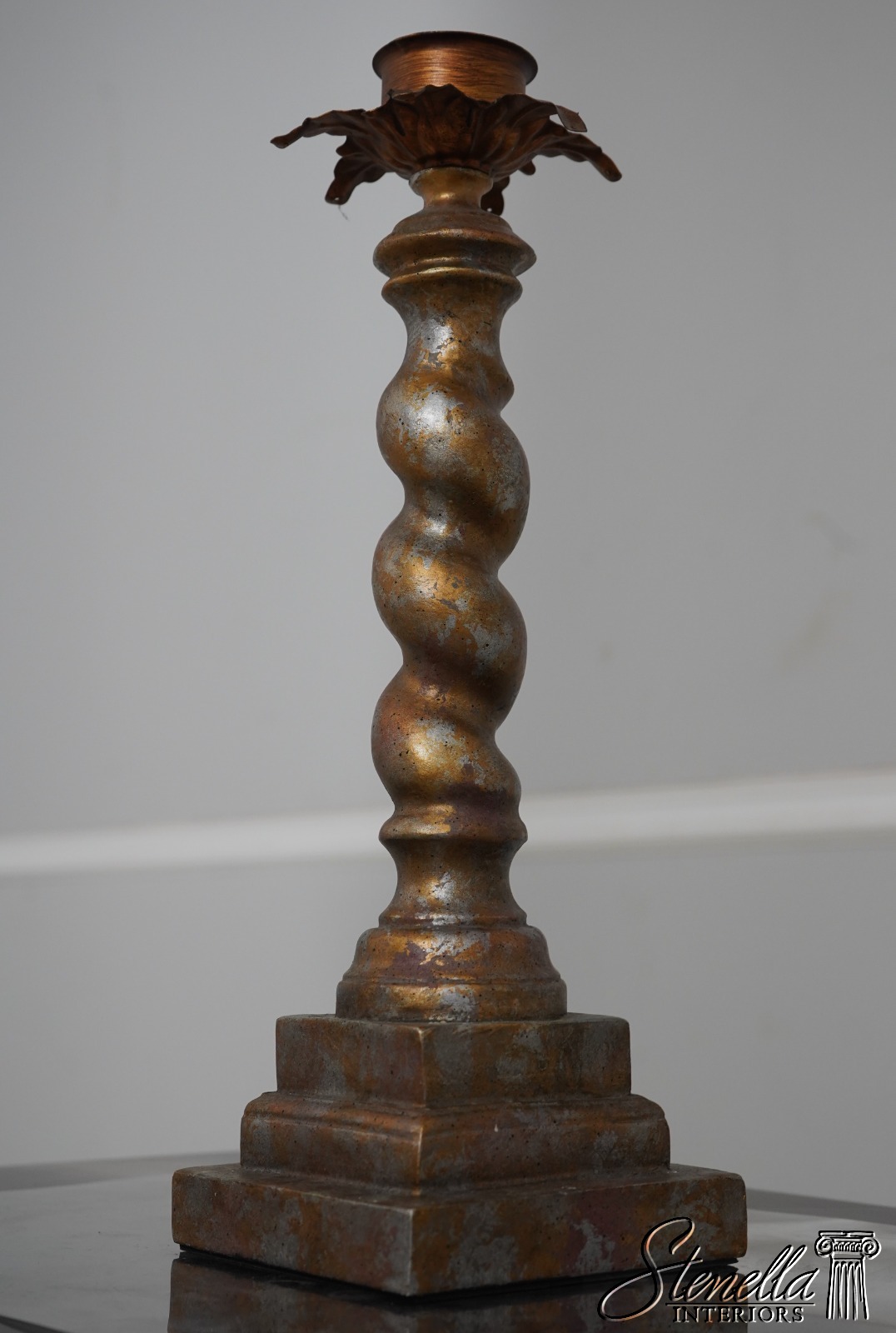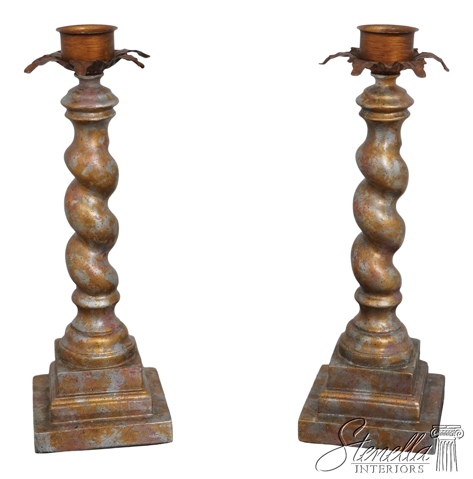 LF67502: Pair Spiral Twist Candle Sticks w. Tole Palm Leaves