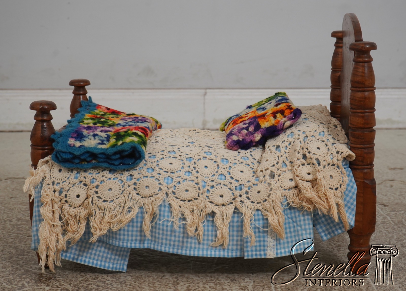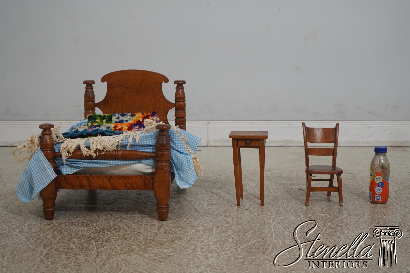 LF68642: Antique Tiger Maple 3 Piece Doll Size Country Bed & Furniture
