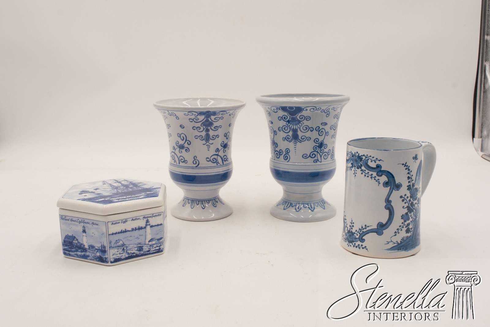 LF68745: Set of 4 Various ROYAL DELFT Porcelain Items C-30 Urns, C-58 Mug, hexagon Box