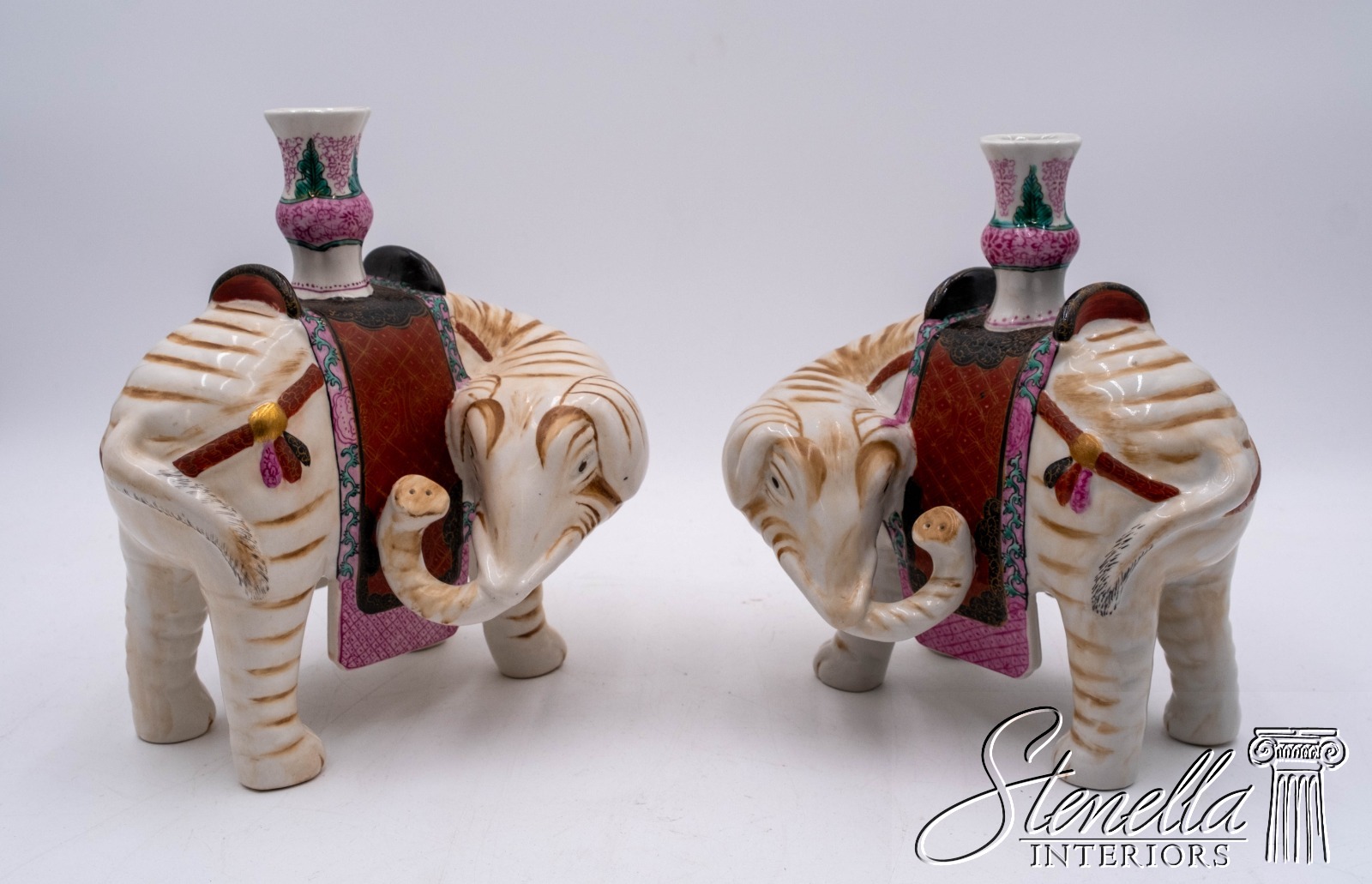 LF68810: Pair of Winterthur Porcelain Elephant Candle Holders