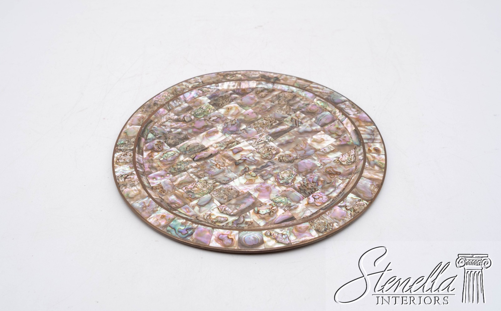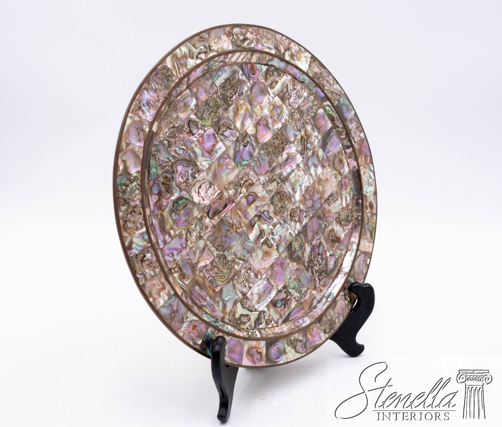 LF68813: Abalone Shell Inlay Round Brass Tray Platter Art
