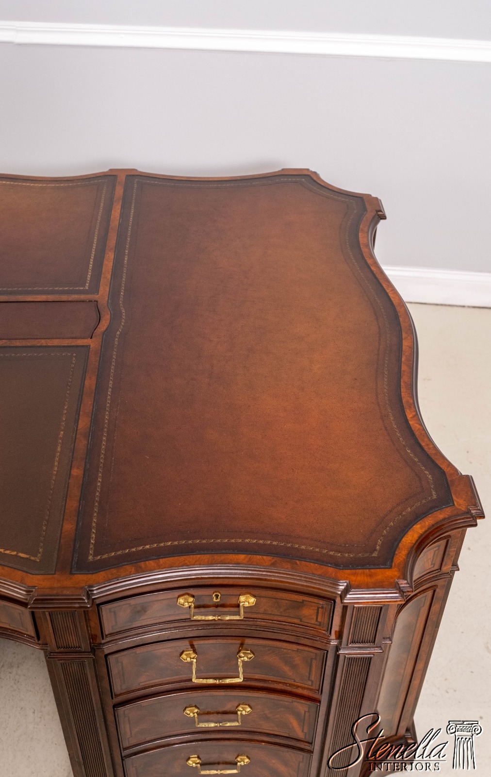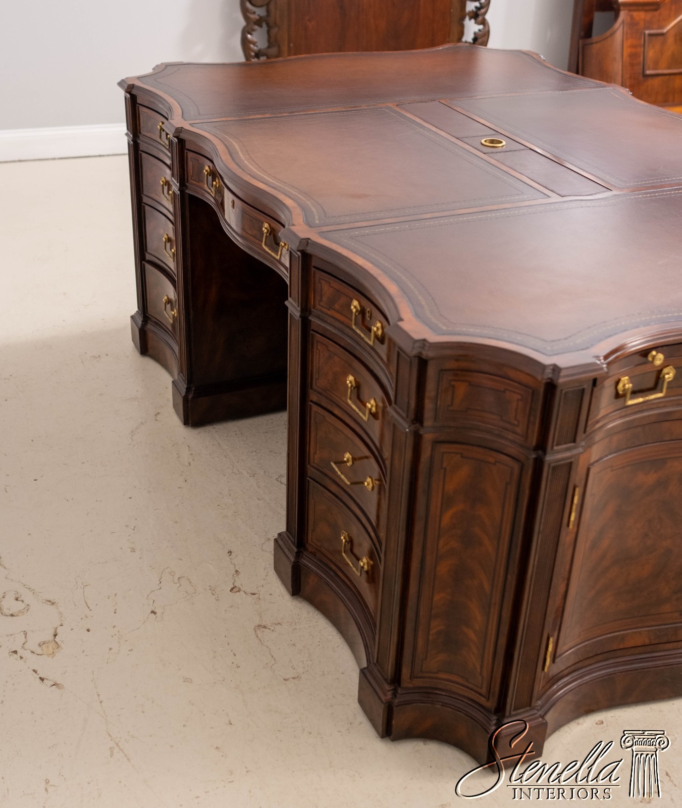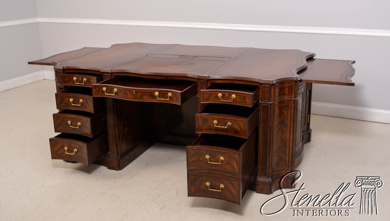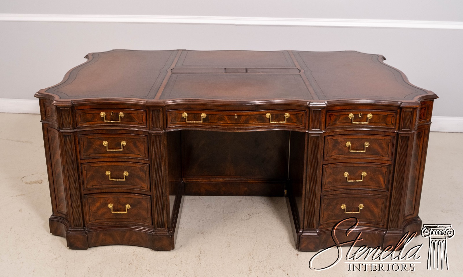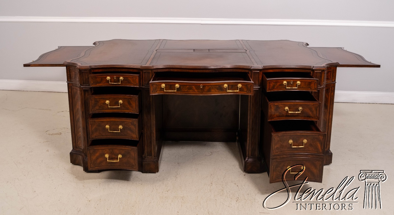67295: THEODORE ALEXANDER English Style Mahogany Leather Top Partners Desk