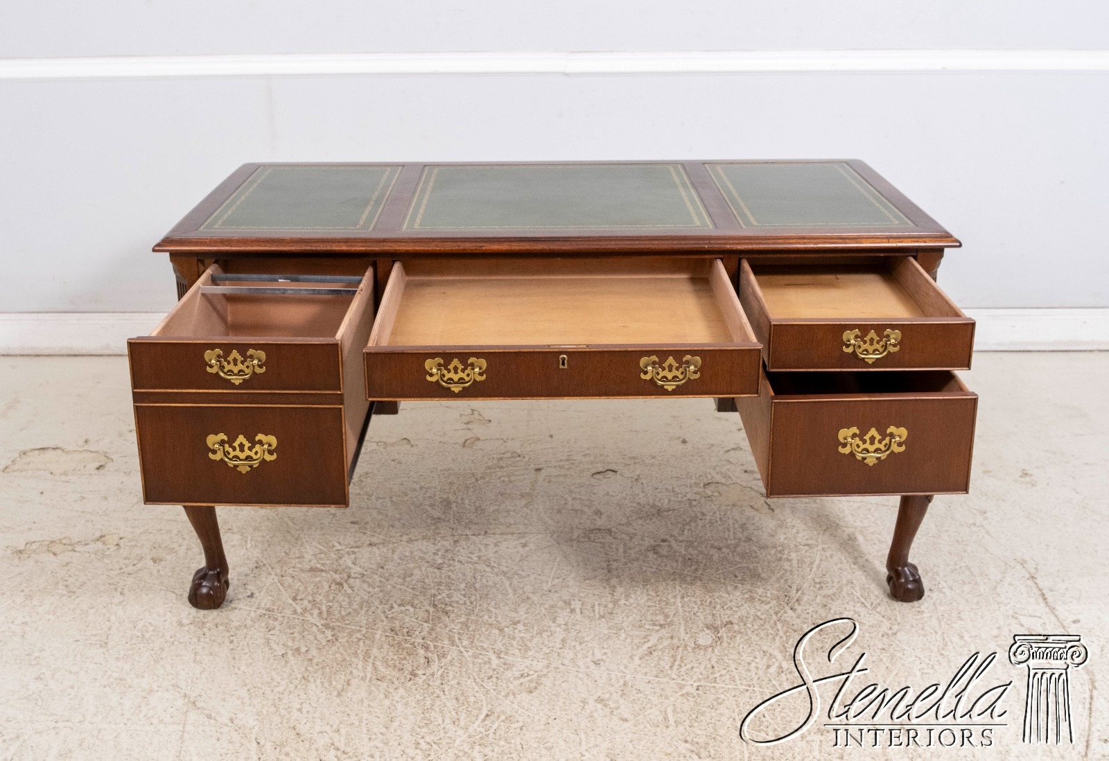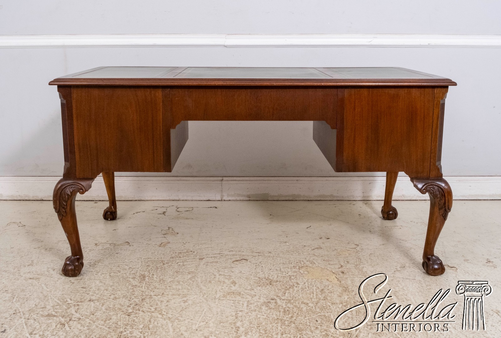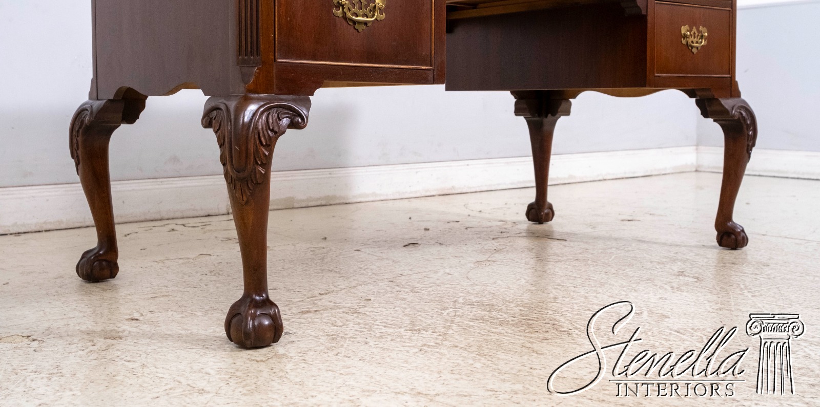 Details: Mahogany Ball & Claw Feet Dovetailed Drawer Construction Fine Carved Details Quality Construction Deep File Drawer Nice Tooled Leather Top Chippendale Style Solid Brass Hardware Gold Embossing On Leather Key Locking w. Key Offered @ Fraction Original Retail Cost