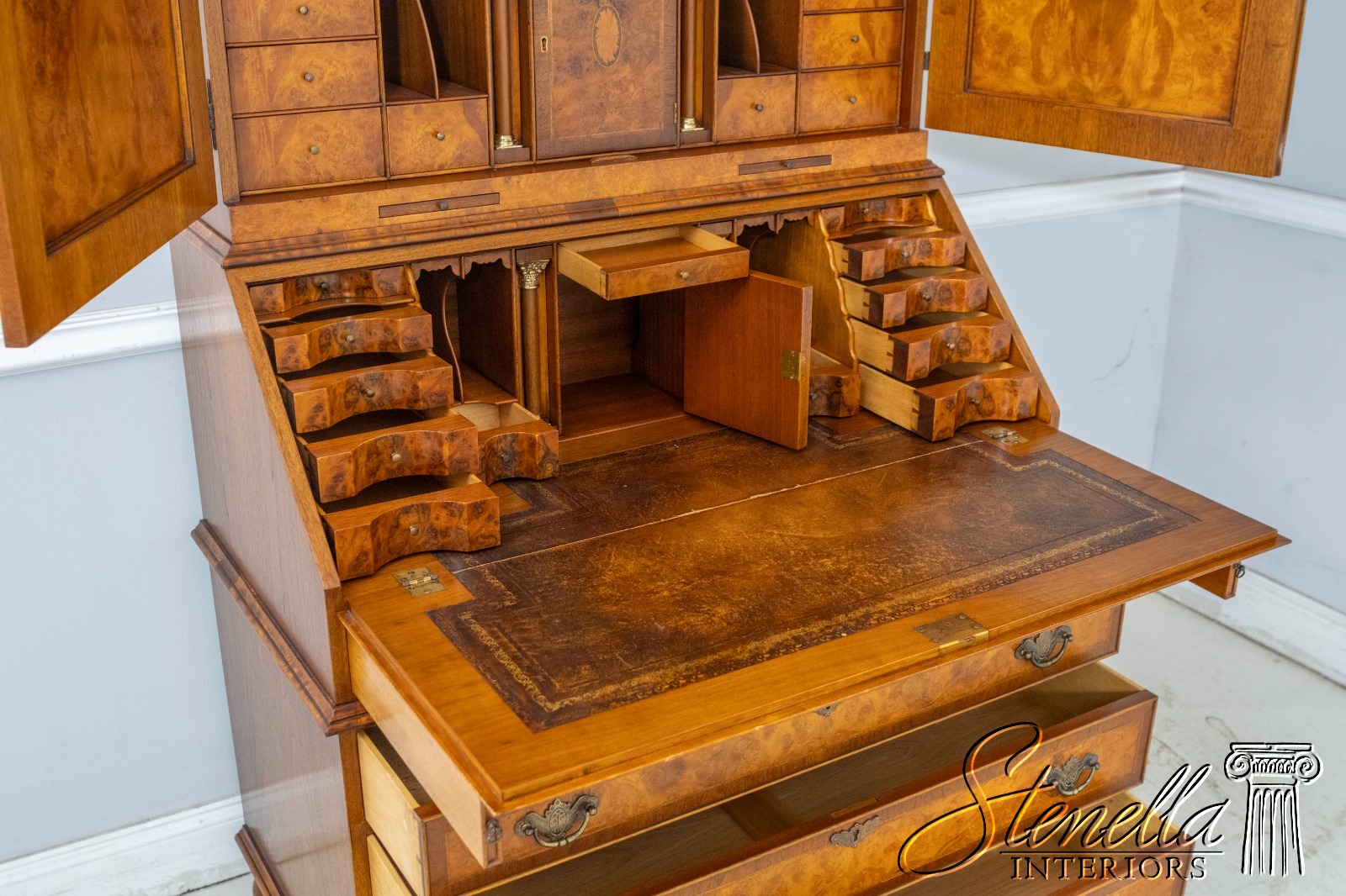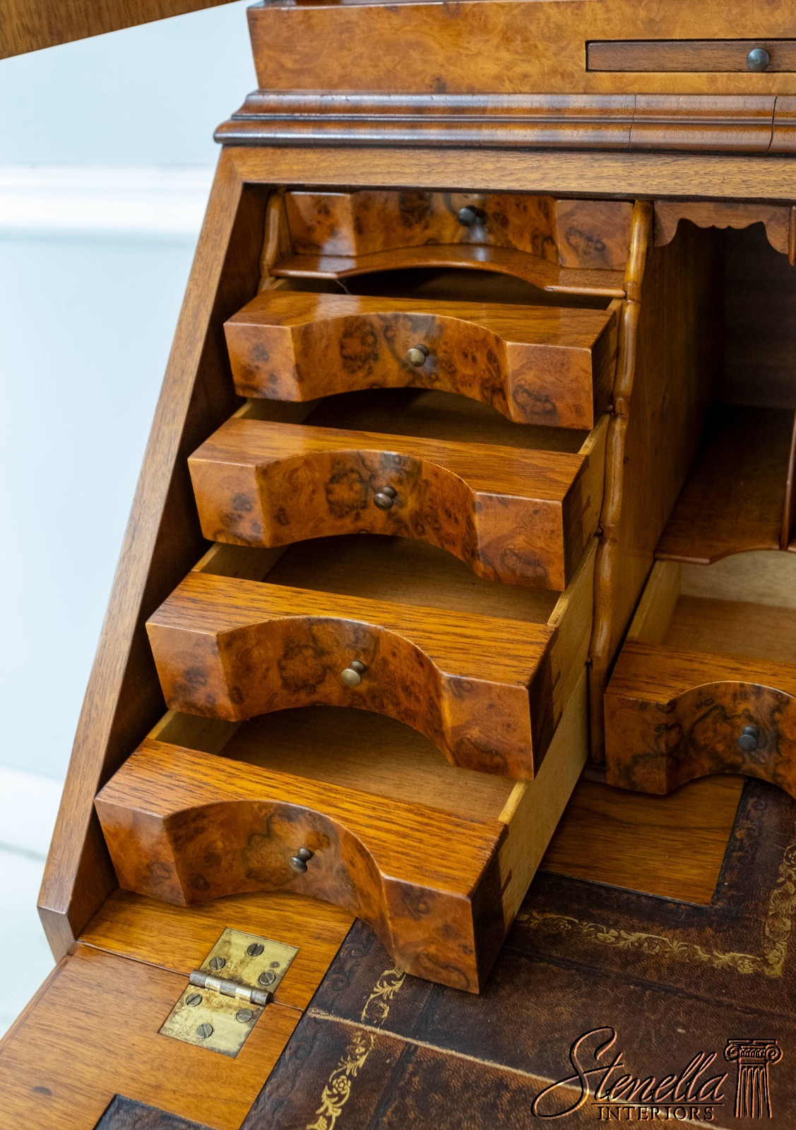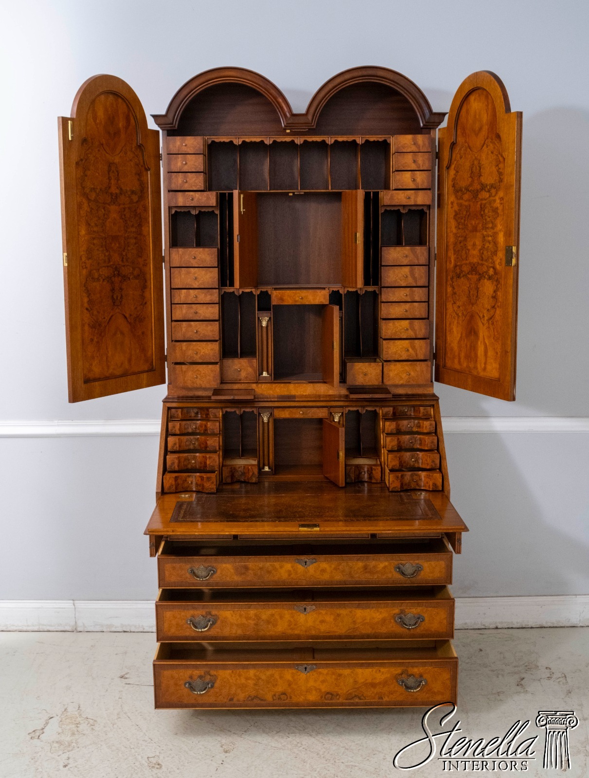 Details: 2 Piece Construction Hand Dovetailed Drawer Construction Bun Feet High Quality Construction English Style Stunning Fitted Interior Double Bonnet Top Bench Made Hand Crafted Gorgeous Burl Walnut Throughout Exceptionally Fine Craftsmanship - Copied After Early 18th Century Original