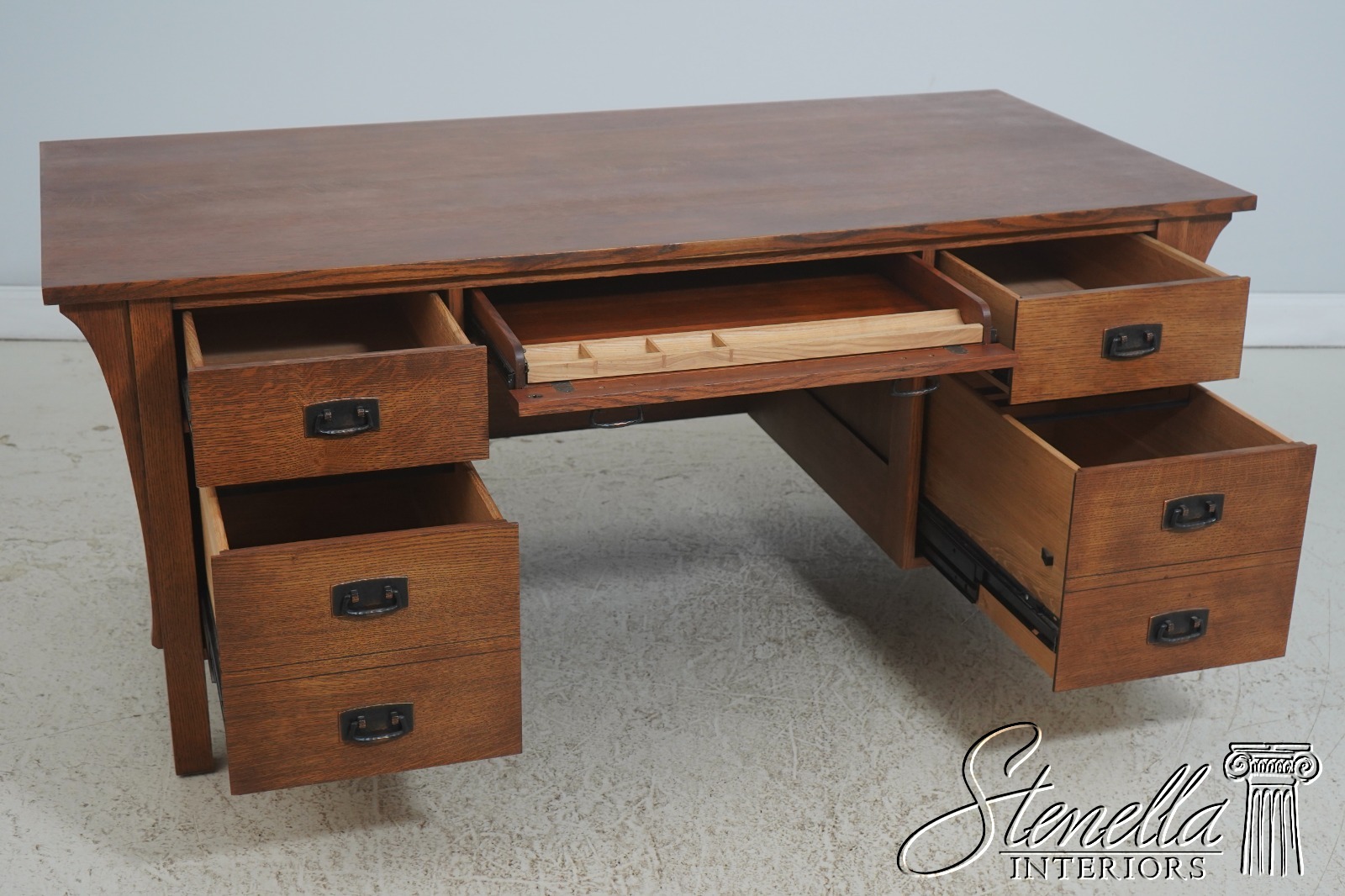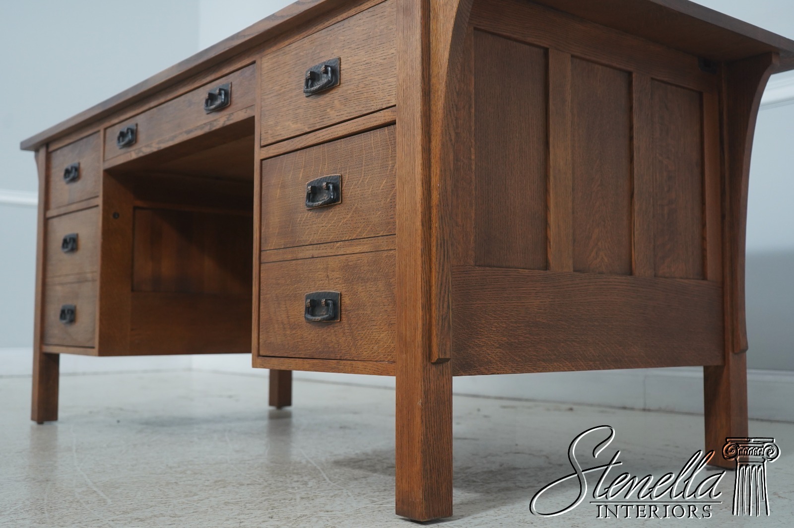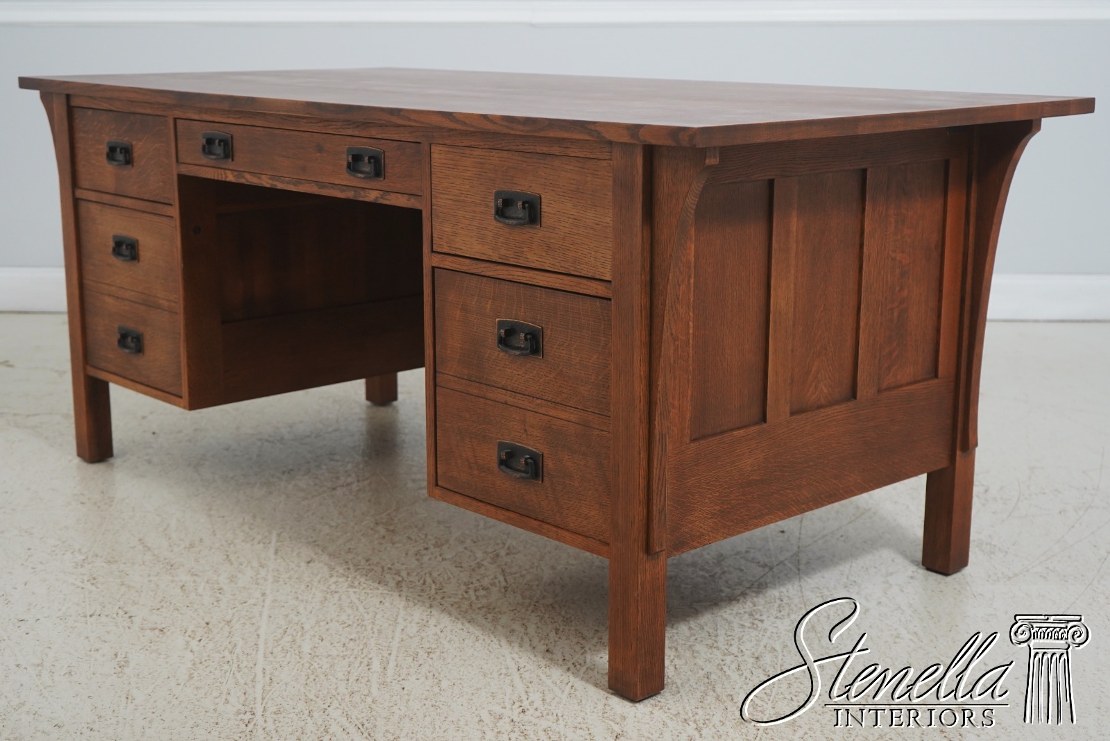 Details: Finish no.32 Dovetailed Drawer Construction High Quality Construction Large Impressive Desk Arts & Crafts Style Evenly Faded Finish Nicely Finished On All Sides