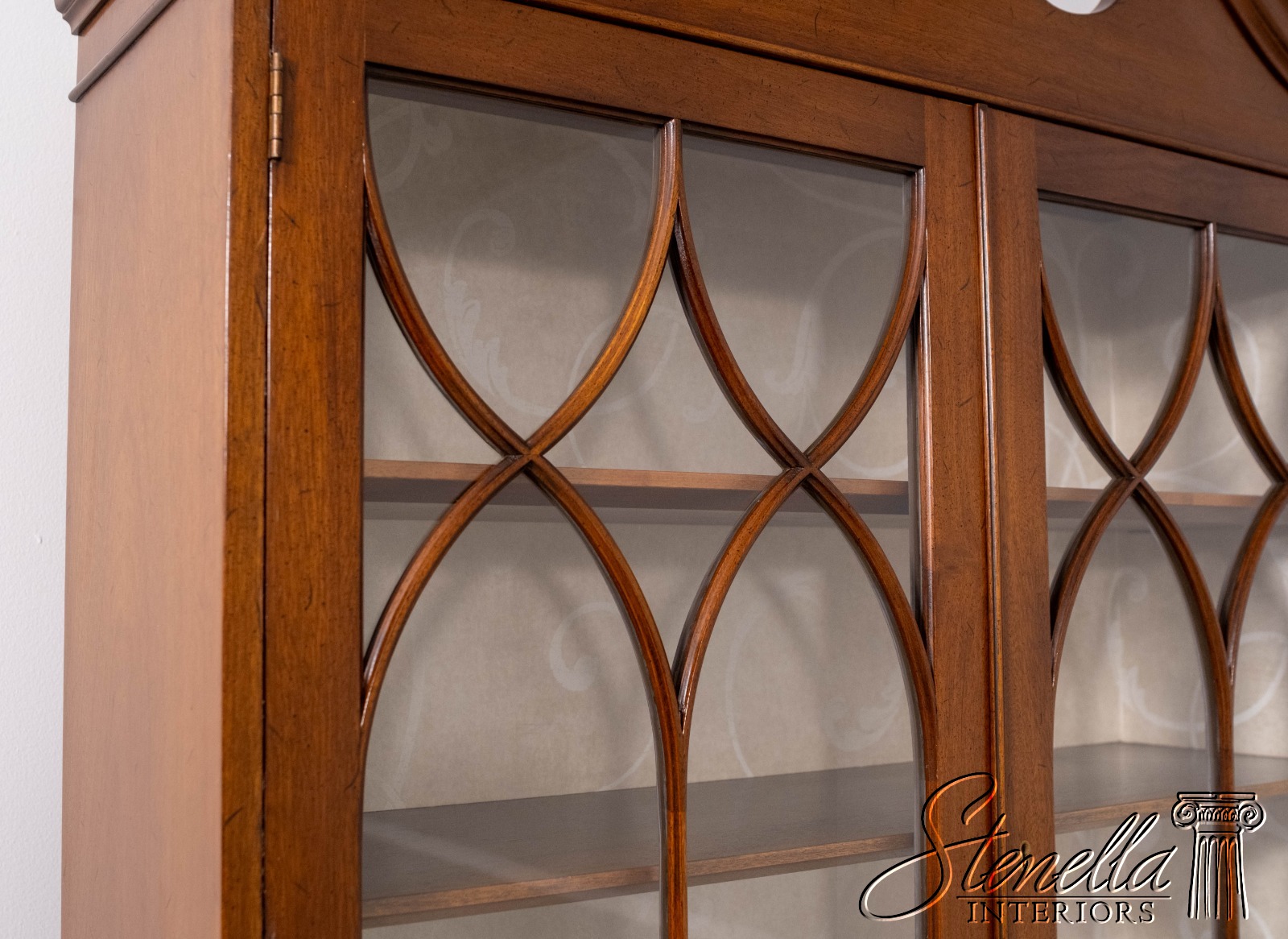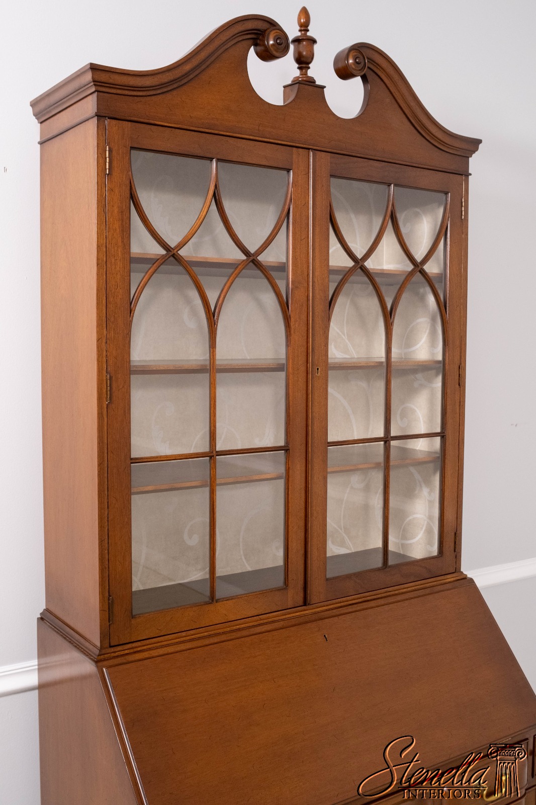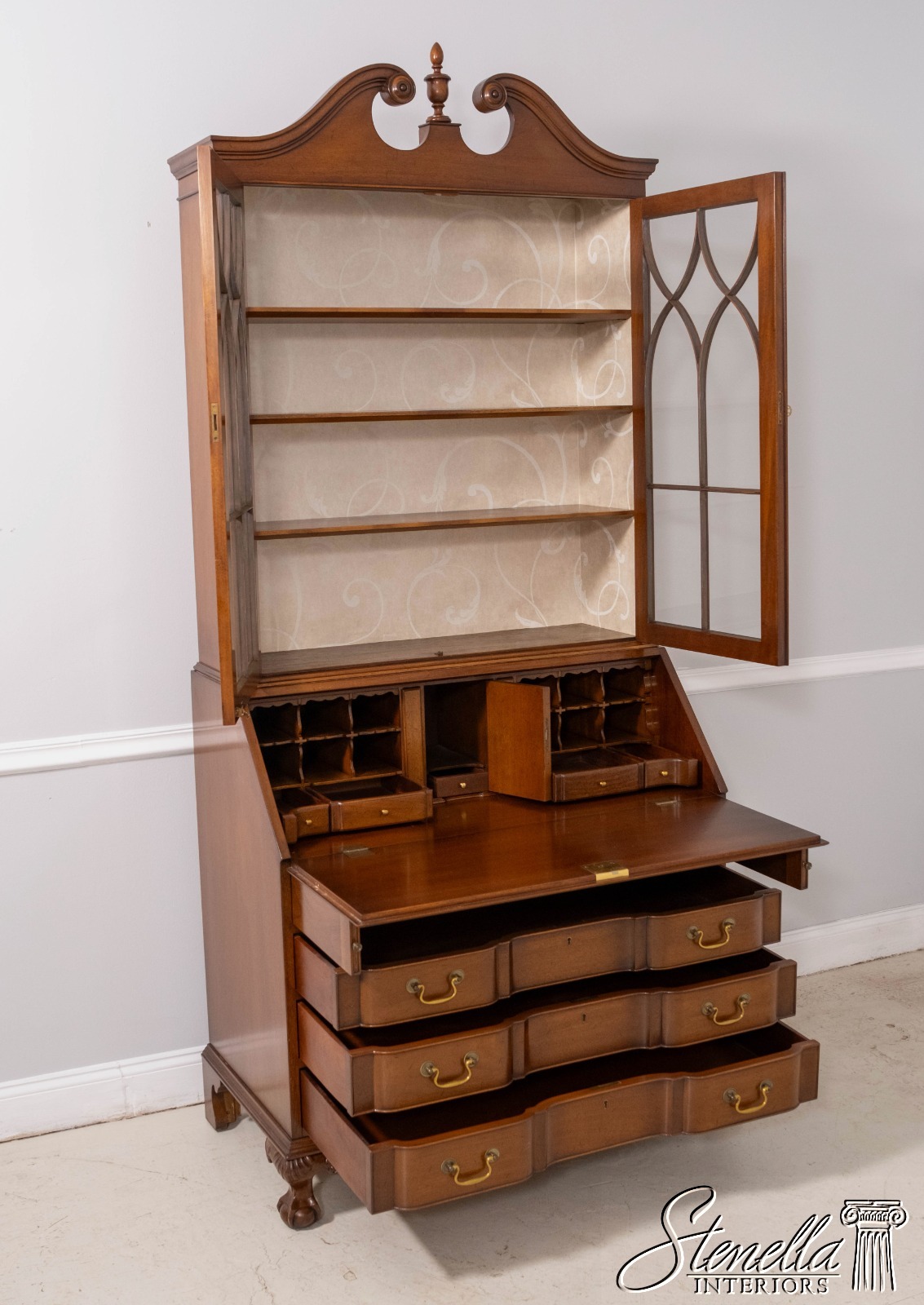 Details: Ball & Claw Feet High Quality Construction Large Impressive Desk Pediment Top w. Finial Individual Pane Glass Doors 18 C. Design Chippendale Style Traditional Style Slant Front Lid Desk Decorative Paper Lined Bookcase Top