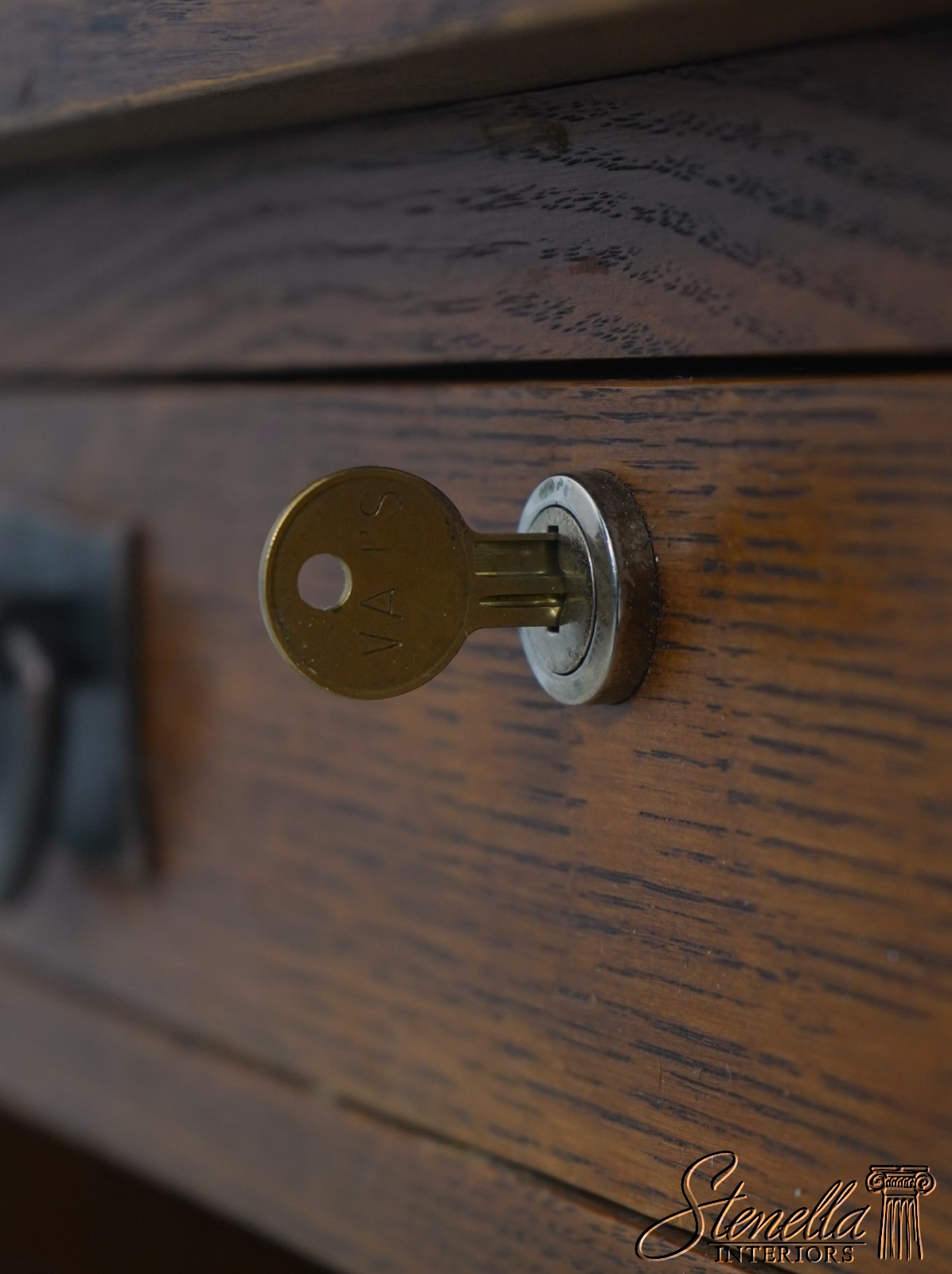 Details: Finish no.32 Key Lock Center & Bottom Drawers Dovetailed Drawer Construction High Quality Construction Deep File Drawer Arts & Crafts Style Nicely Finished On All Sides Rare Model
