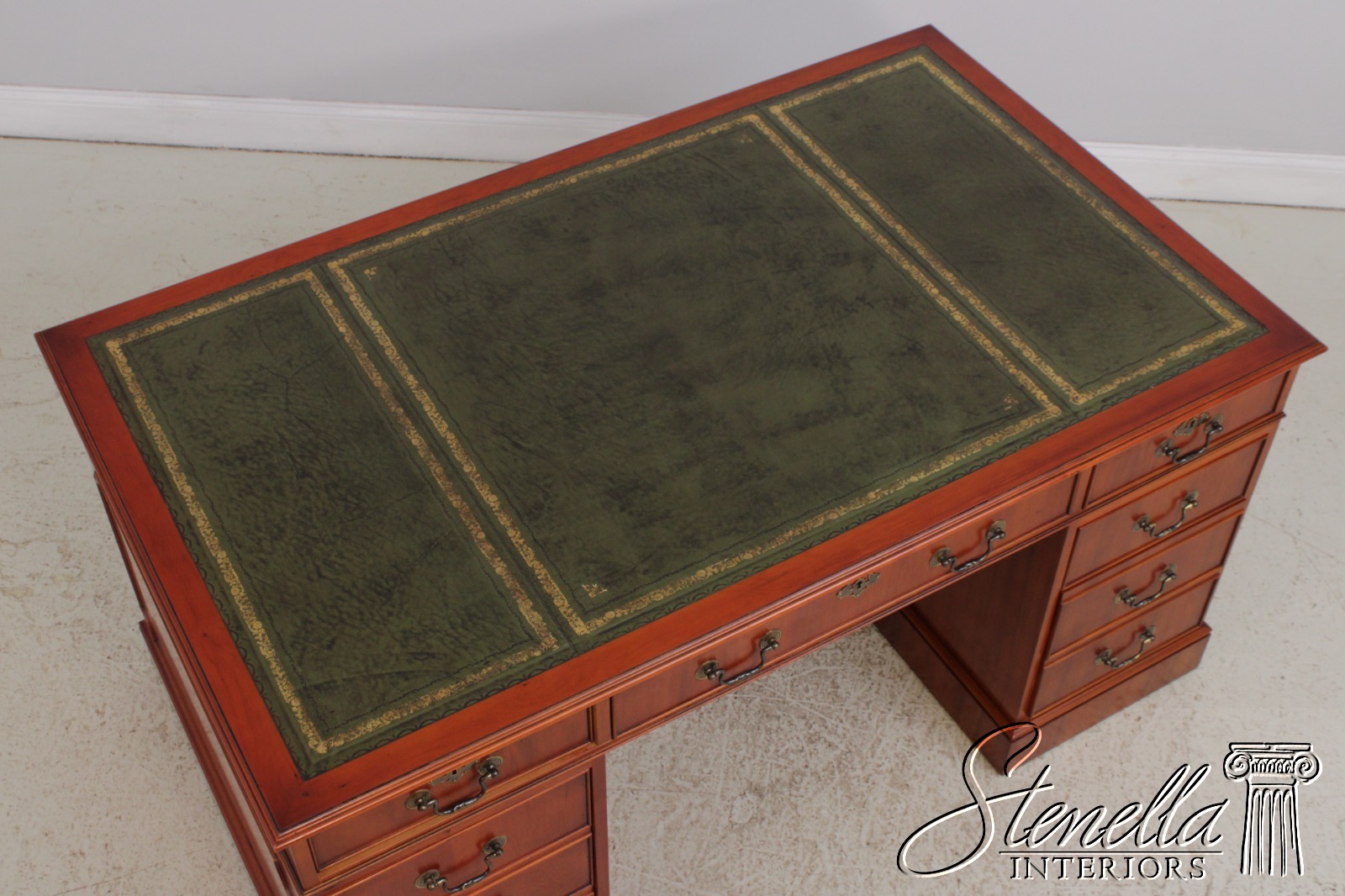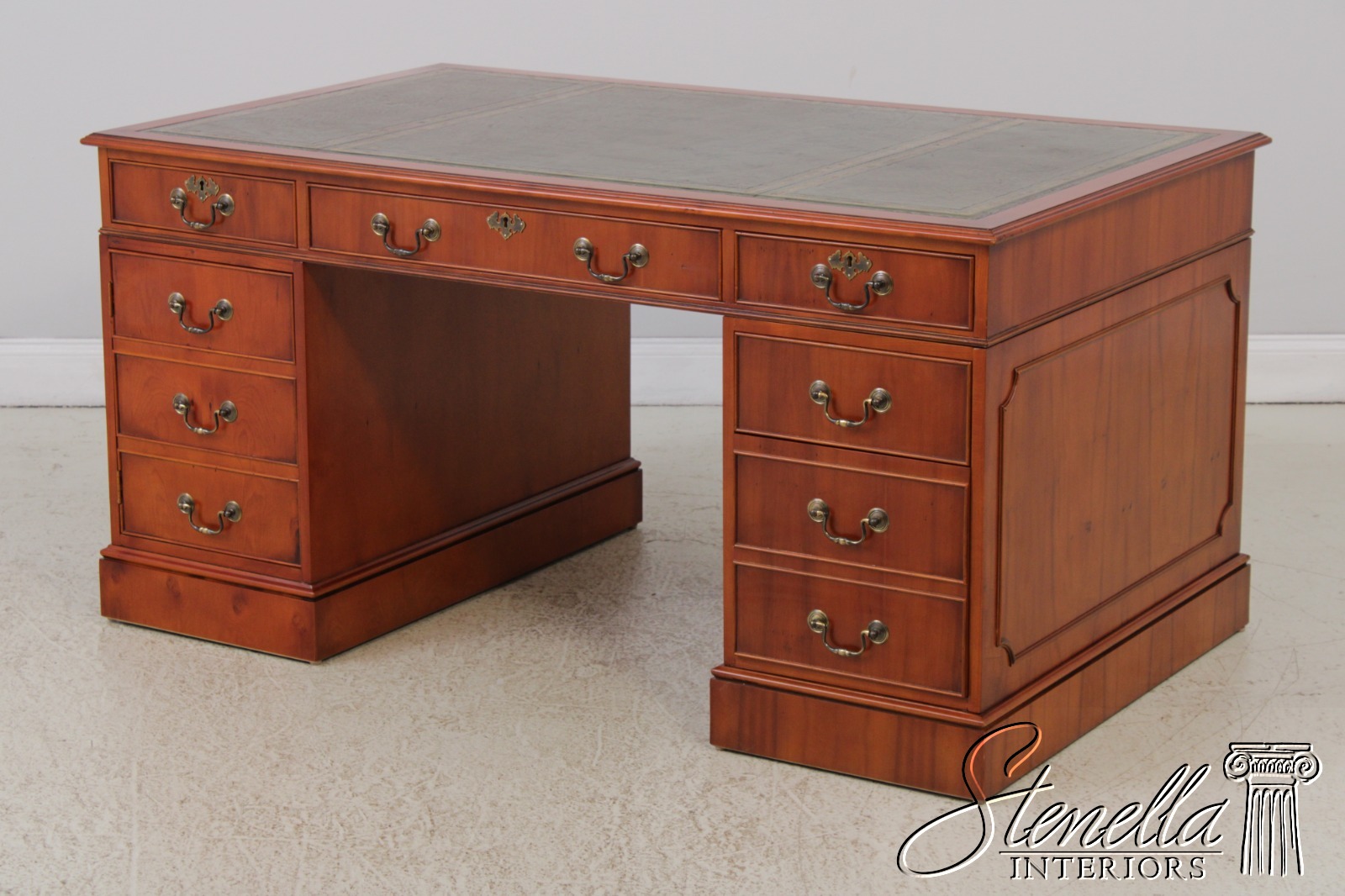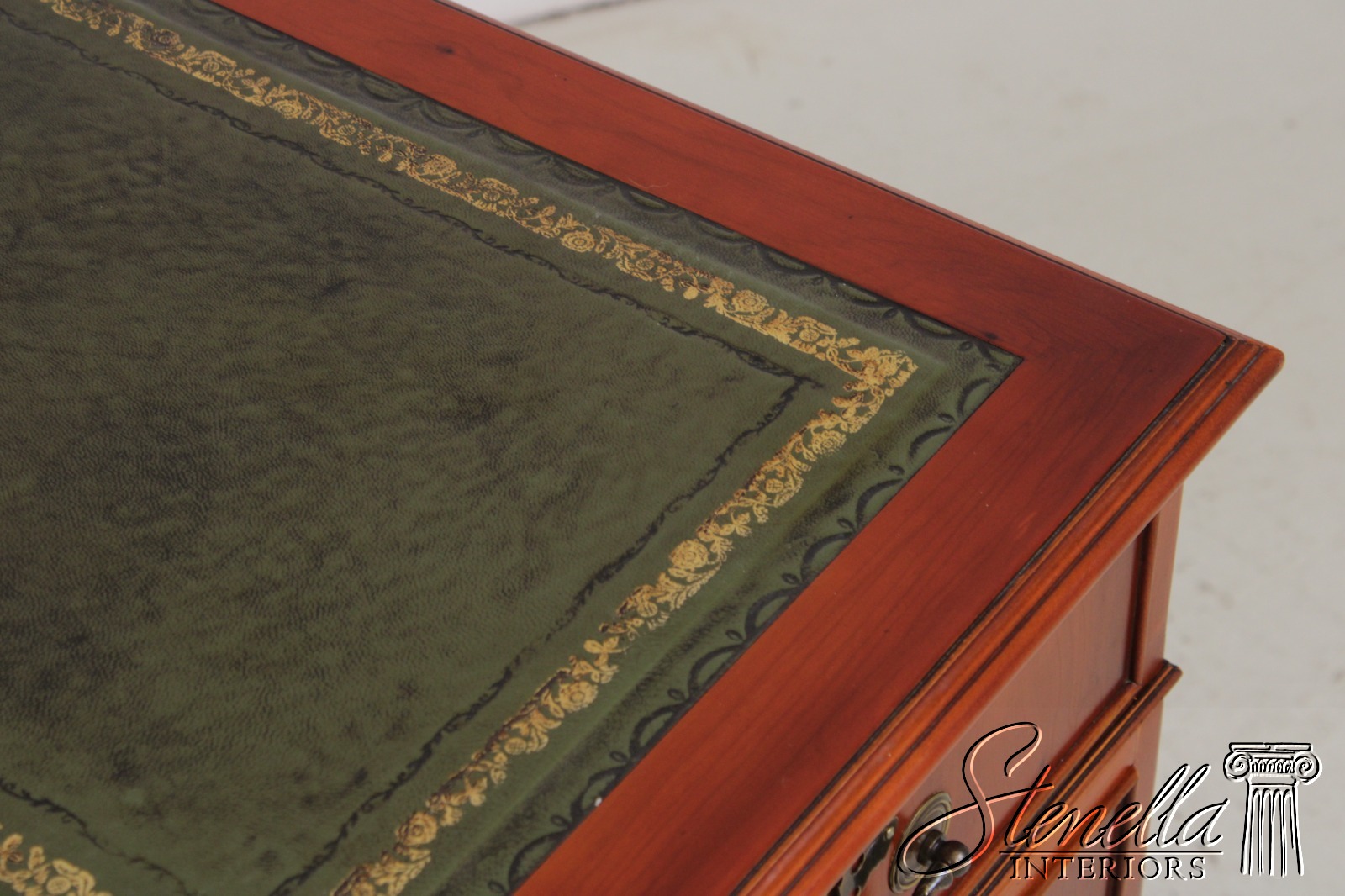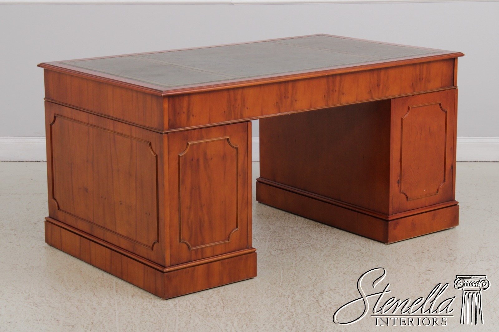 71960: BEVAN FUNNEL Green Leather Top Executive Desk