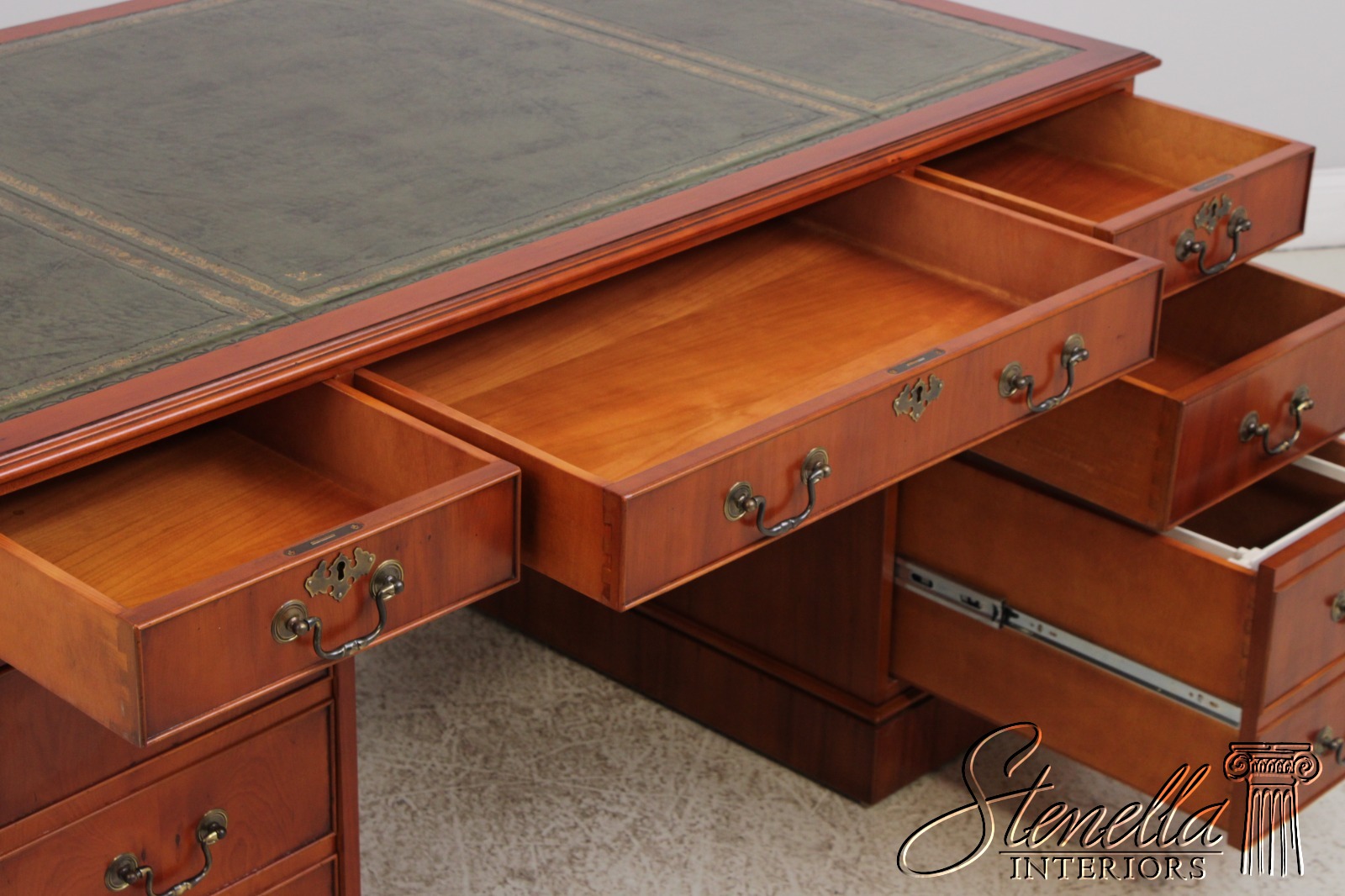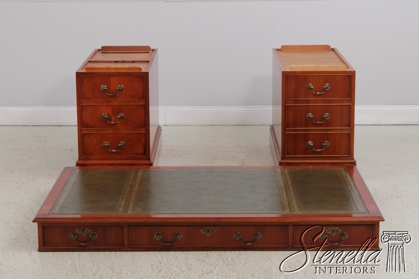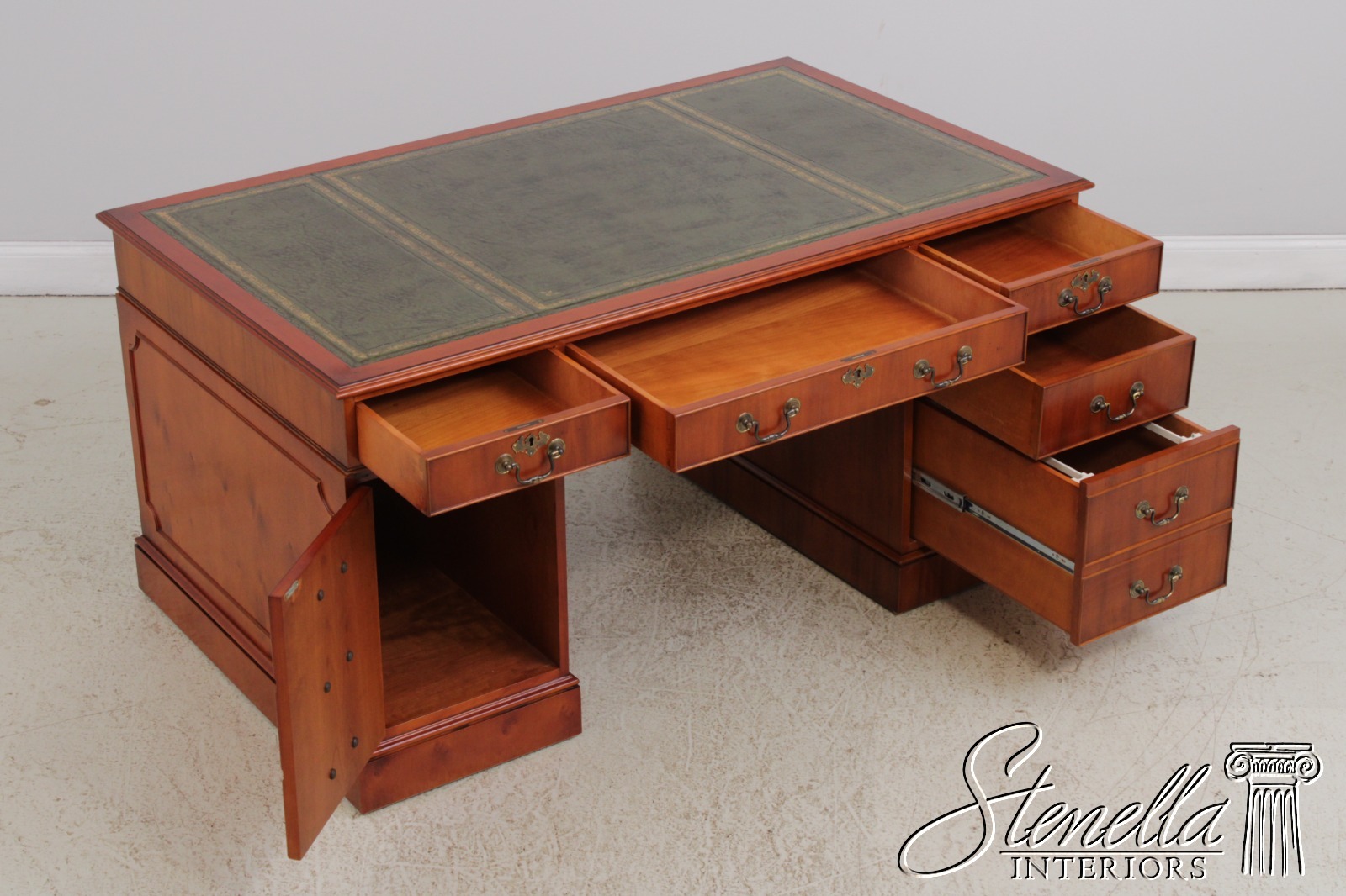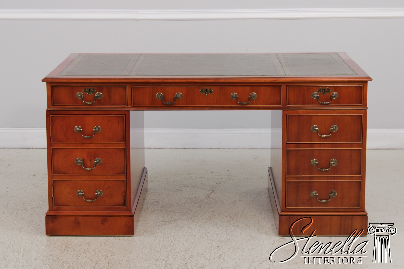 71960: BEVAN FUNNEL Green Leather Top Executive Desk