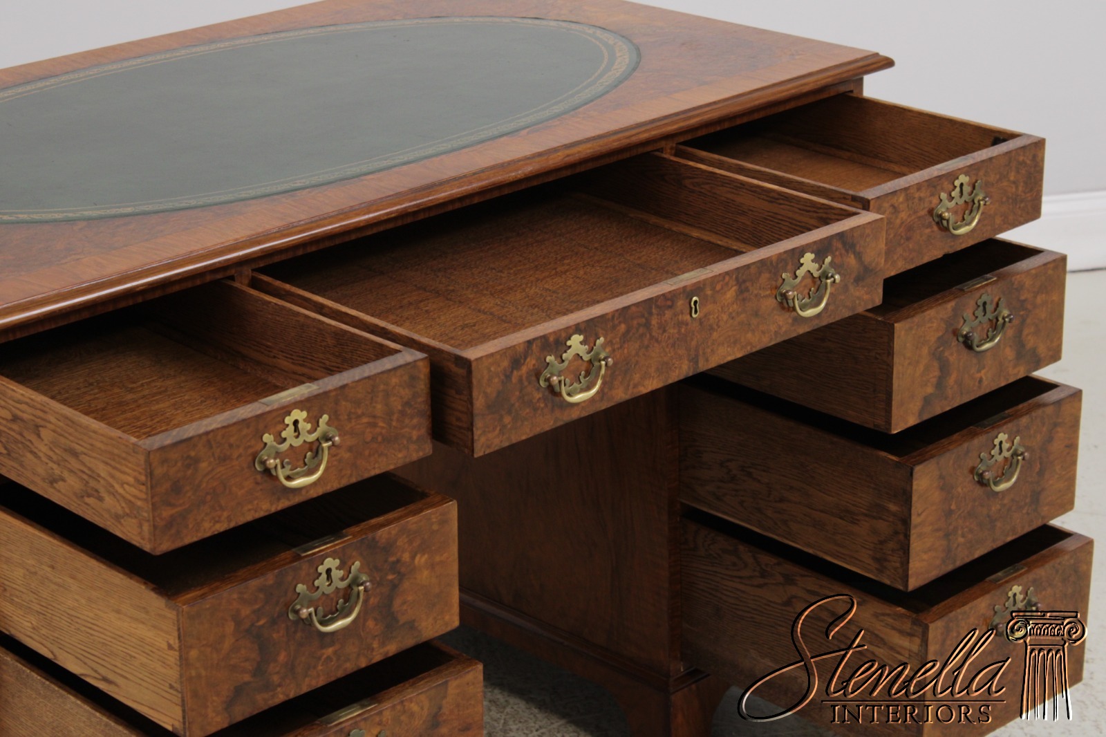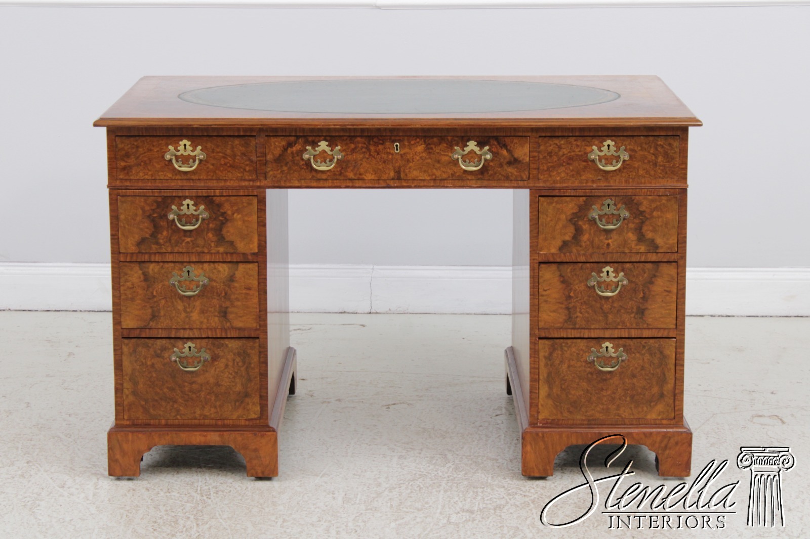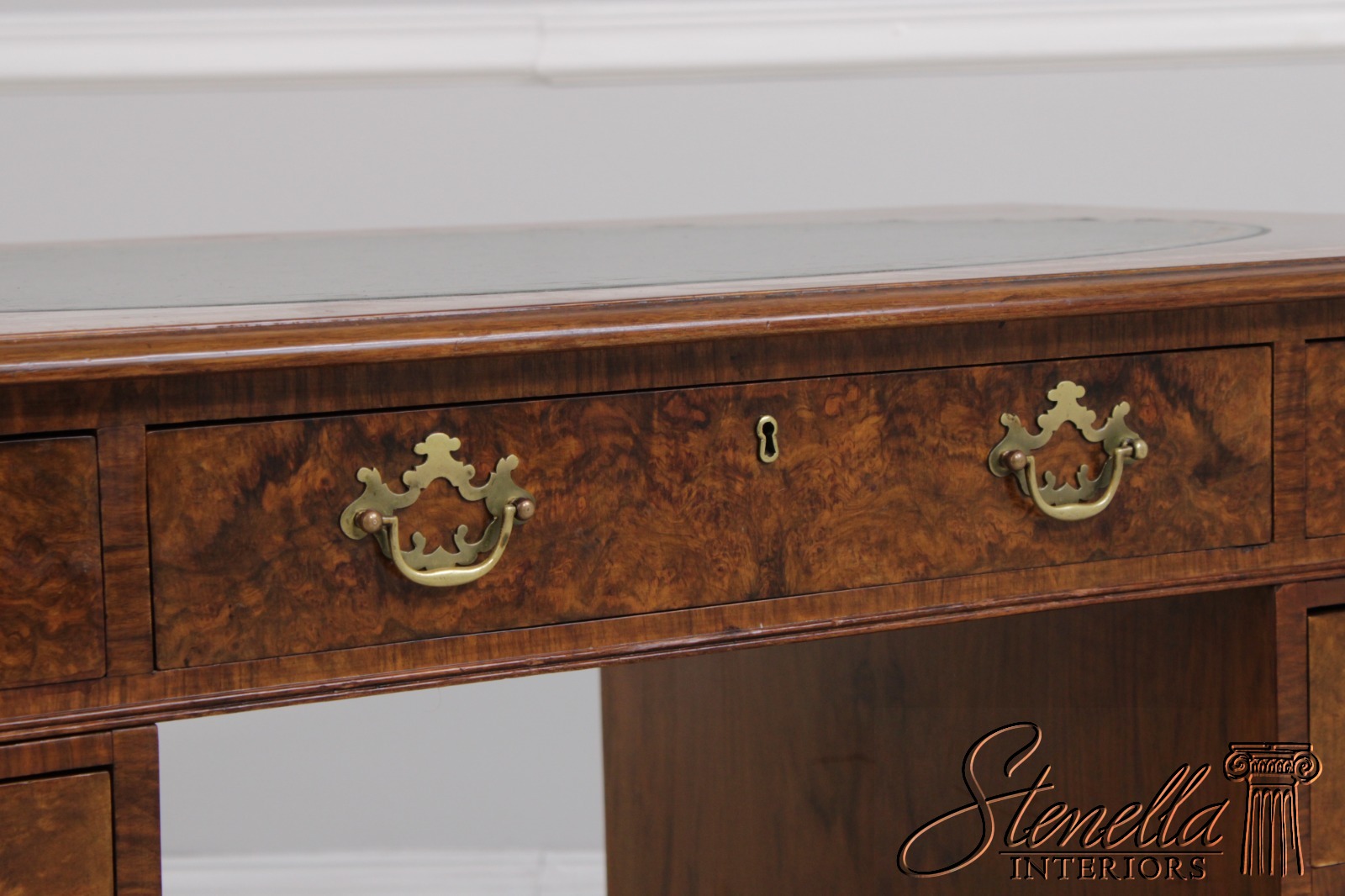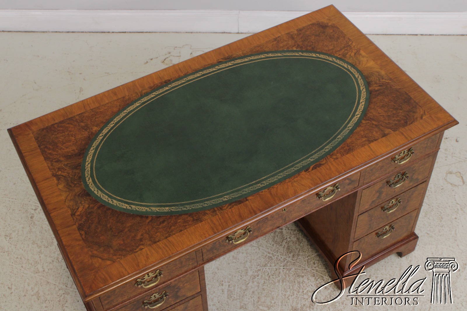 72007: English 3 Part Leather Top Burl Walnut Desk