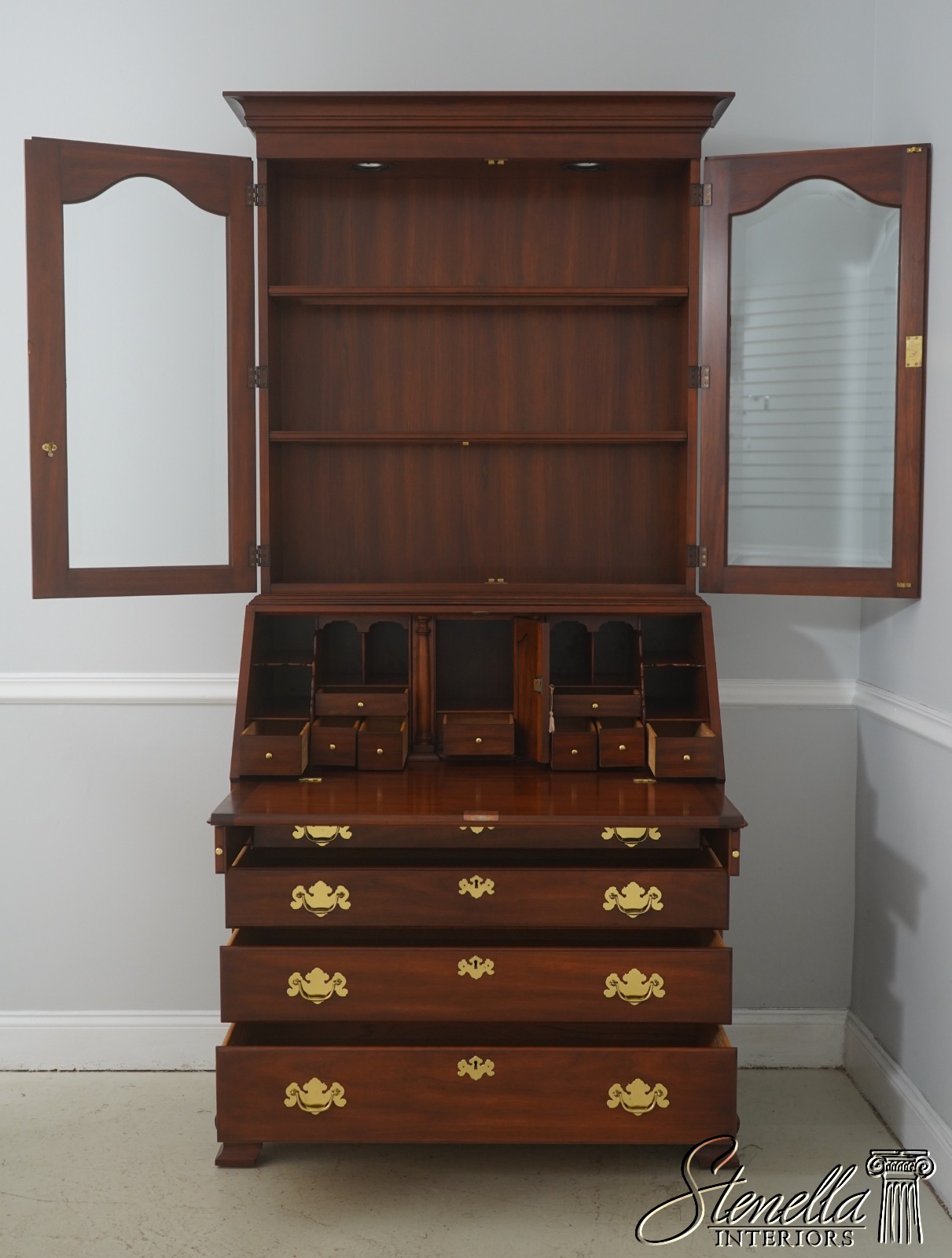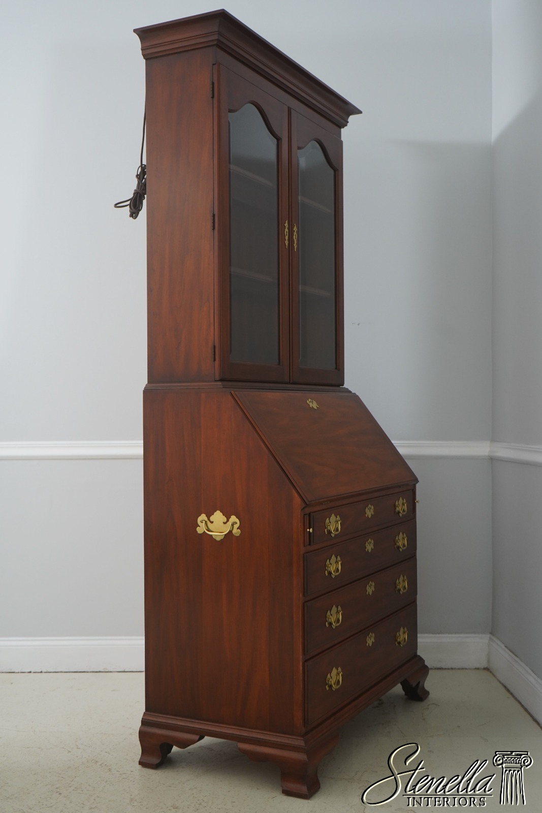 72127: HENKEL HARRIS Cherry Chippendale Style Secretary Desk