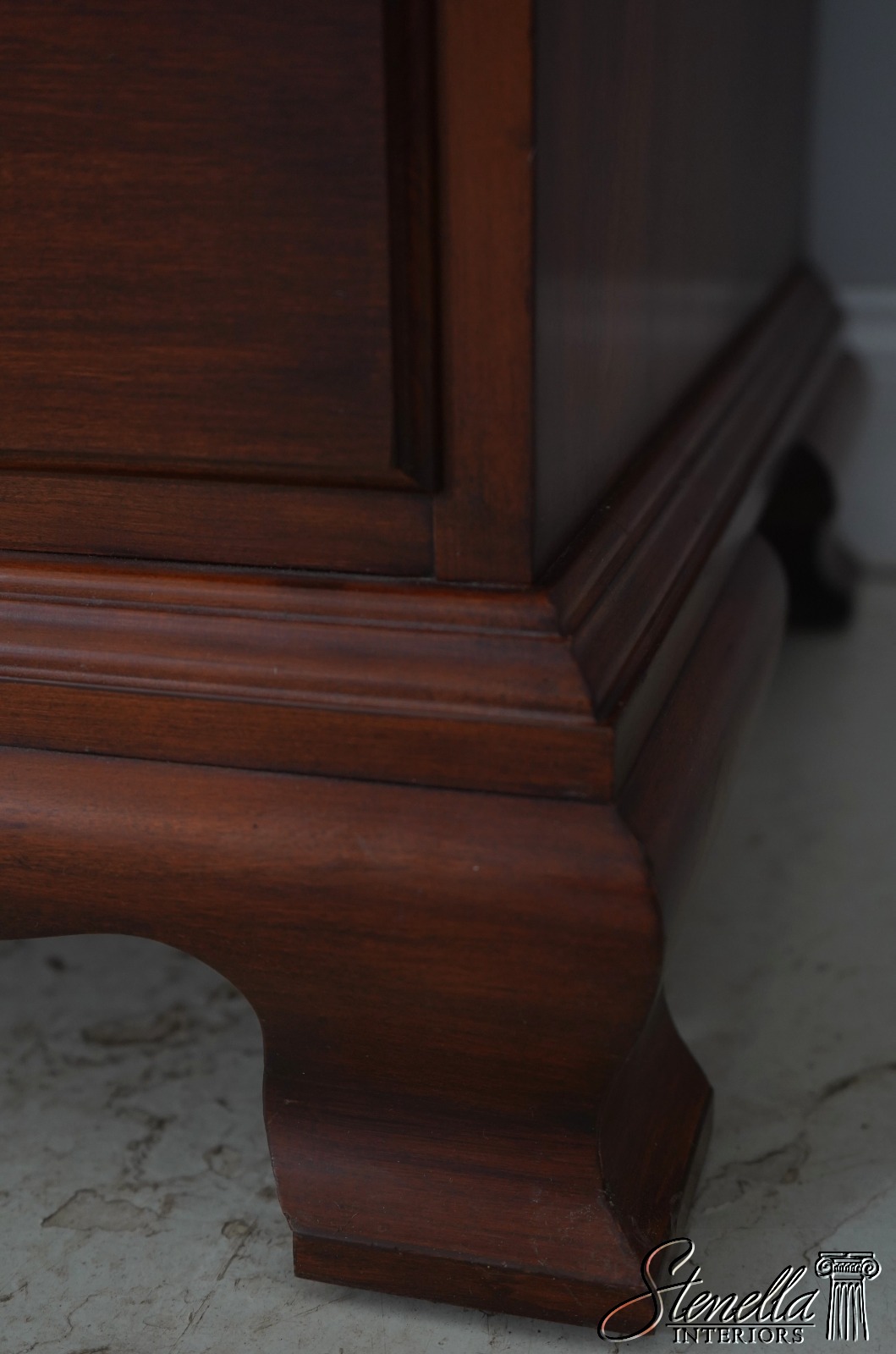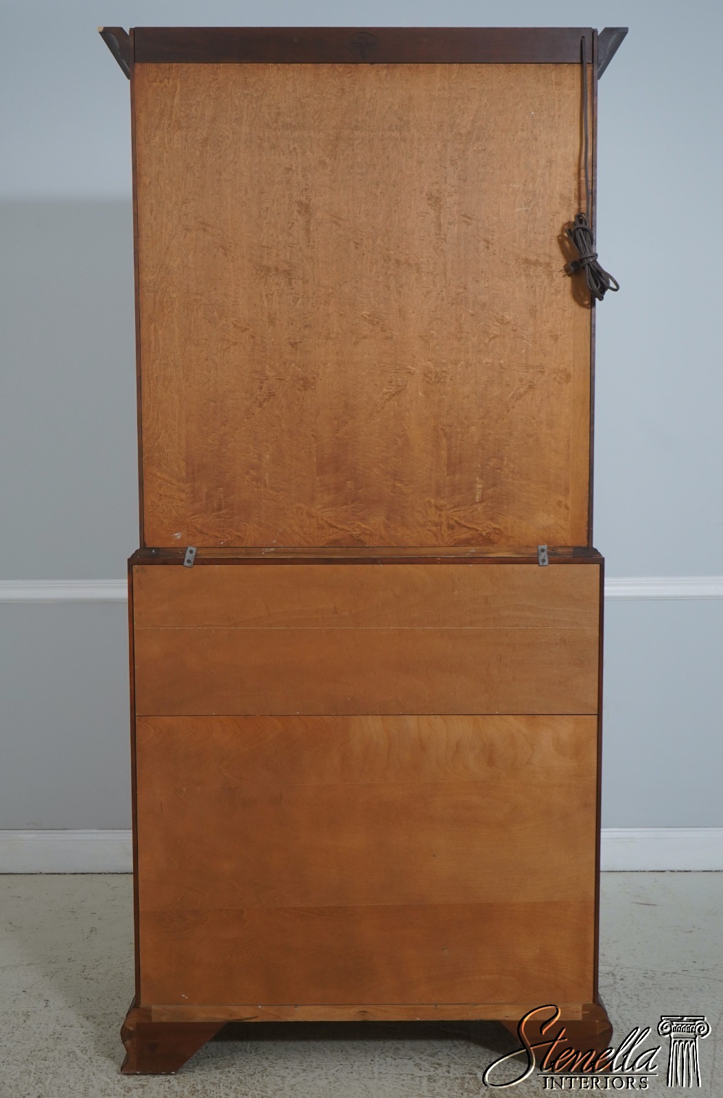 Details: Finish no.24 John Hancock Model Beveled Glass Bracket Feet Dovetailed Drawer Construction High Quality Construction Lighted Interior Individual Pane Glass Doors Chippendale Style Traditional Style Solid Brass Hardware 2 Piece Construction Key Locking w. Key Overall Well Cared For Offered @ Fraction Original Retail Cost