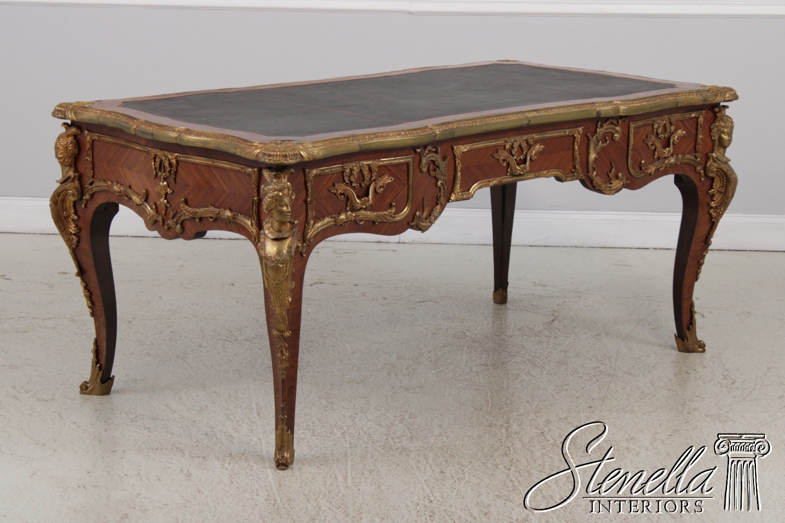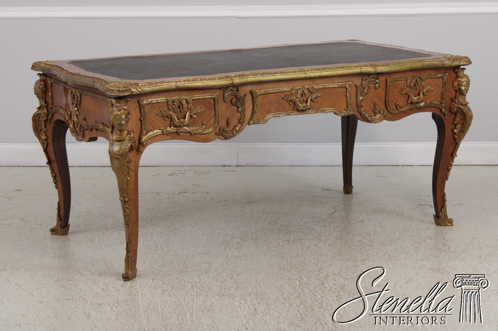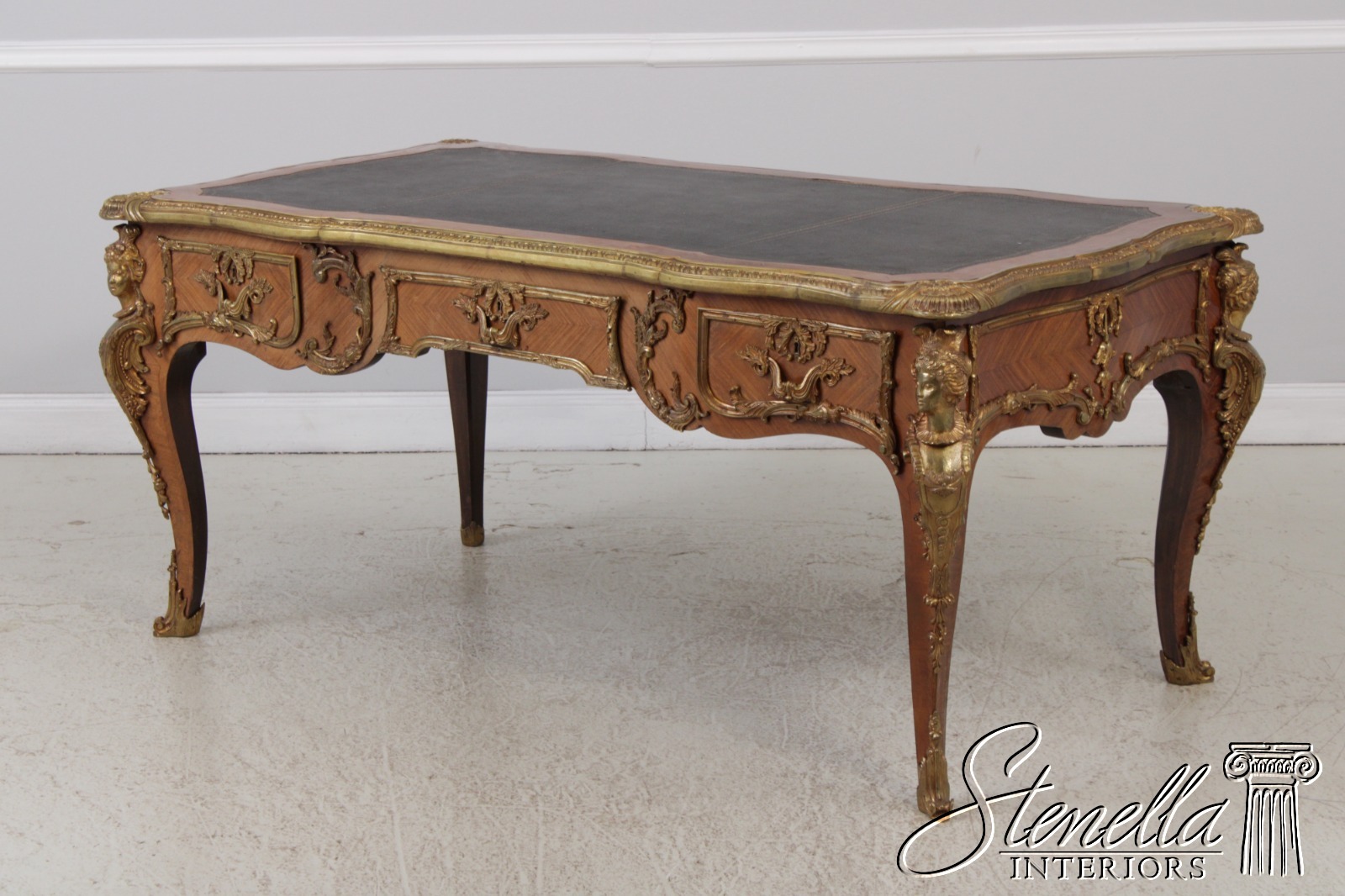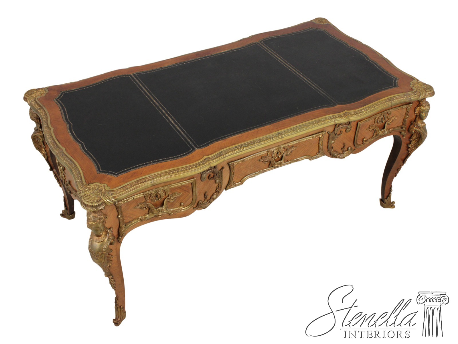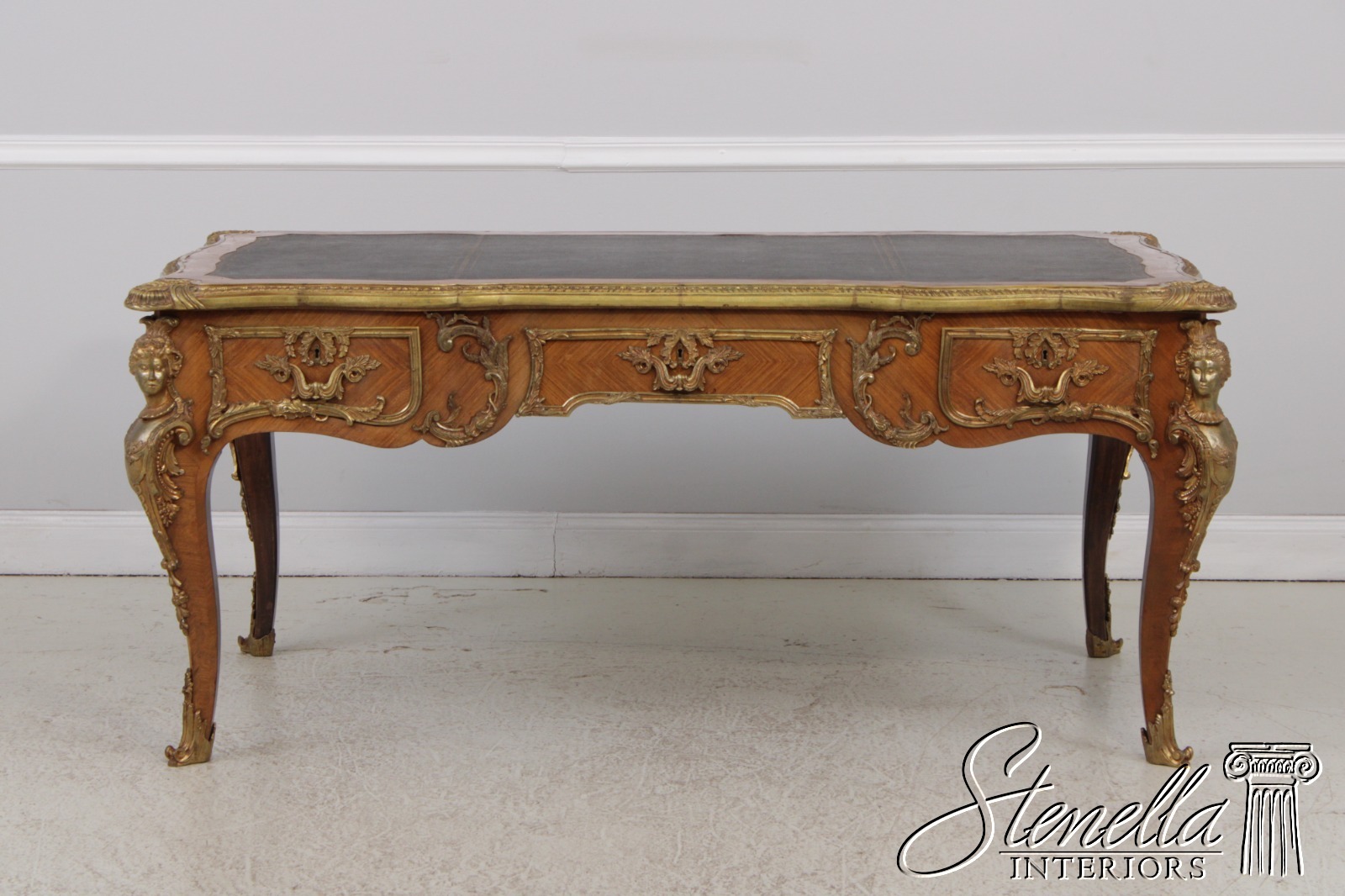 F72006: Vintage Louis XV Bureau Plat Writing Desk w. Leather Top