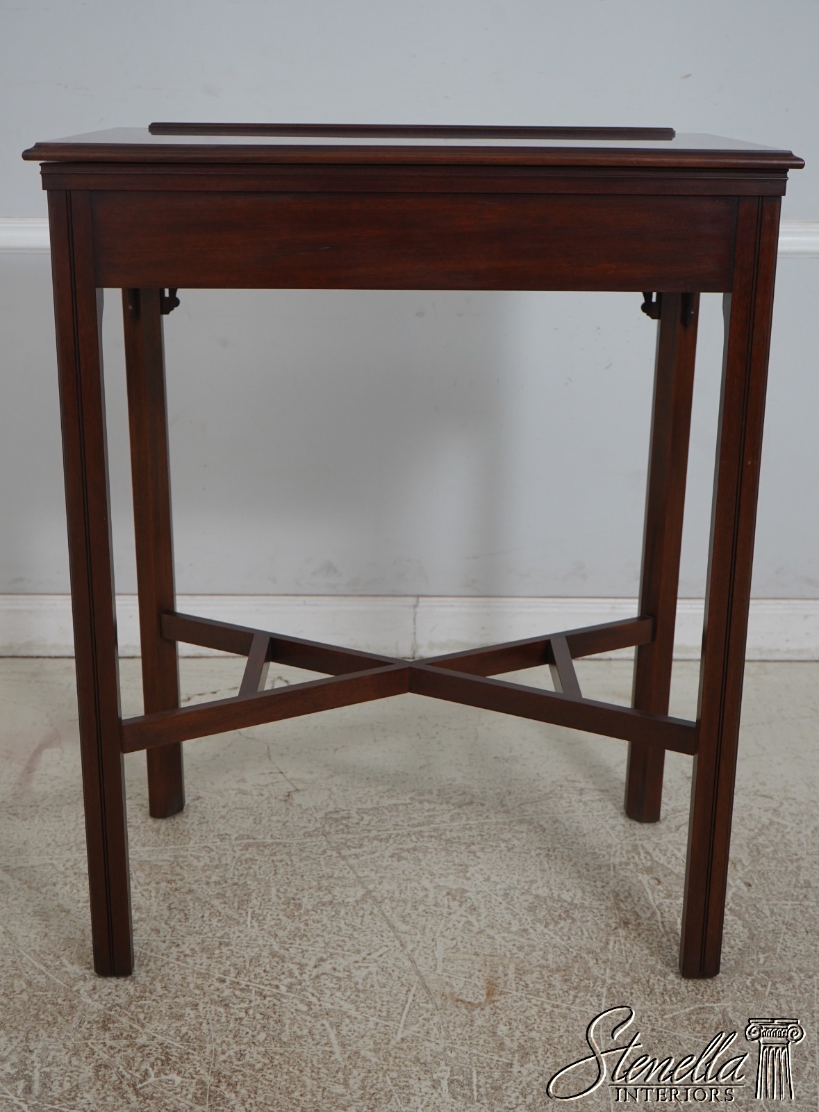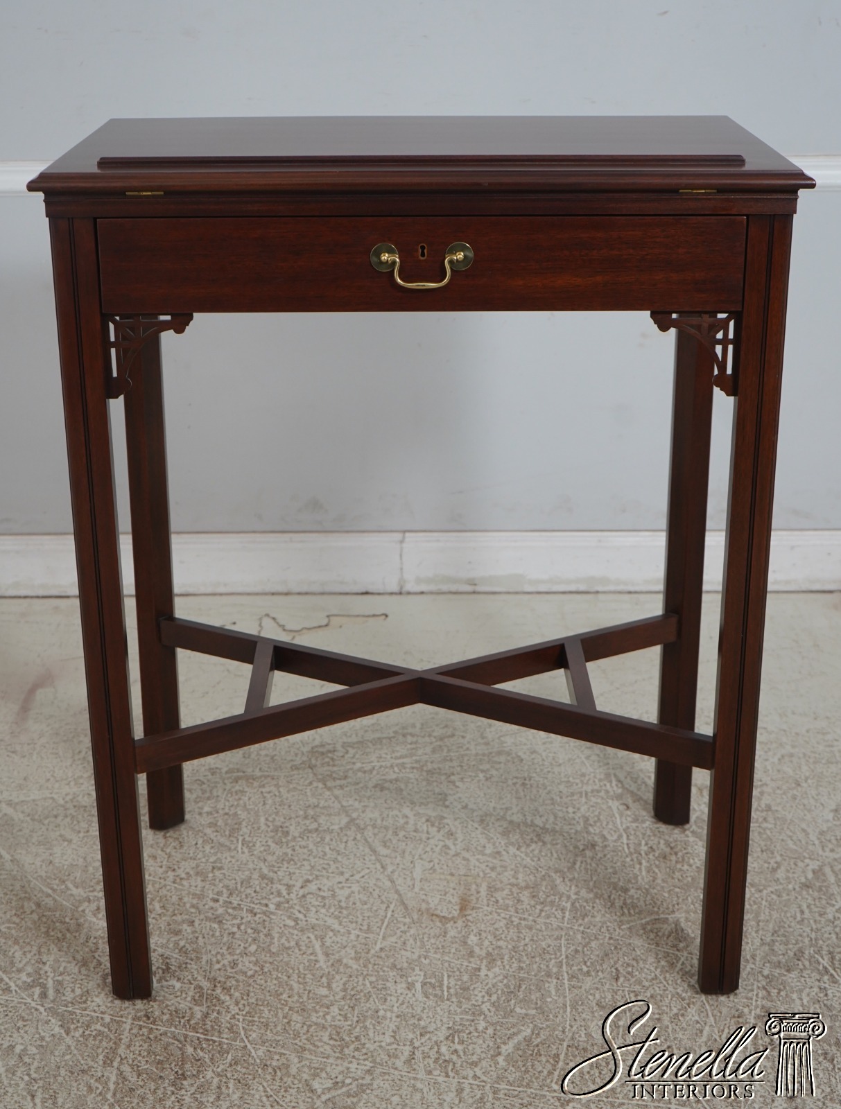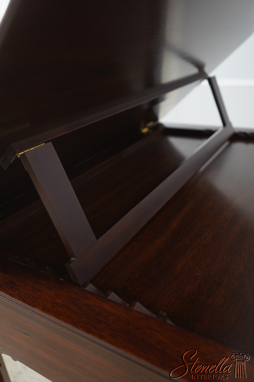 Details: Finish no.29 Thomas Jefferson Monticello Collection Adjustable Slant Top Mahogany Fine Carved Details High Quality Construction Nice Tooled Leather Slide Adjustable Slant Lid 18 C. Design Chippendale Style Blue Tooled Leather Interior Stretcher Base Frame Solid Brass Hardware Traditional Style Key Locking w. Key 1 Drawer Pierced Corner Accents Offered @ Fraction Original Retail Cost