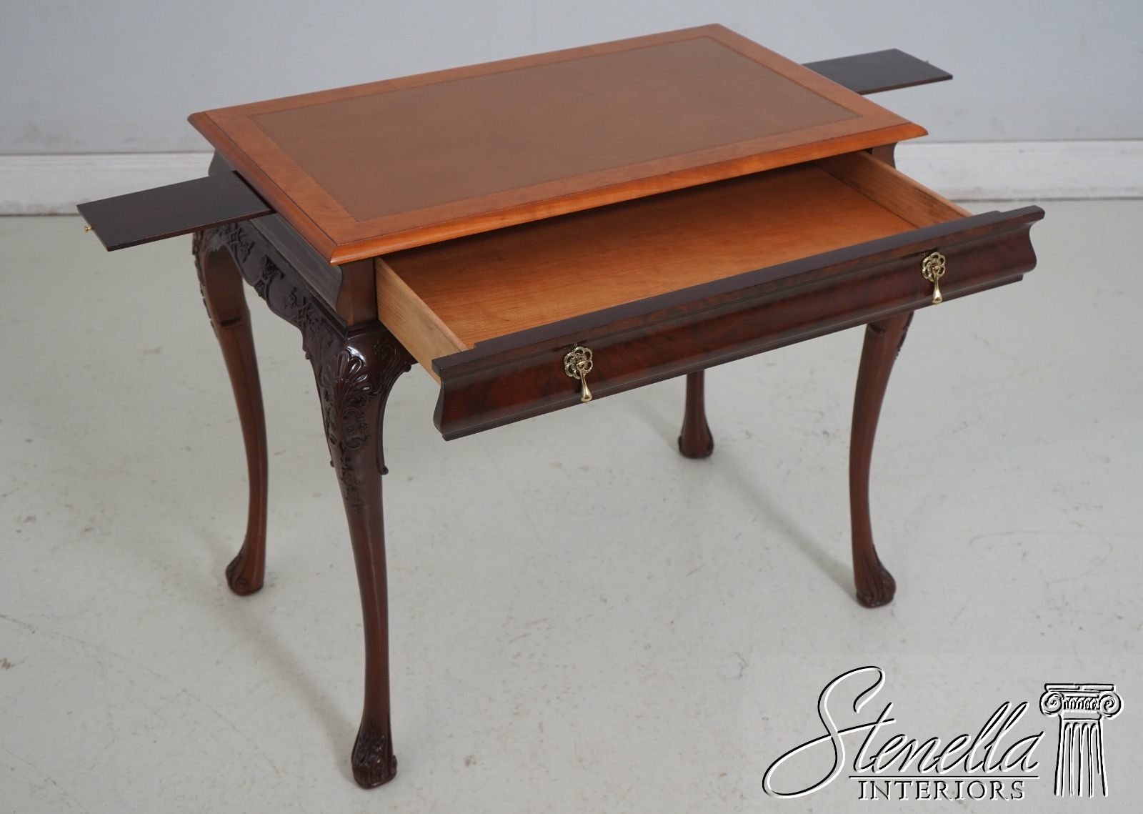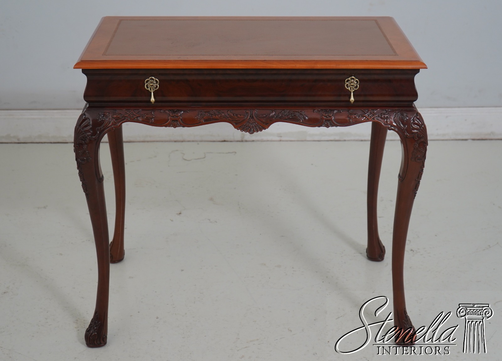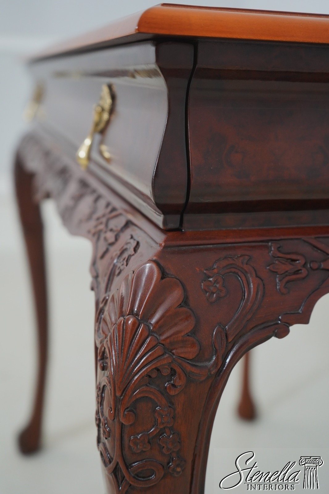 Details: Varney Collection Mahogany Base Quality Leather Top Dovetailed Drawer Construction Fine Carved Details High Quality Construction Yew Top Nice Tooled Leather Top Queen Anne Legs & Pad Feet Rich High Sheen Finish Burl Elm Satinwood Finish Border On Top Solid Brass Hardware Single Drawer Rare Model 2 Slide Out Trays Offered @ Fraction Original Retail Cost