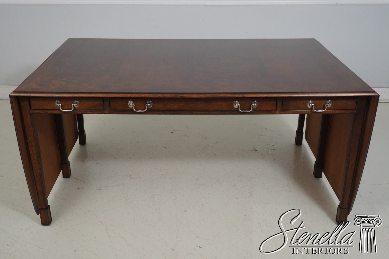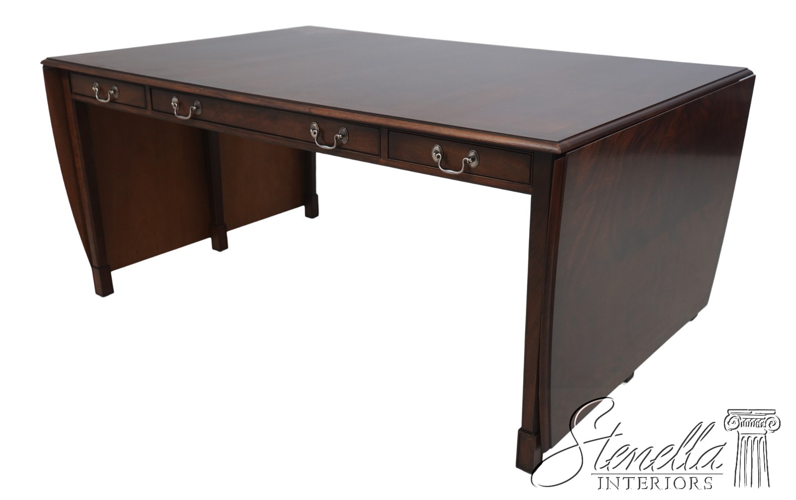 L68792: Unusual Mahogany Drop Side Partners Desk Table