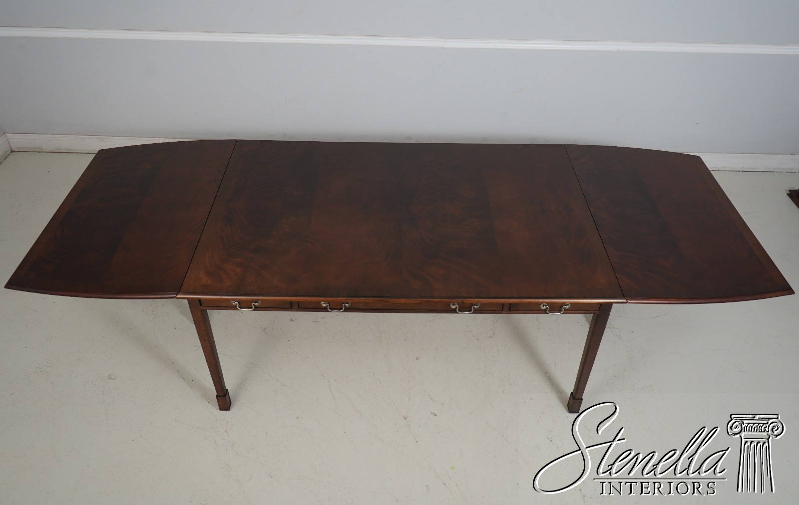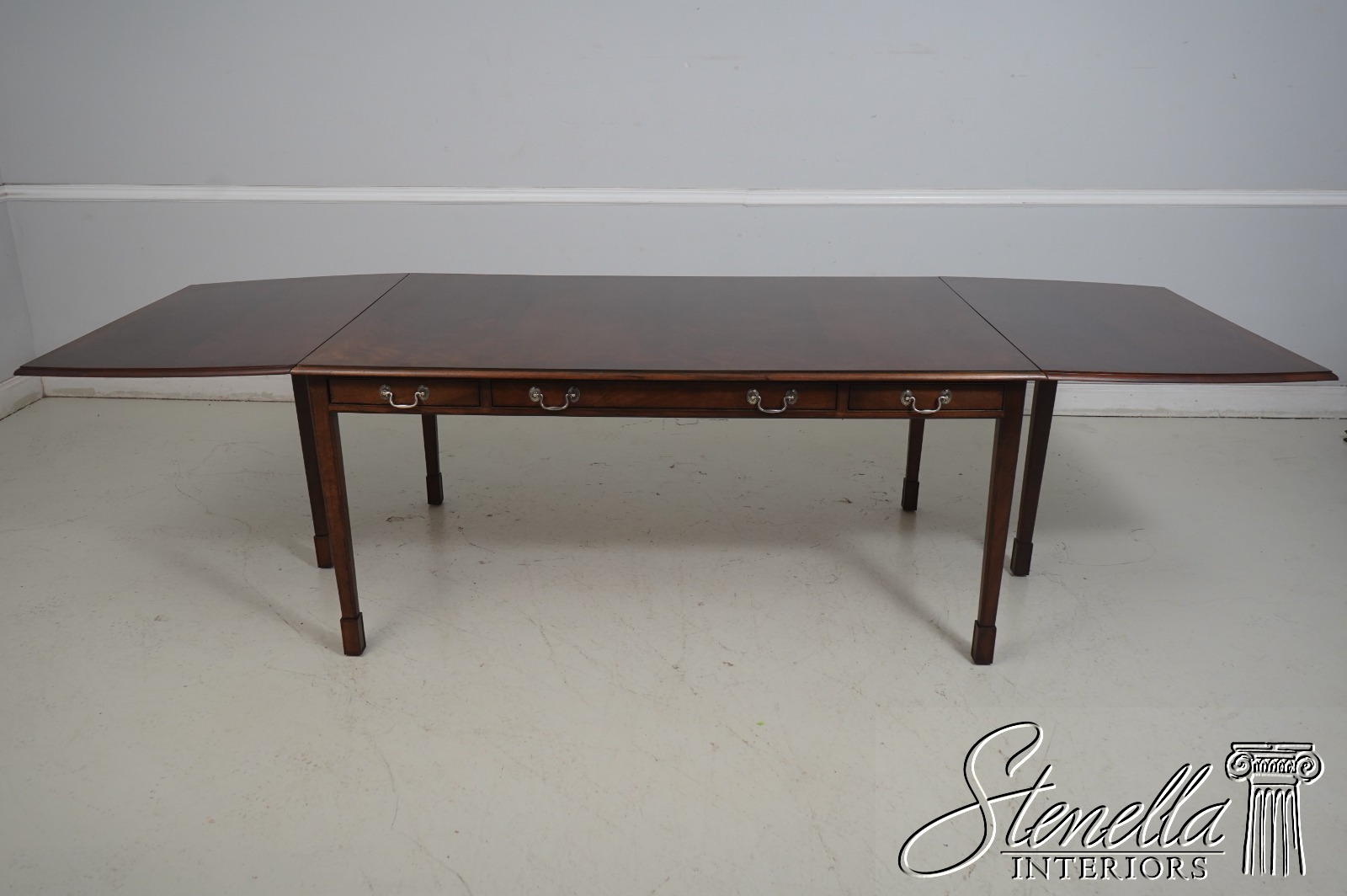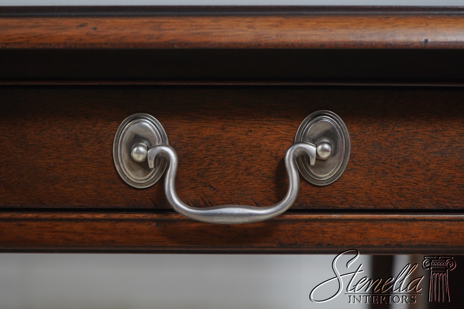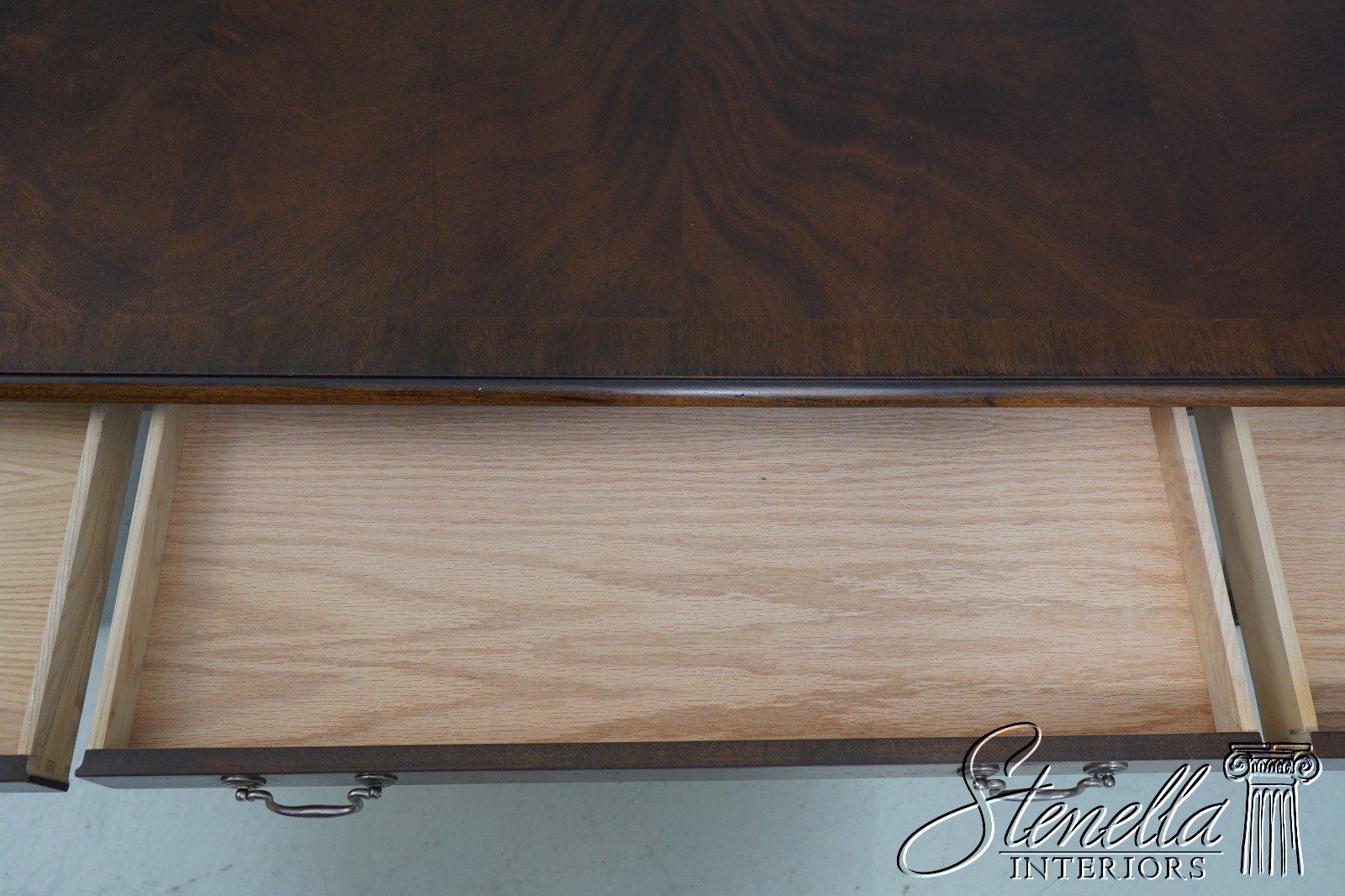 Details: Mahogany Dovetailed Drawer Construction Fine Carved Details Quality Construction Tapering Legs w. Block Feet Solid Brass Hardware Drawers On Both Sides Slide Out Legs Un-Marked As To Manufacture Offered @ F ration Original Retail Cost