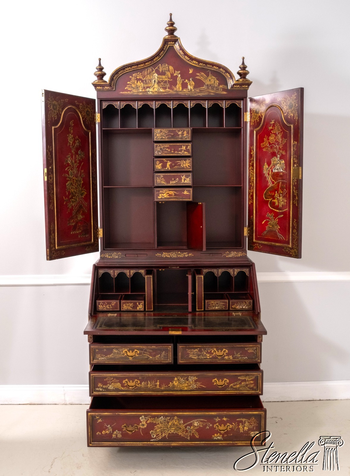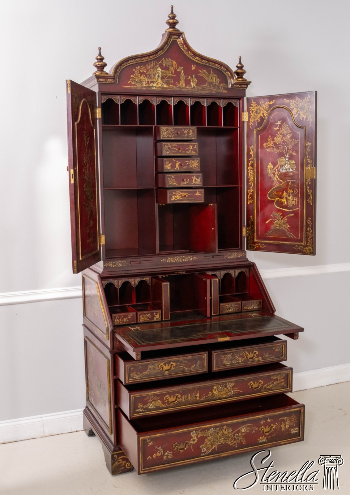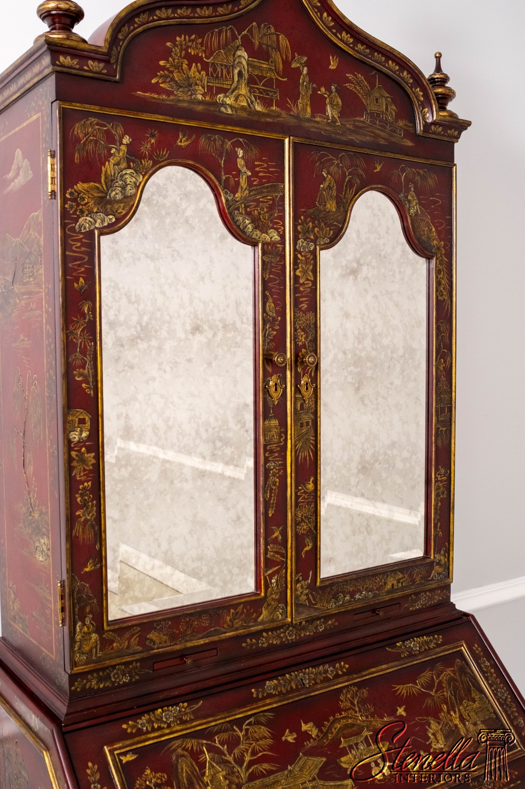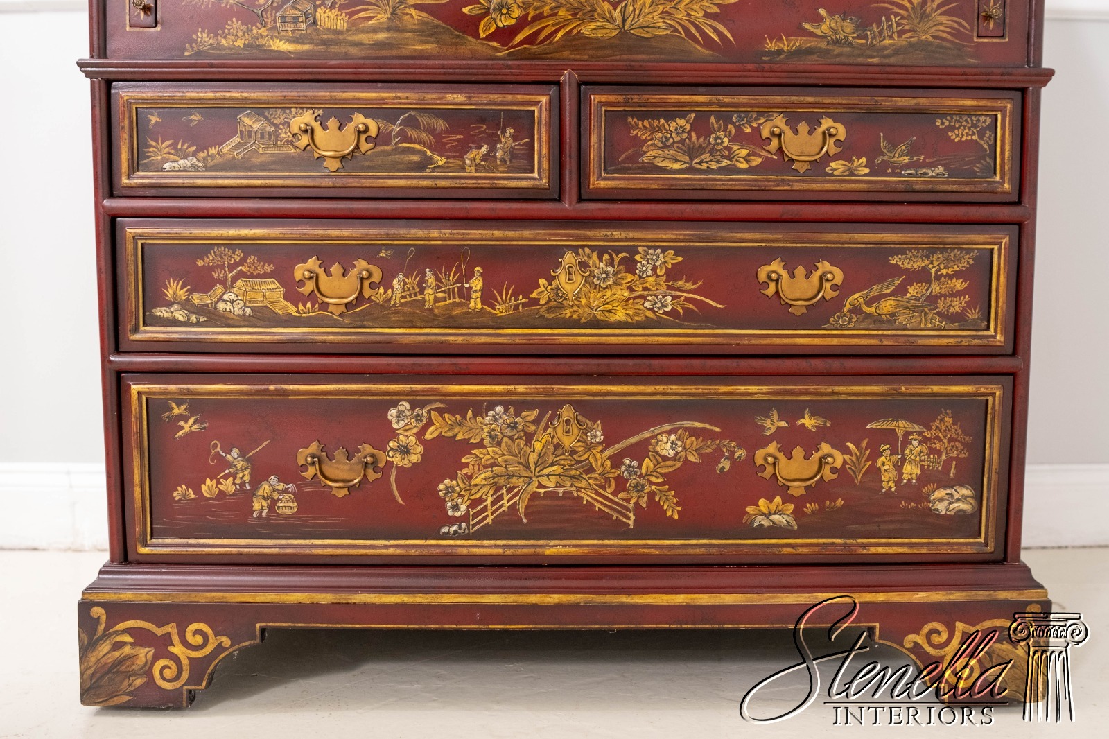 L71325: MAITLAND-SMITH Chinoiserie Decorated Secretary Desk Cabinet